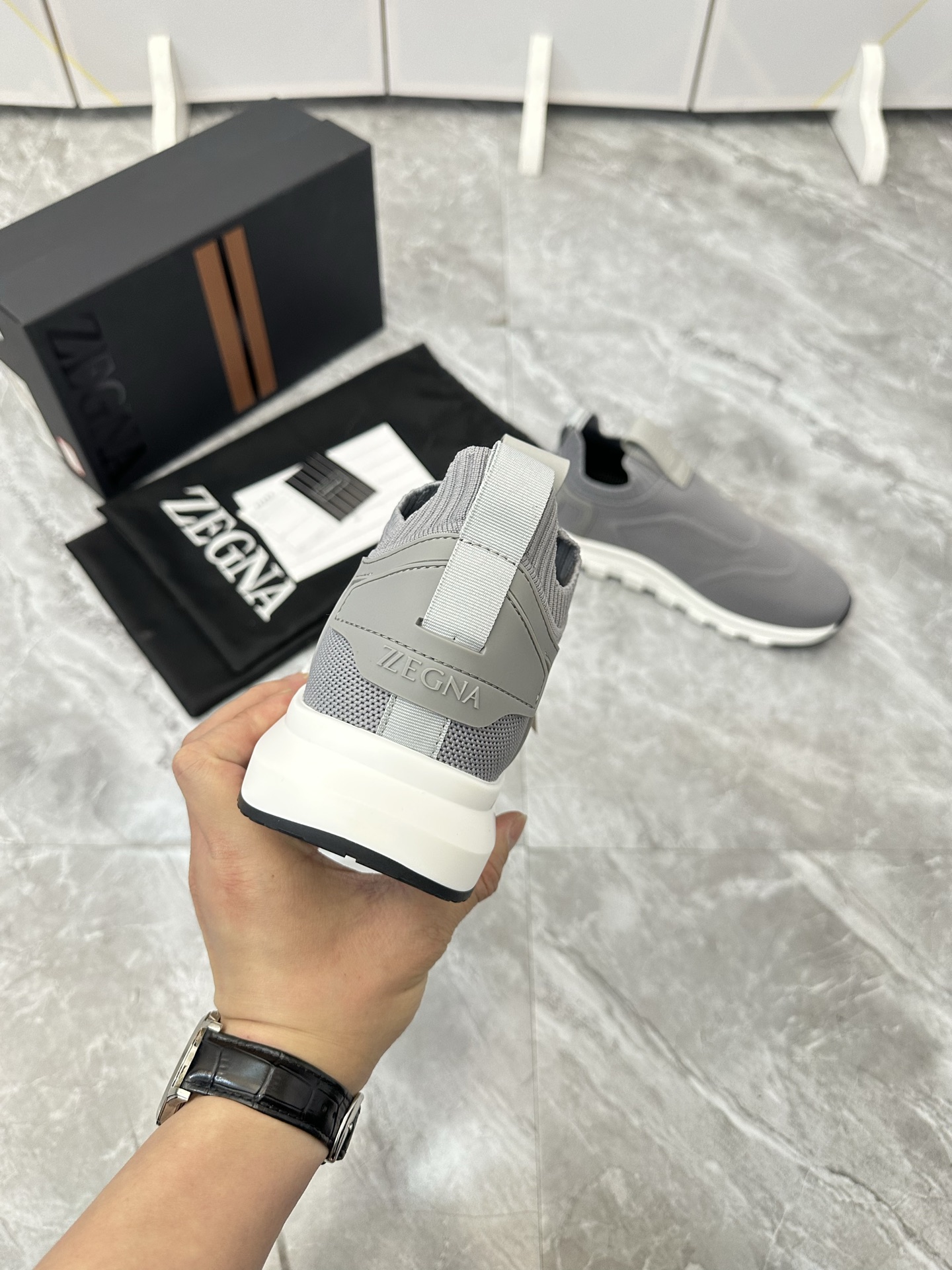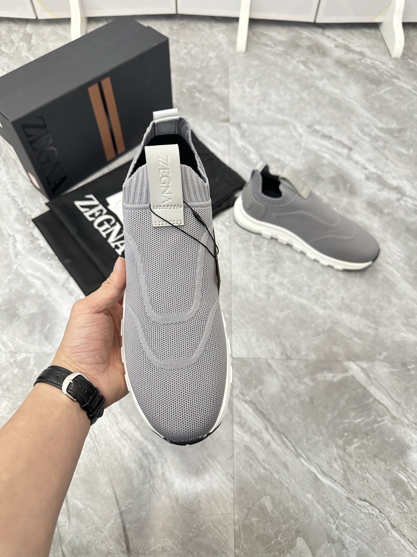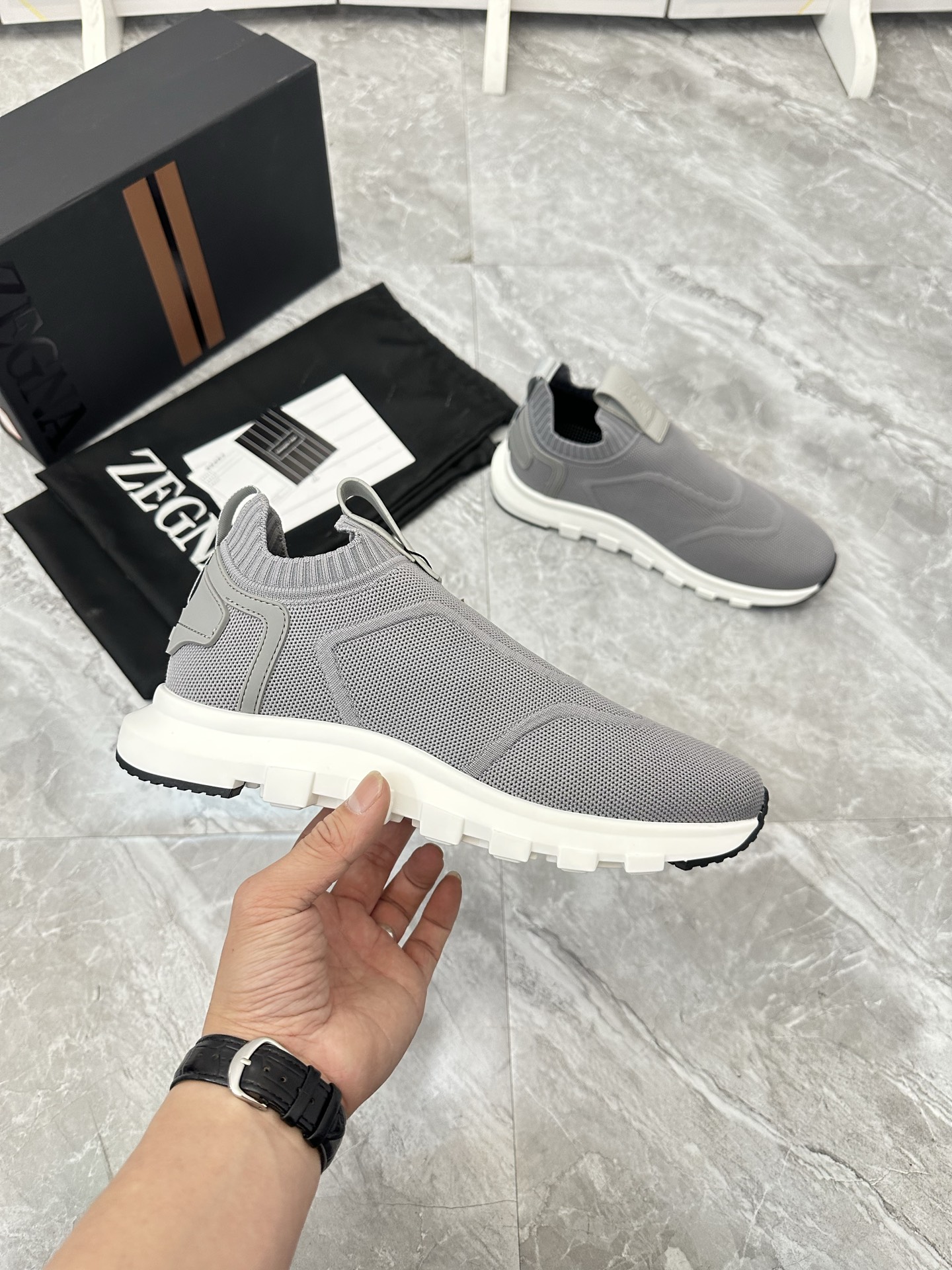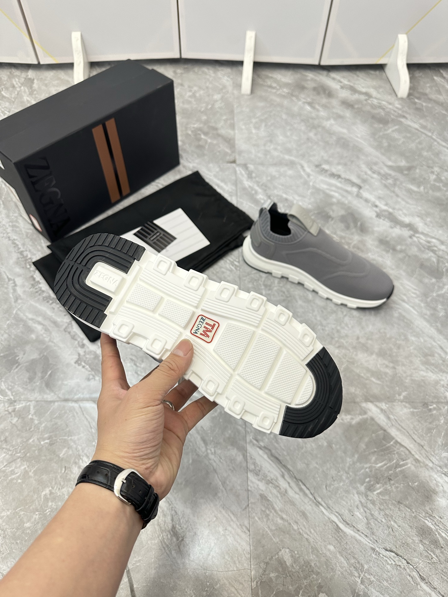 这款鞋子是AAAAA 1:1 质量 (非常棒). 使用了和原版一模一样的材料. 商标部分也保持了和杰尼亚/Zegna一样. 图片拍摄是实物鞋子拍摄, 您所收到的实物保证和我们图片一模一样.