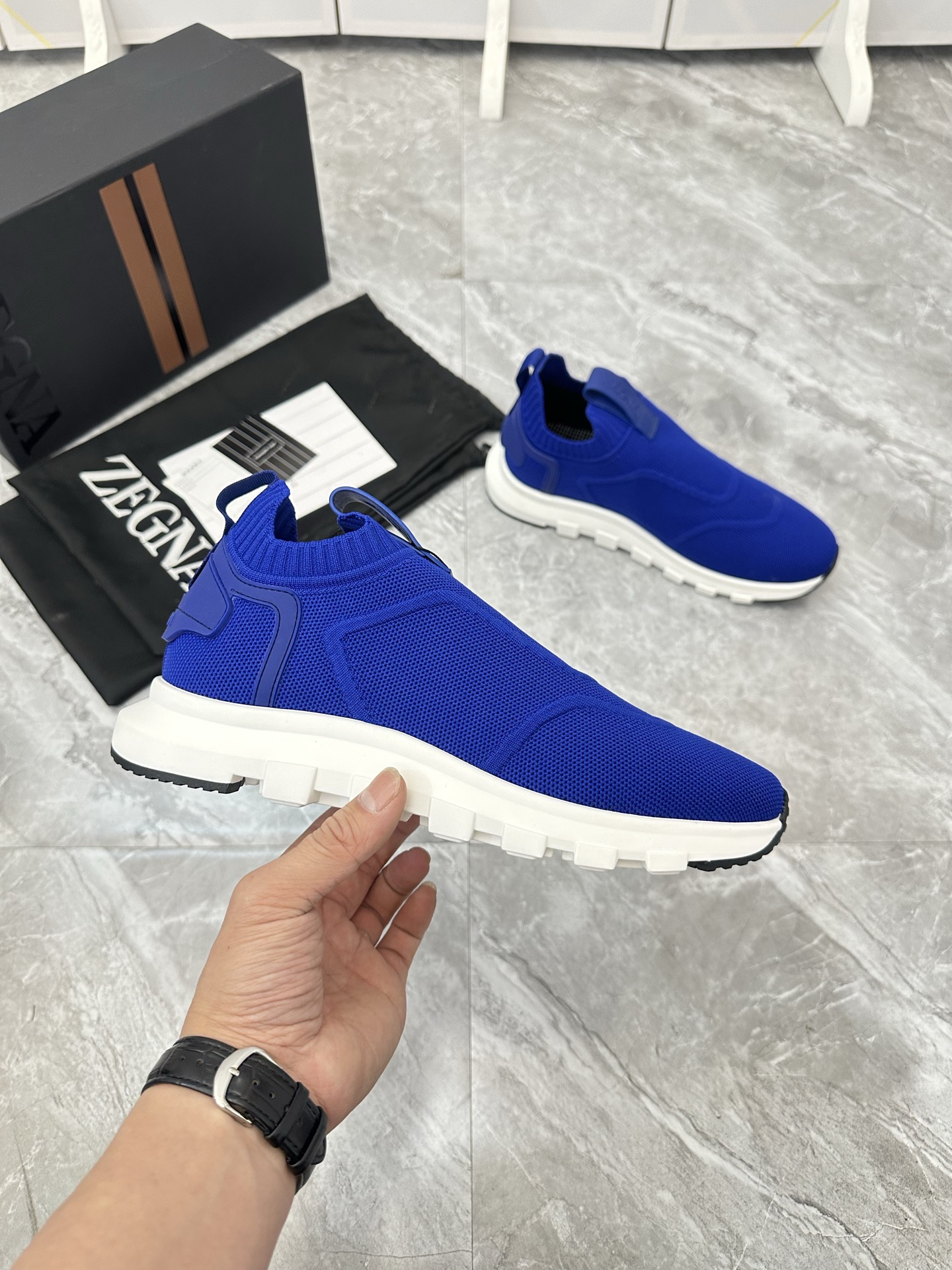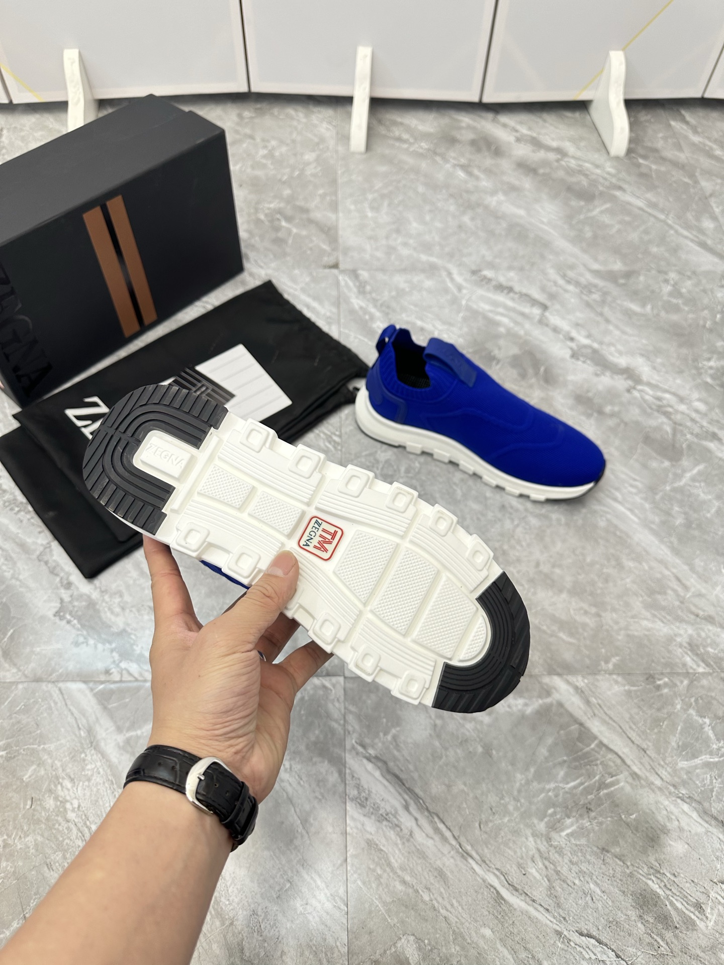 这款鞋子是AAAAA 1:1 质量 (非常棒). 使用了和原版一模一样的材料. 商标部分也保持了和杰尼亚/Zegna一样. 图片拍摄是实物鞋子拍摄, 您所收到的实物保证和我们图片一模一样.