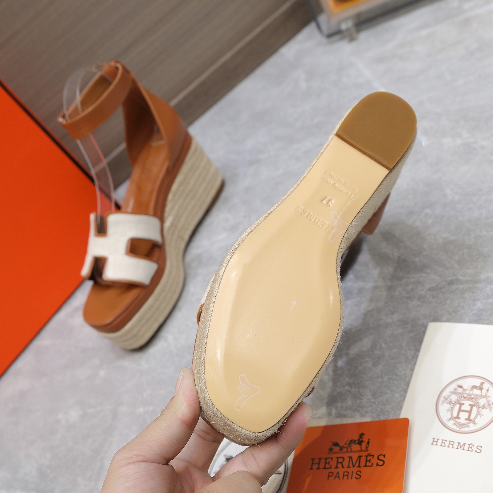 这款鞋子是AAAAA 1:1 质量 (非常棒). 使用了和原版一模一样的材料. 商标部分也保持了和爱马仕/Hermes一样. 图片拍摄是实物鞋子拍摄, 您所收到的实物保证和我们图片一模一样.