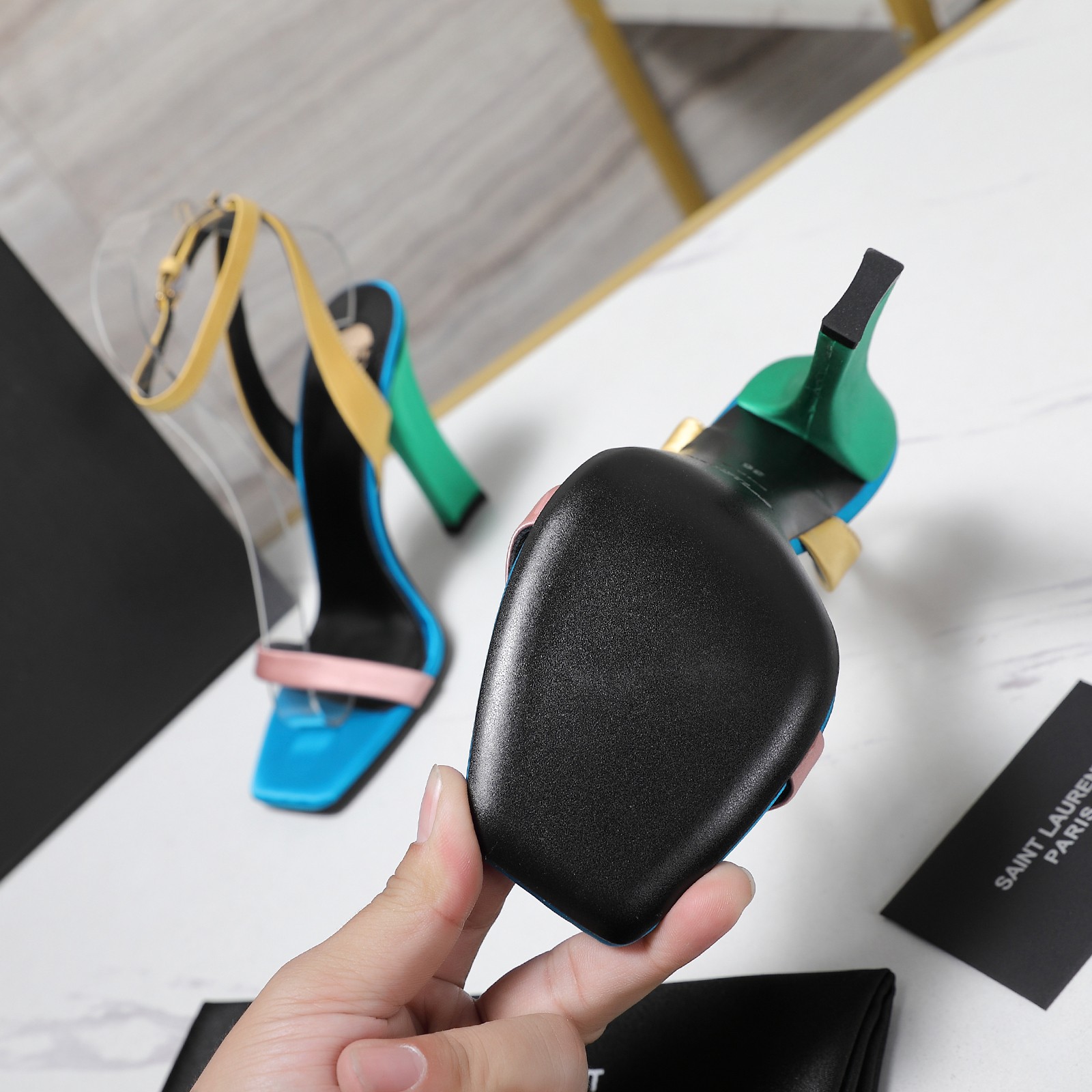 这款鞋子是AAAAA 1:1 质量 (非常棒). 使用了和原版一模一样的材料. 商标部分也保持了和圣罗兰/Saint Laurent一样. 图片拍摄是实物鞋子拍摄, 您所收到的实物保证和我们图片一模一样.