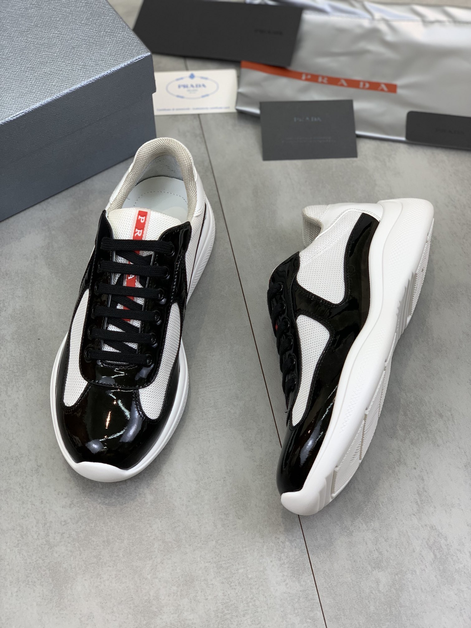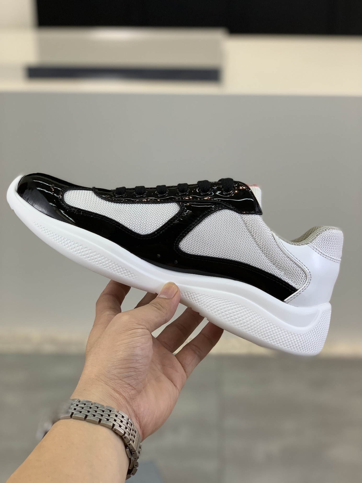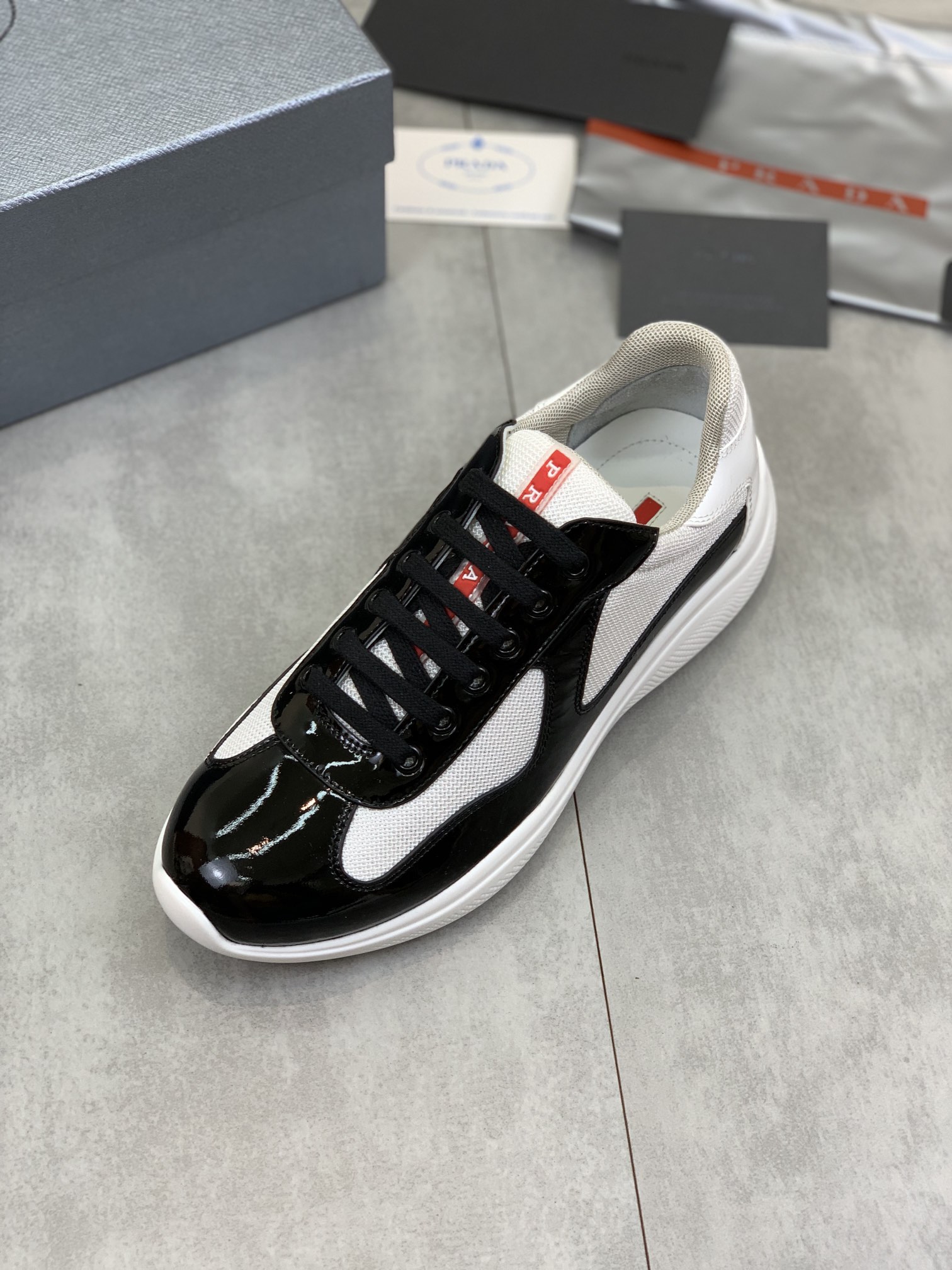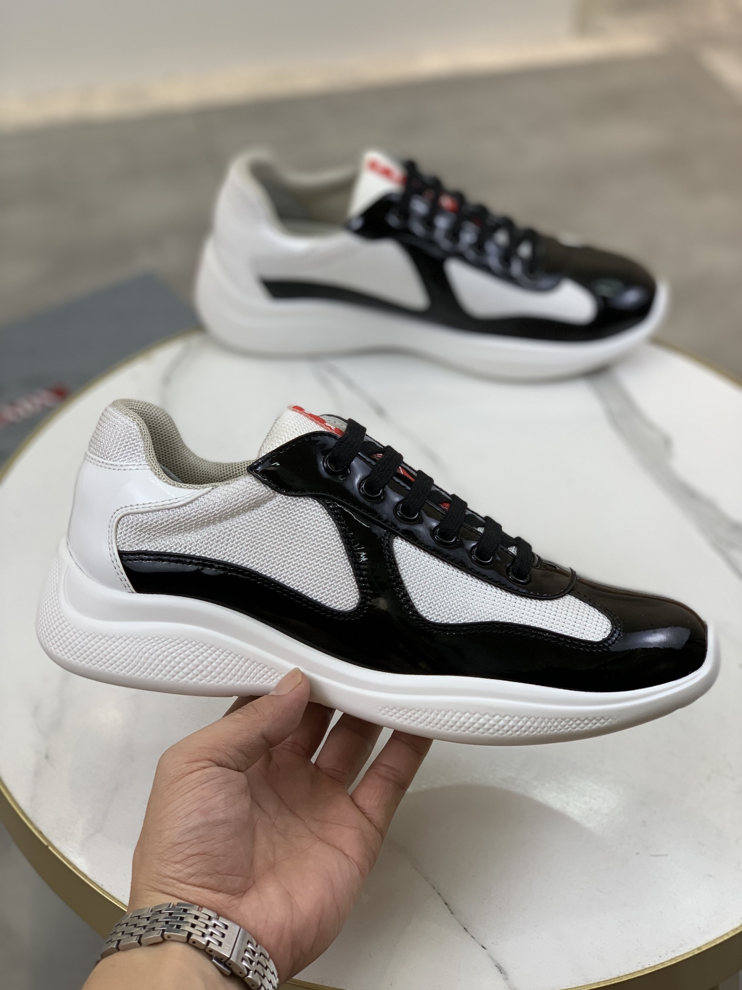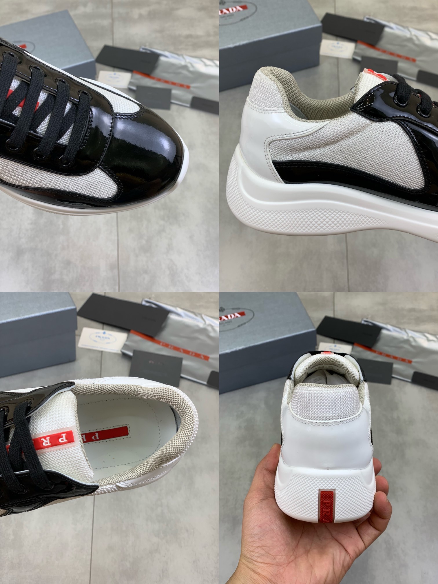这款鞋子是AAAAA 1:1 质量 (非常棒). 使用了和原版一模一样的材料. 商标部分也保持了和普拉达/Prada一样. 图片拍摄是实物鞋子拍摄, 您所收到的实物保证和我们图片一模一样.