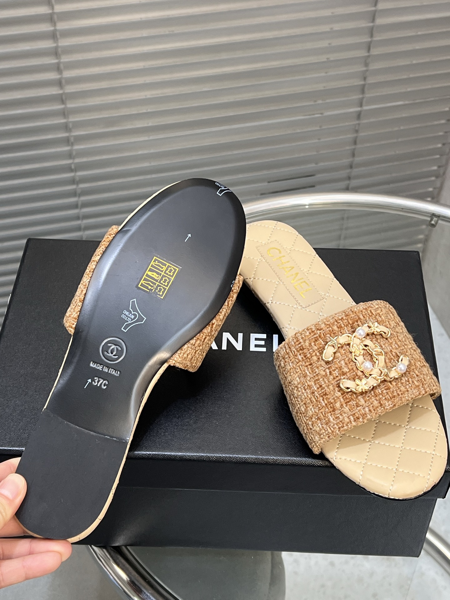 这款鞋子是AAAAA 1:1 质量 (非常棒). 使用了和原版一模一样的材料. 商标部分也保持了和香奈儿/Chanel一样. 图片拍摄是实物鞋子拍摄, 您所收到的实物保证和我们图片一模一样.
