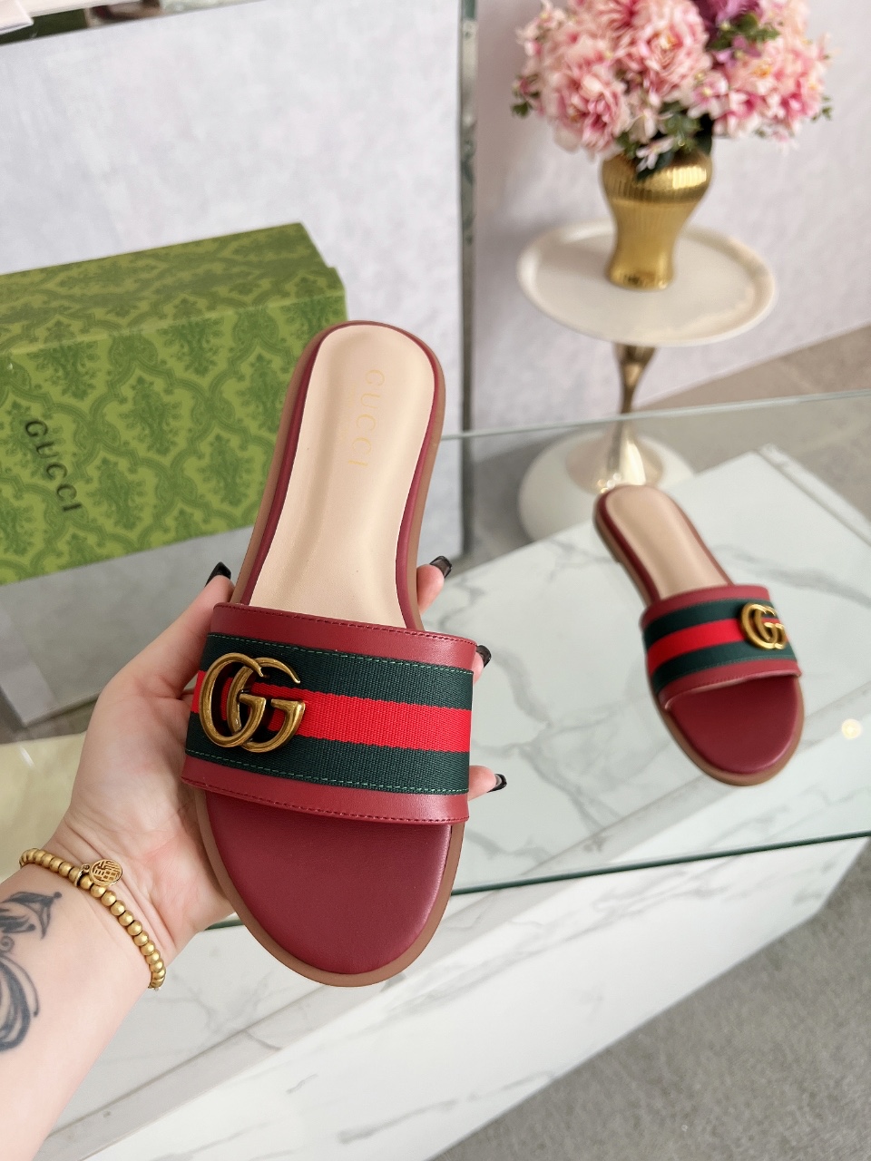 这款鞋子是AAAAA 1:1 质量 (非常棒). 使用了和原版一模一样的材料. 商标部分也保持了和古奇/Gucci一样. 图片拍摄是实物鞋子拍摄, 您所收到的实物保证和我们图片一模一样.