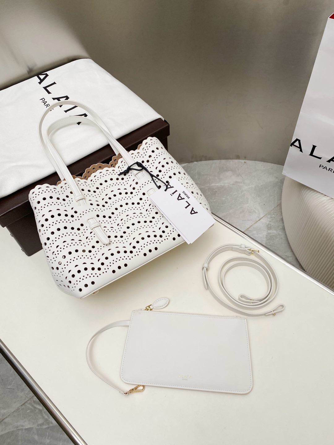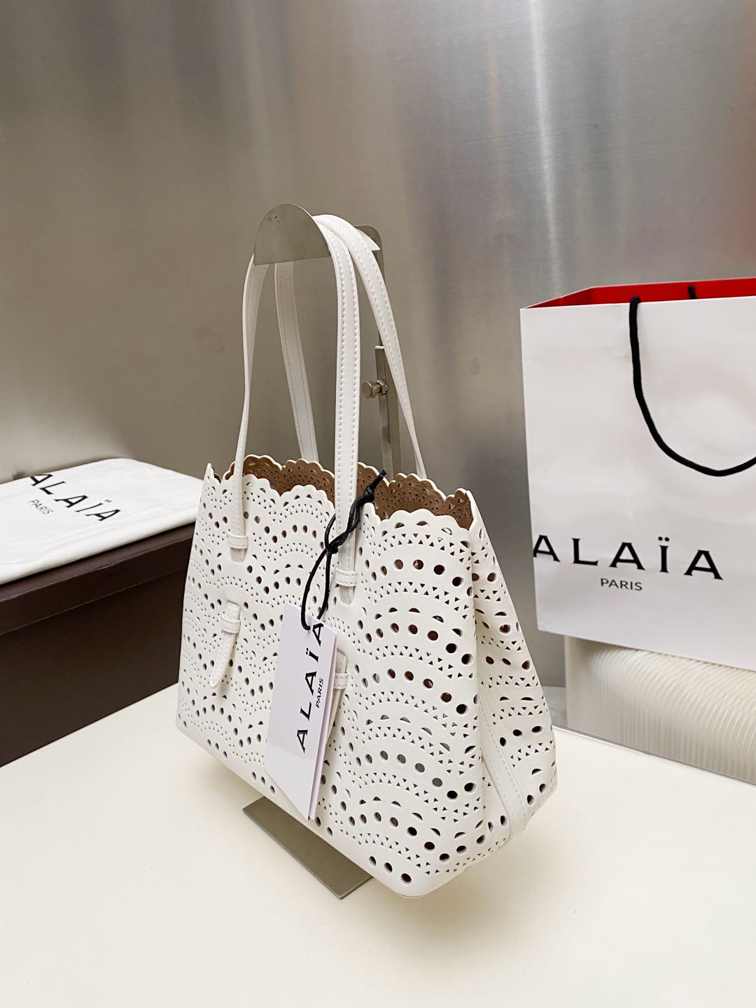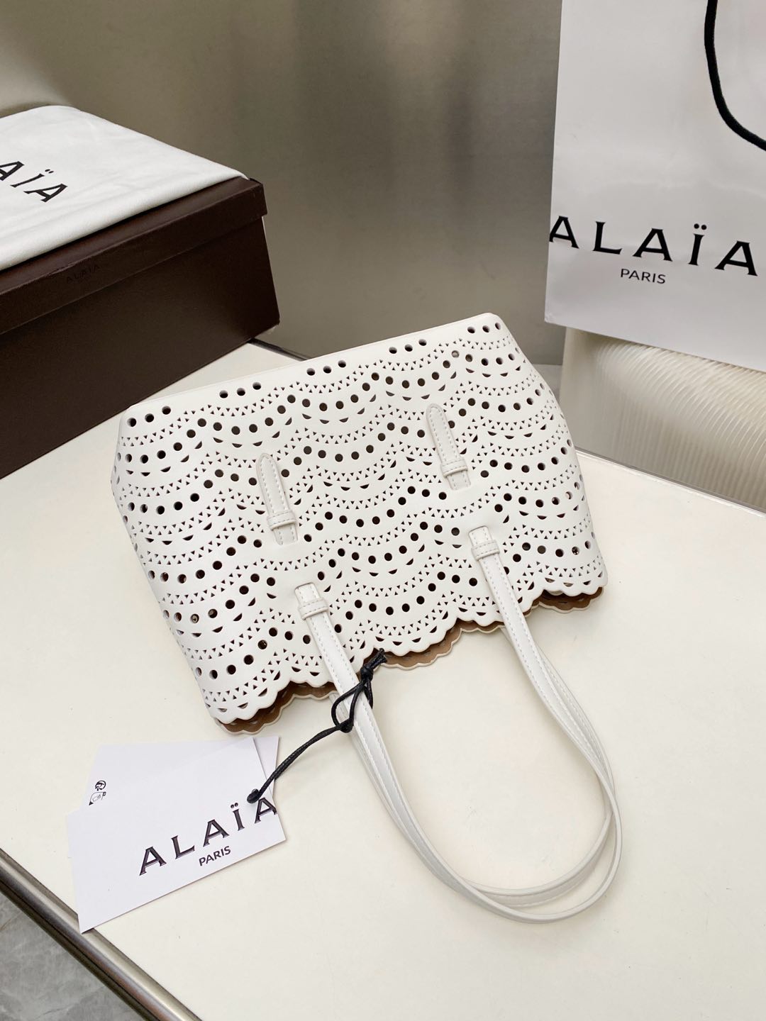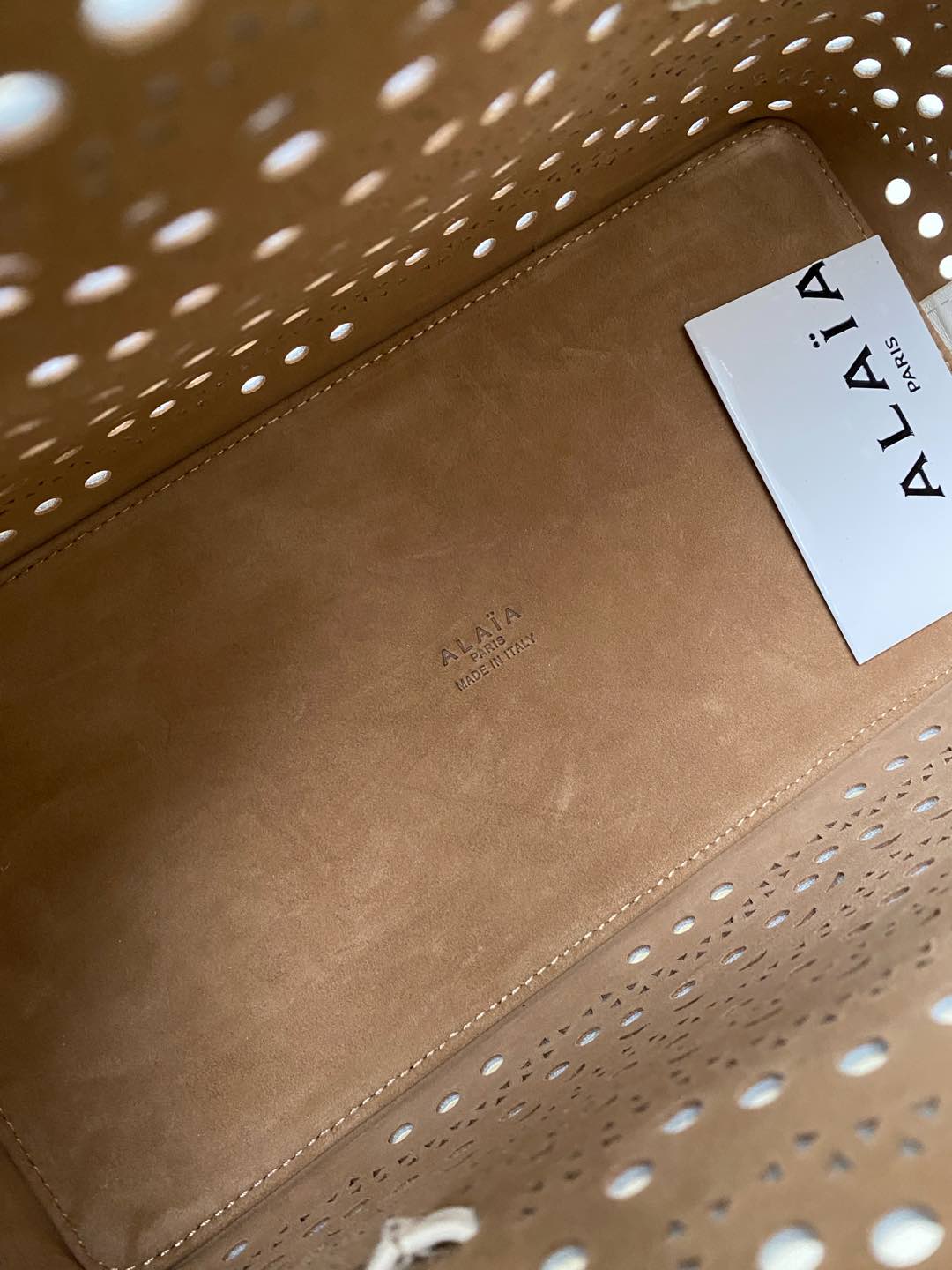 这款包包是AAAAA 1:1 质量 (非常棒). 使用了和原版一模一样的材料. 商标部分也保持了和Alaia一样. 图片拍摄是实物包包拍摄, 您所收到的实物保证和我们图片一模一样.