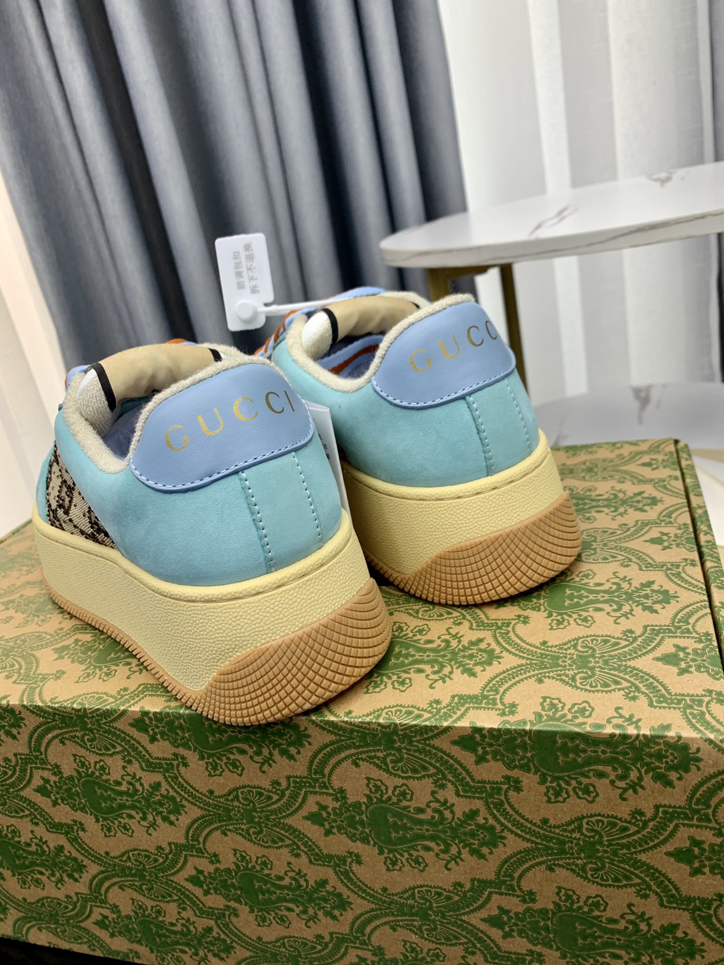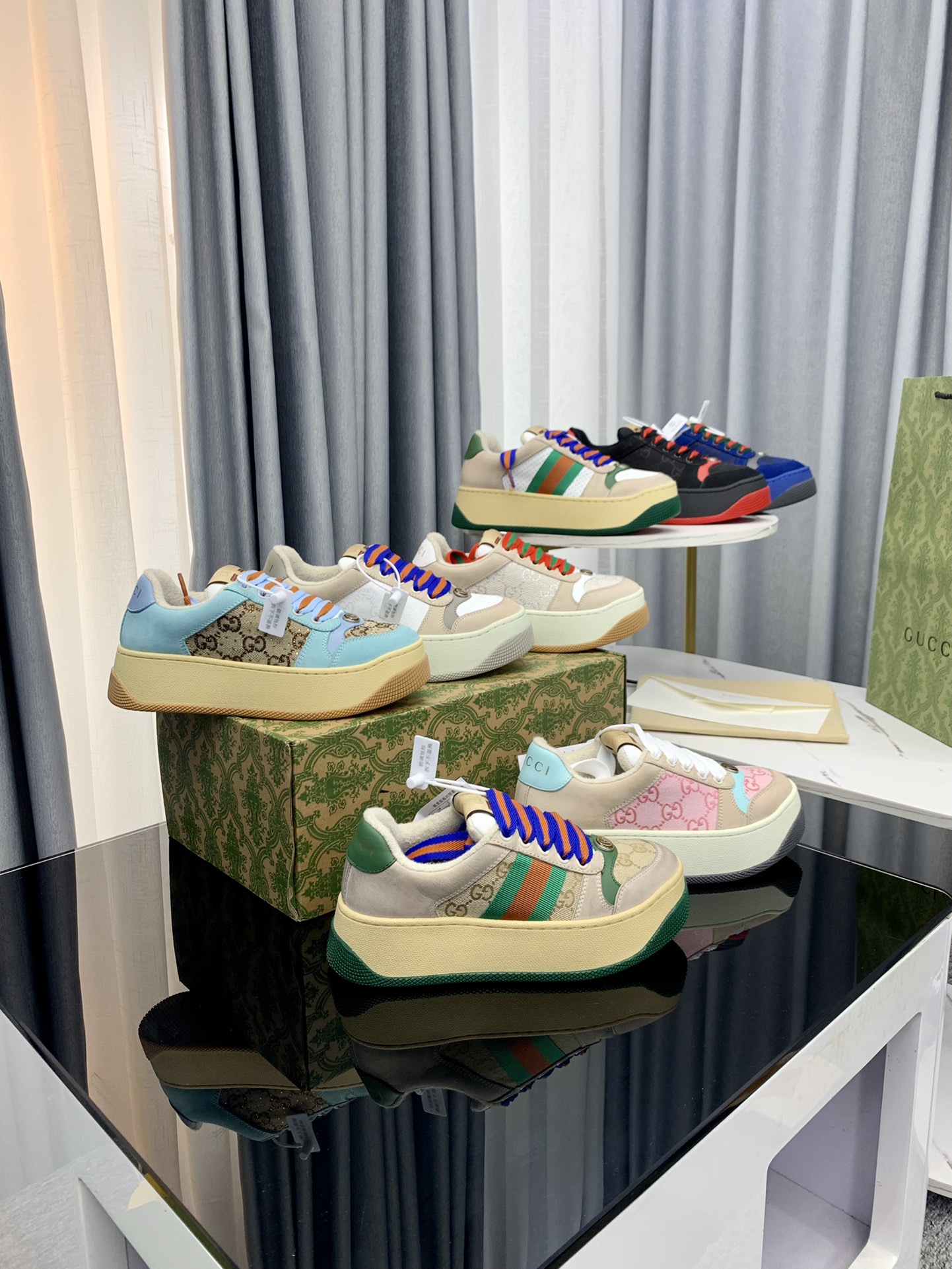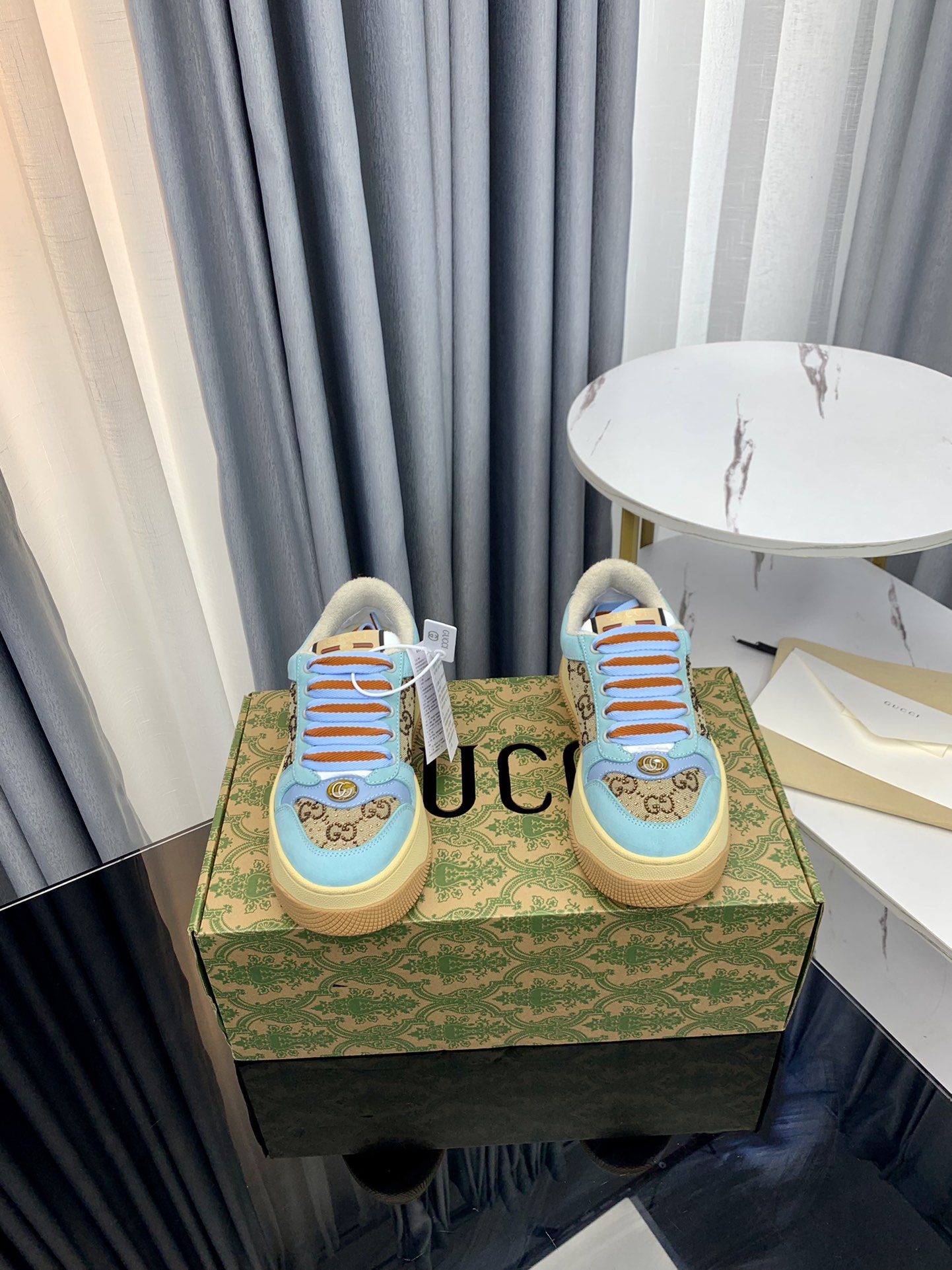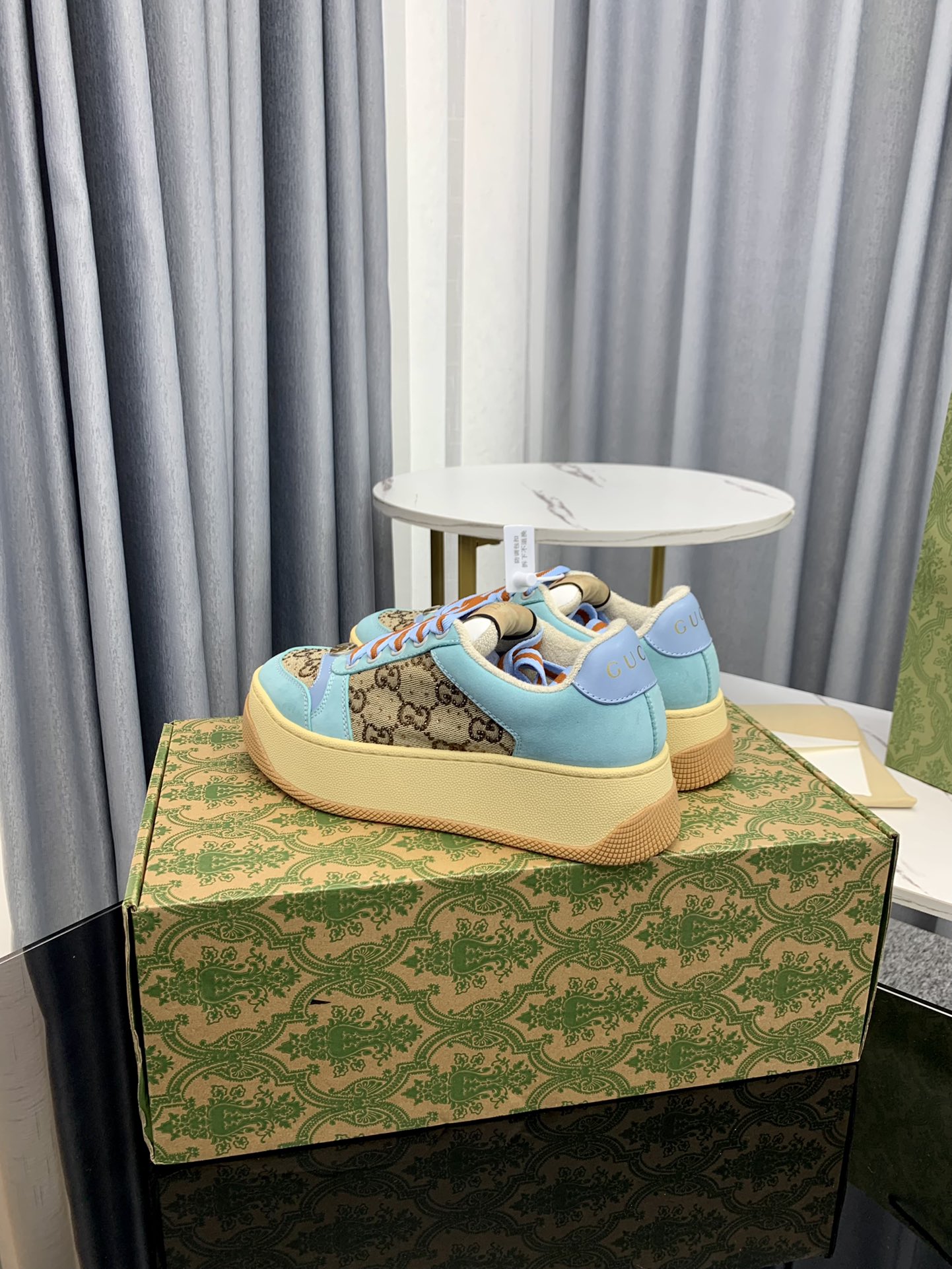 这款鞋子是AAAAA 1:1 质量 (非常棒). 使用了和原版一模一样的材料. 商标部分也保持了和古奇/Gucci一样. 图片拍摄是实物鞋子拍摄, 您所收到的实物保证和我们图片一模一样.