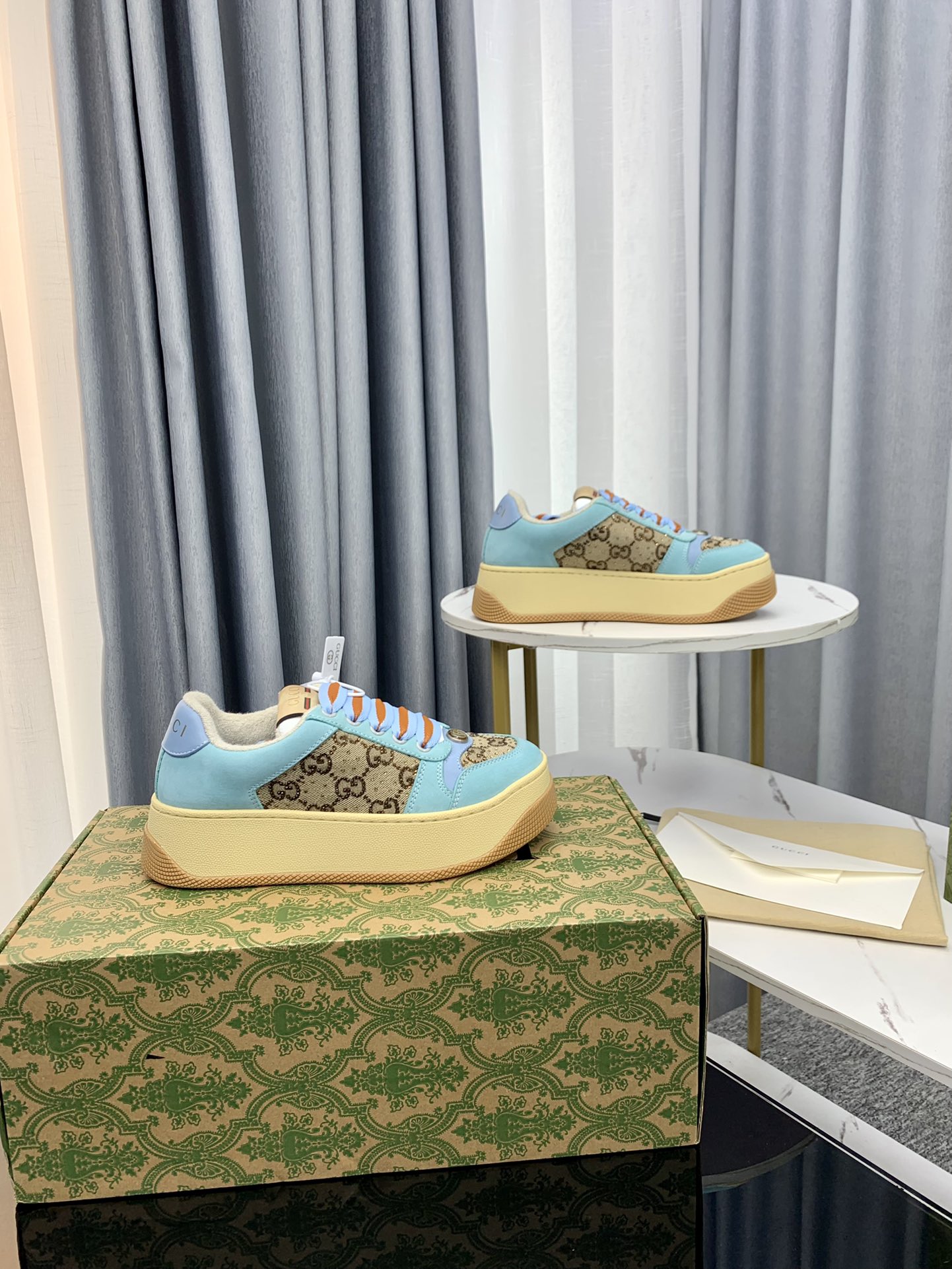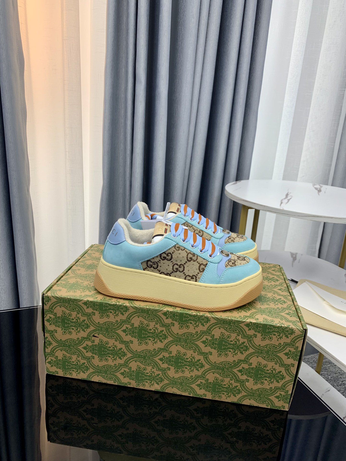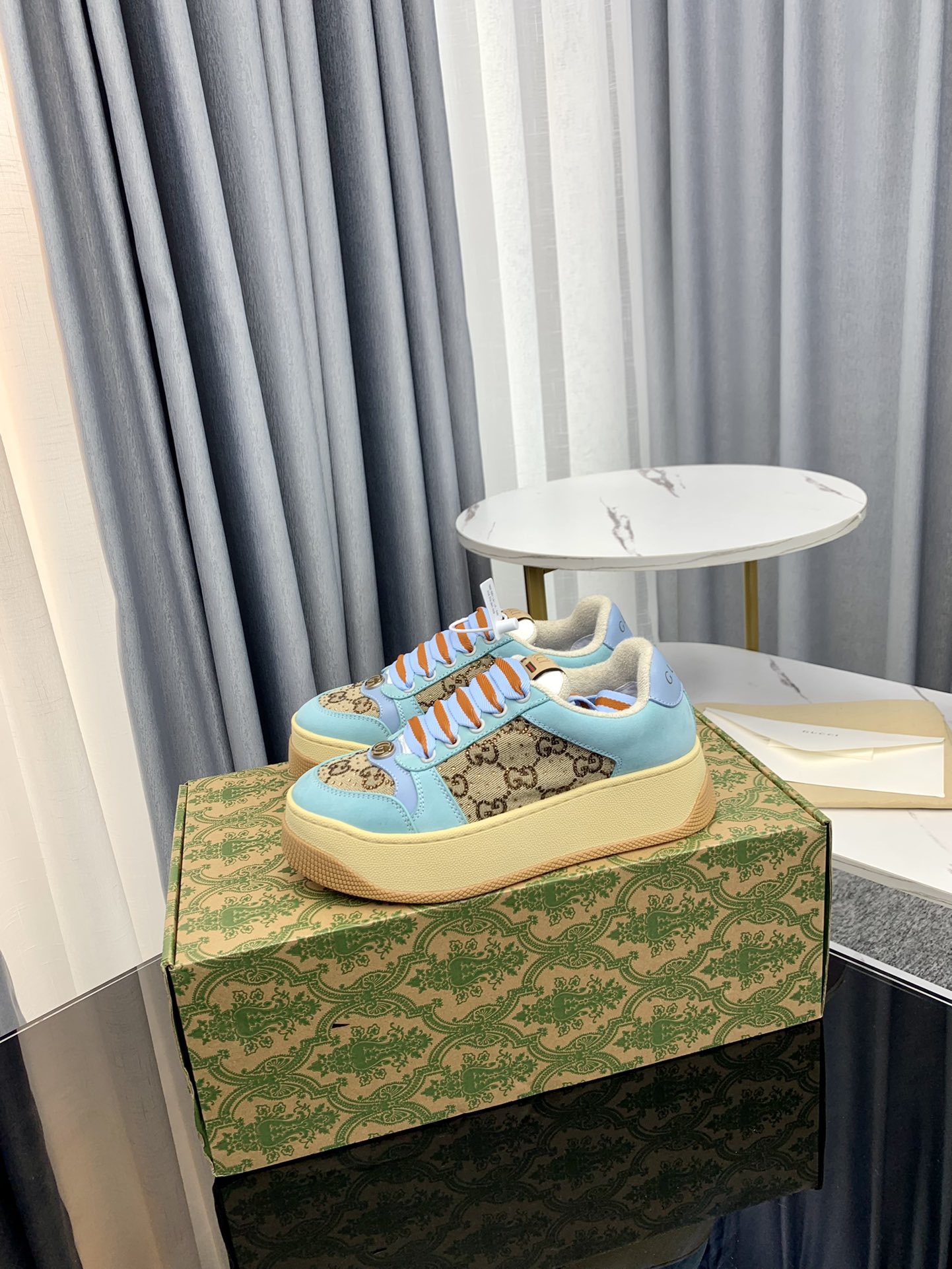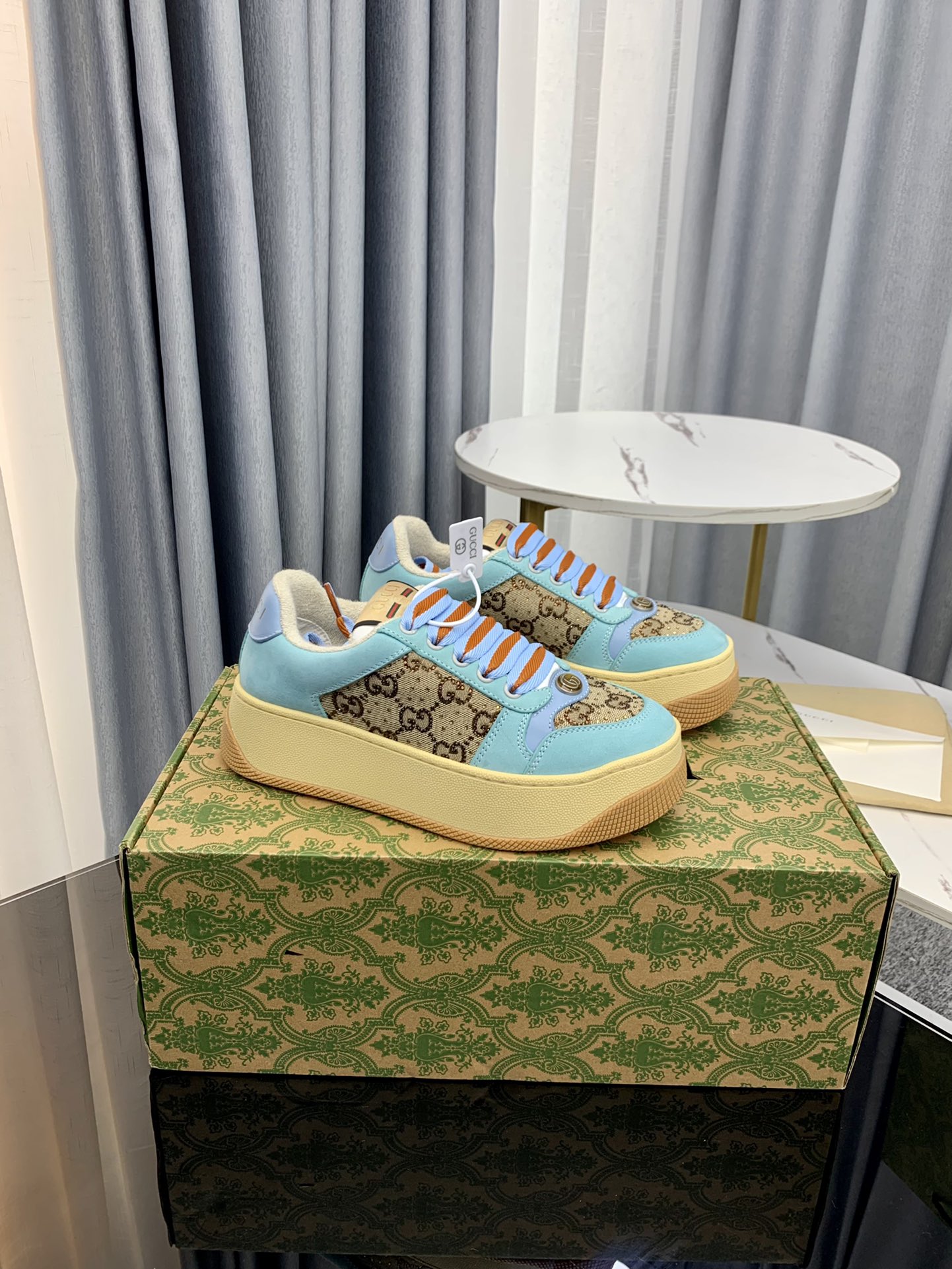 这款鞋子是AAAAA 1:1 质量 (非常棒). 使用了和原版一模一样的材料. 商标部分也保持了和古奇/Gucci一样. 图片拍摄是实物鞋子拍摄, 您所收到的实物保证和我们图片一模一样.