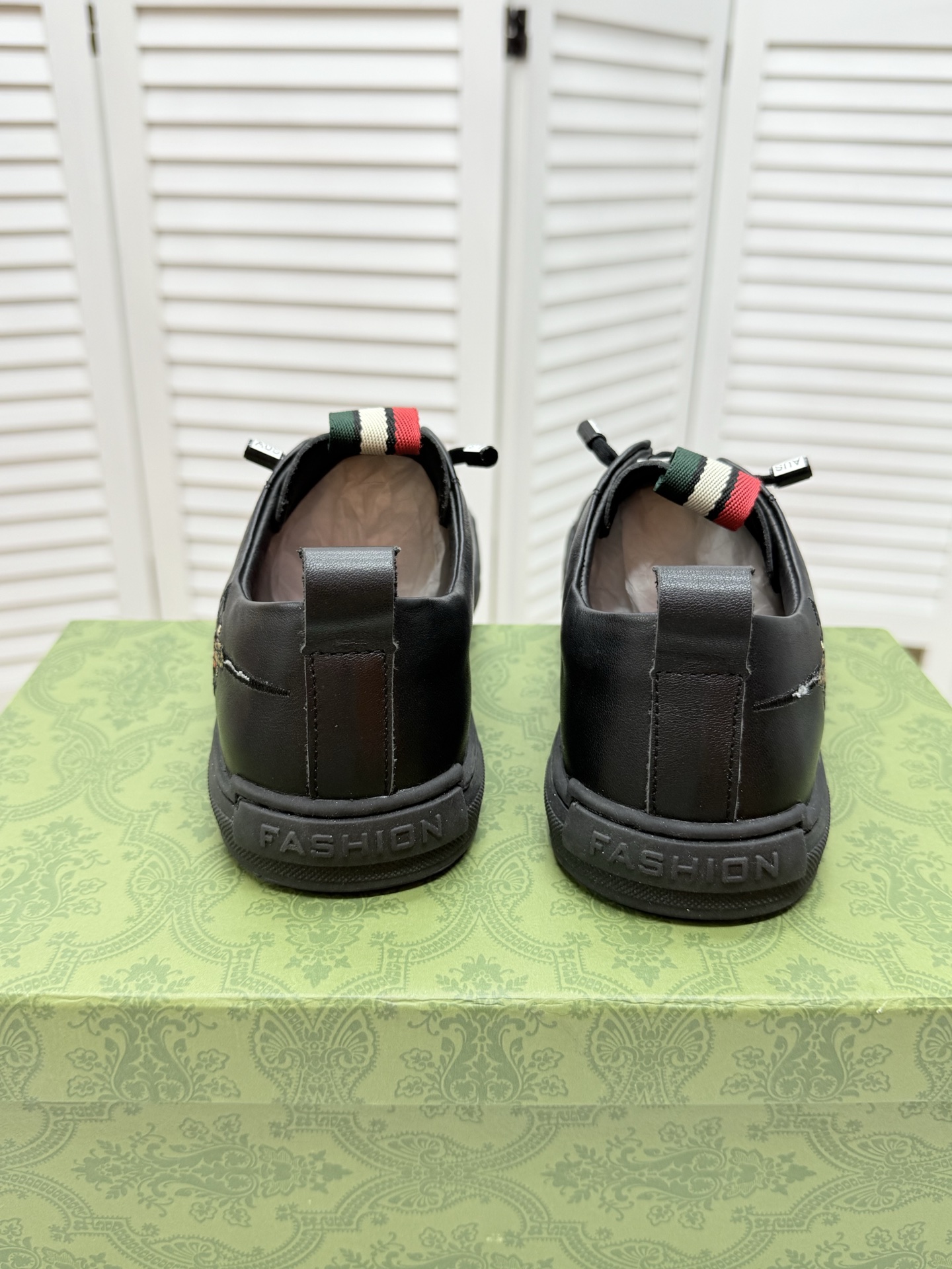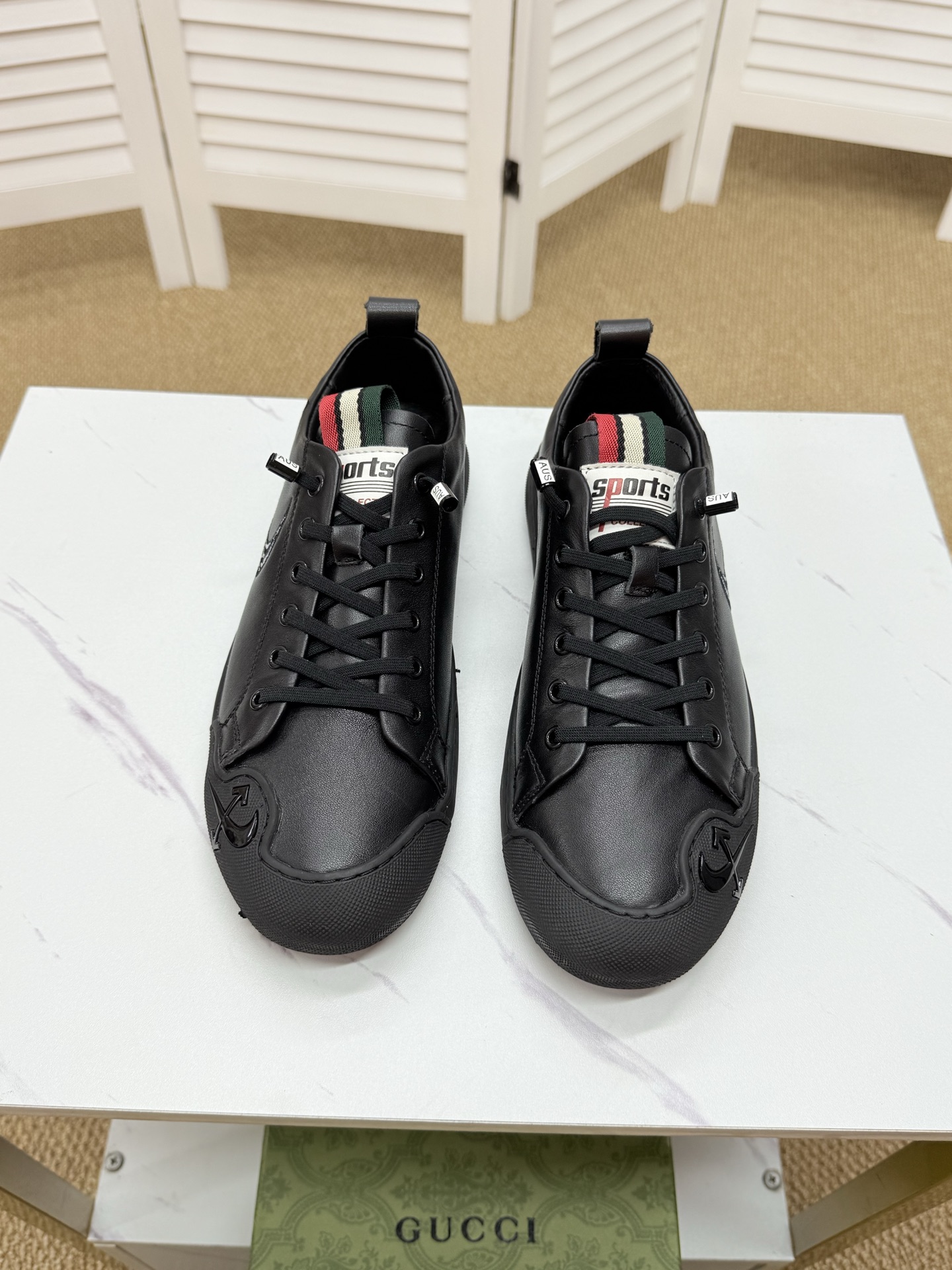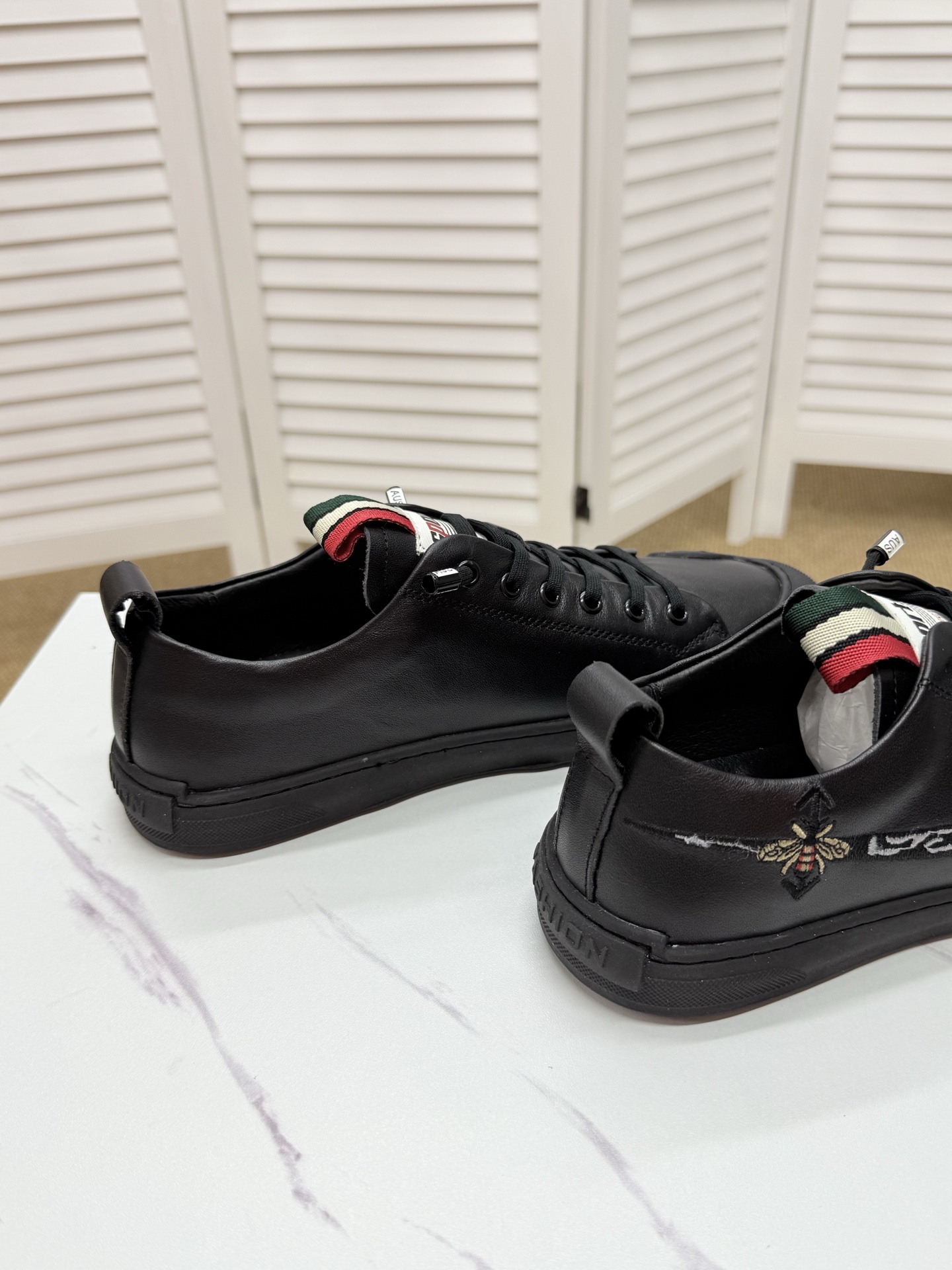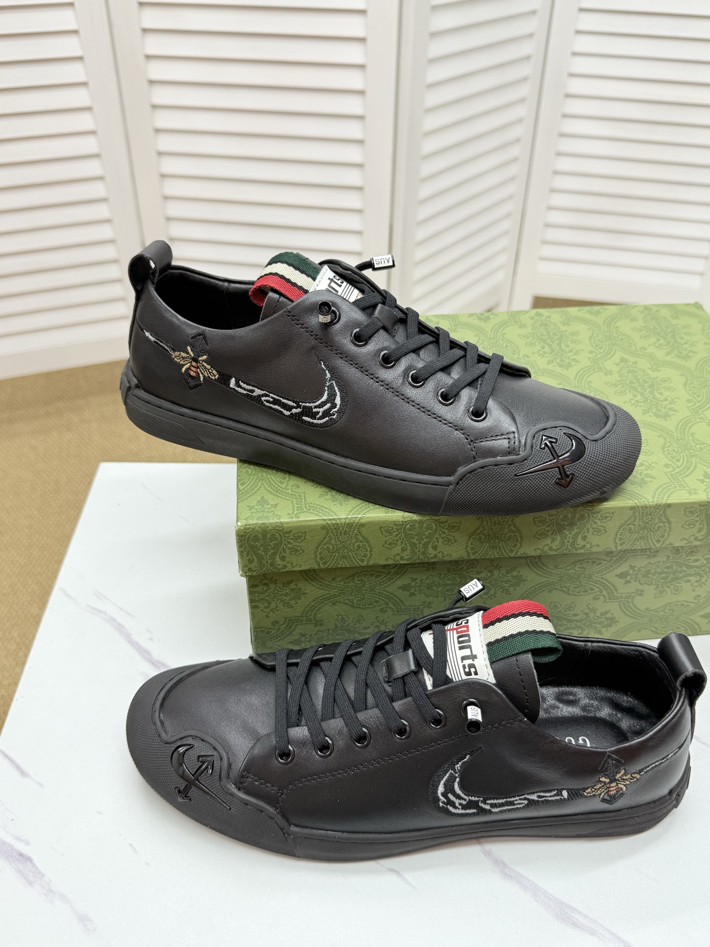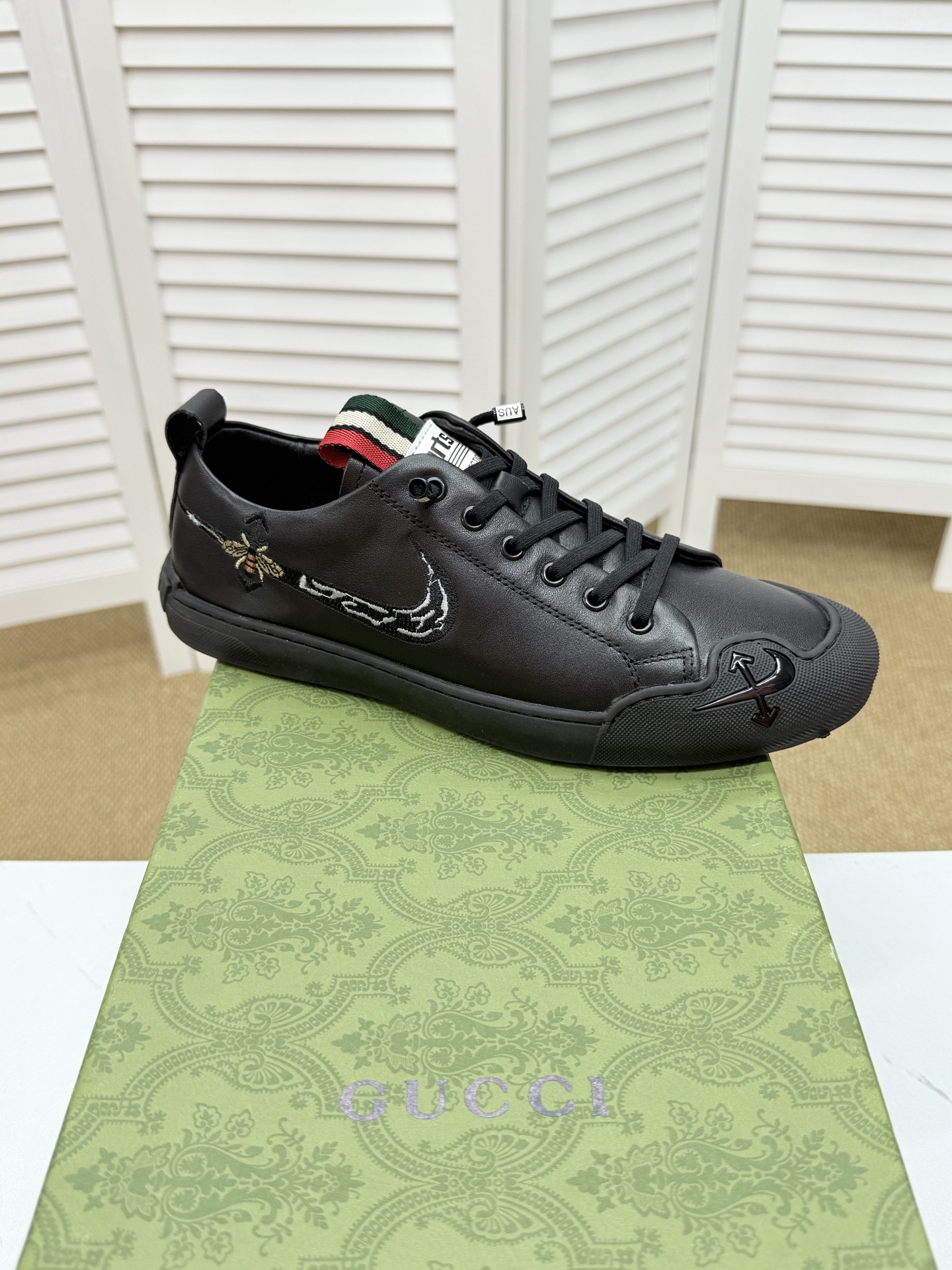 这款鞋子是AAAAA 1:1 质量 (非常棒). 使用了和原版一模一样的材料. 商标部分也保持了和古奇/Gucci一样. 图片拍摄是实物鞋子拍摄, 您所收到的实物保证和我们图片一模一样.
