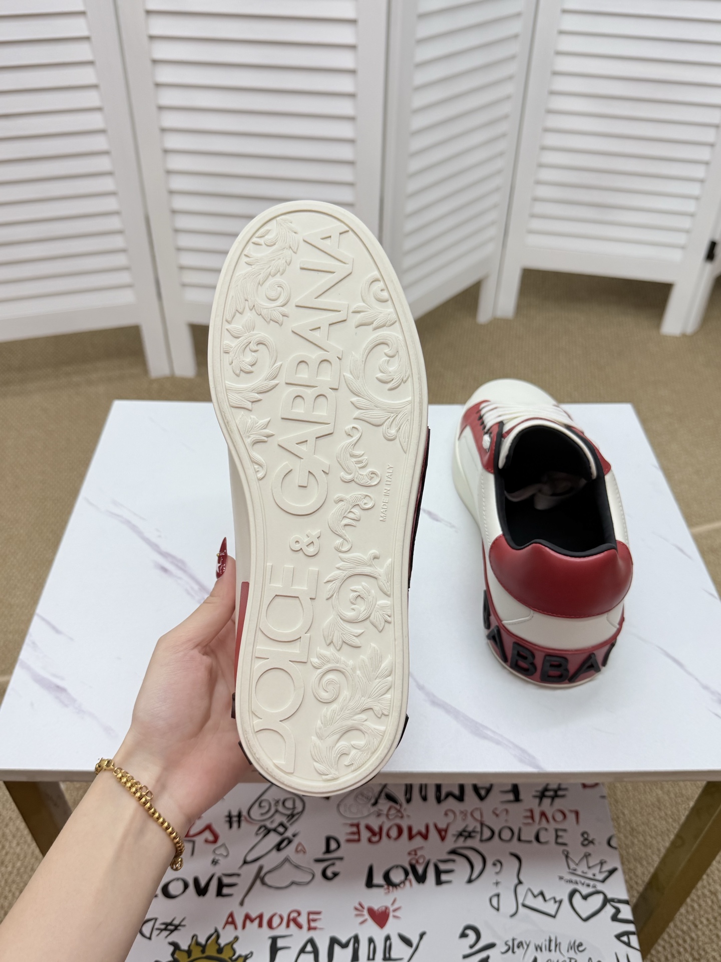 这款鞋子是AAAAA 1:1 质量 (非常棒). 使用了和原版一模一样的材料. 商标部分也保持了和杜嘉班纳/Dolce&Gabbana一样. 图片拍摄是实物鞋子拍摄, 您所收到的实物保证和我们图片一模一样.