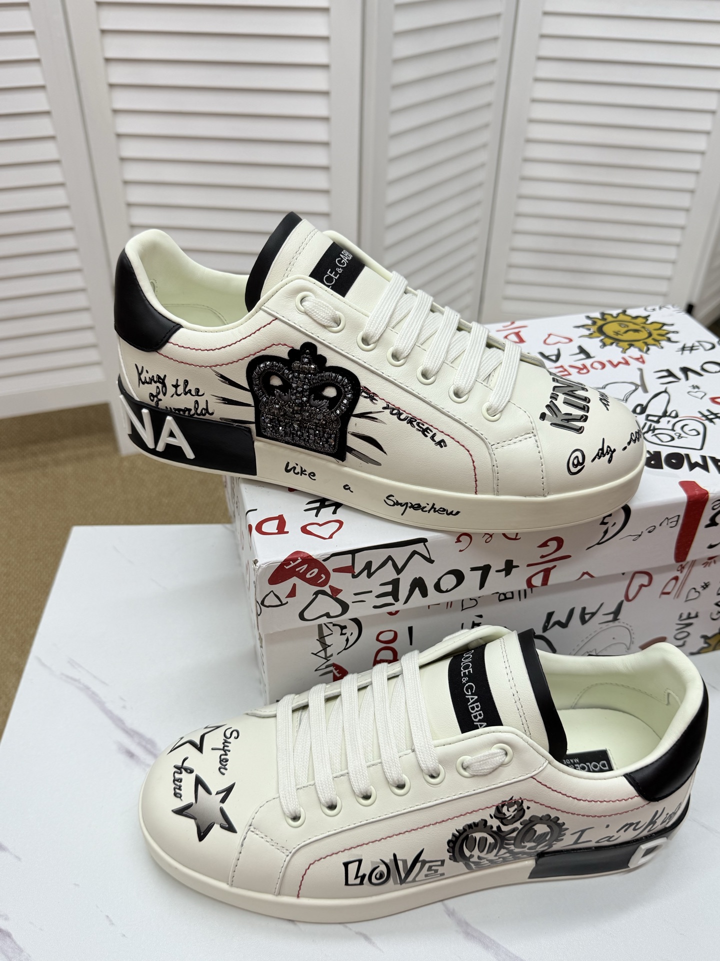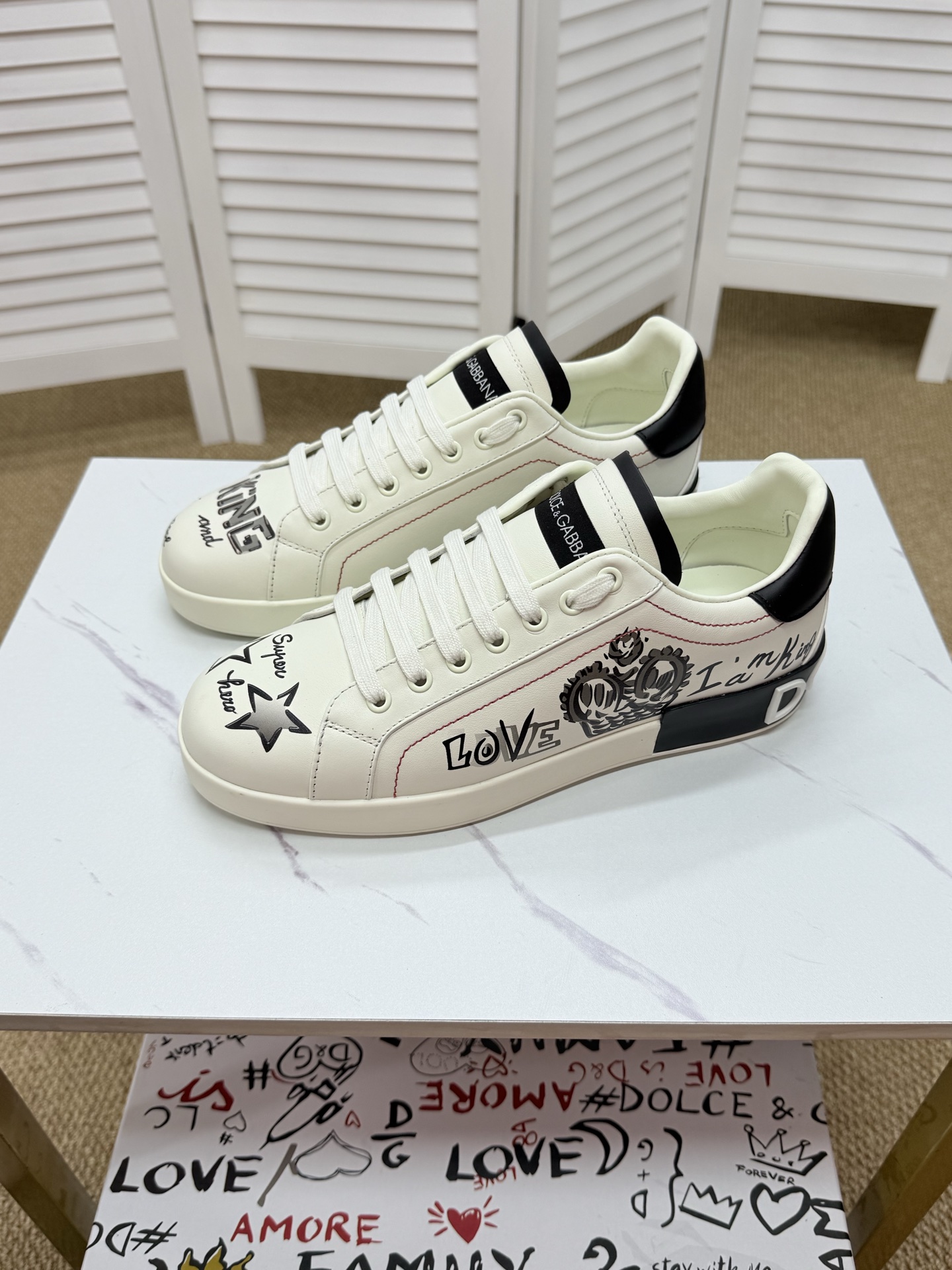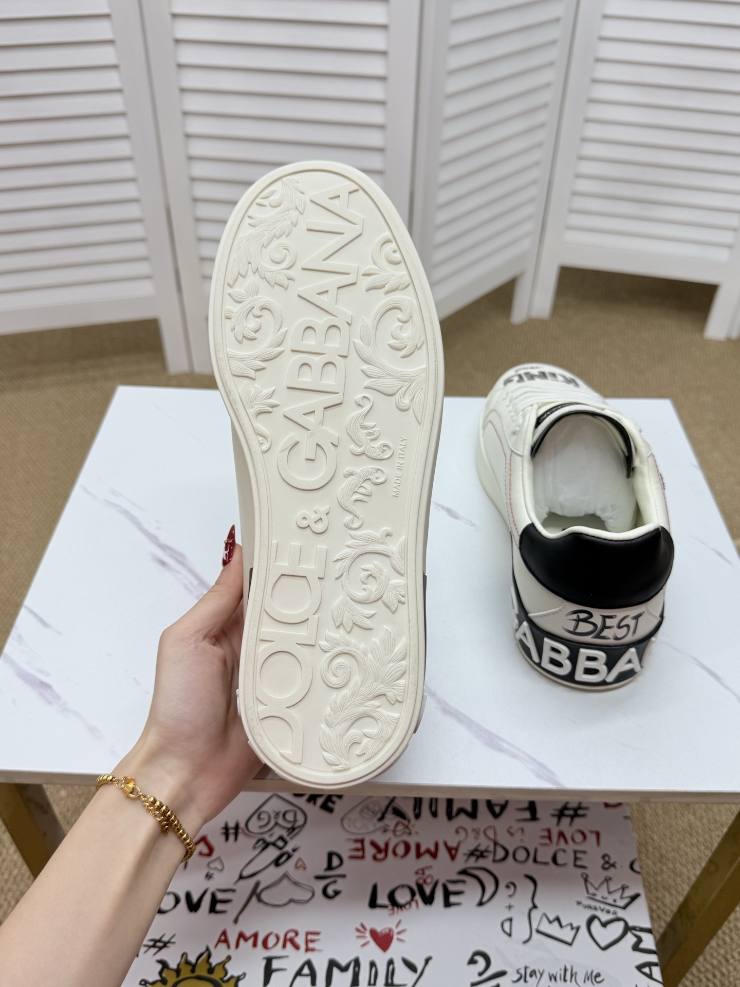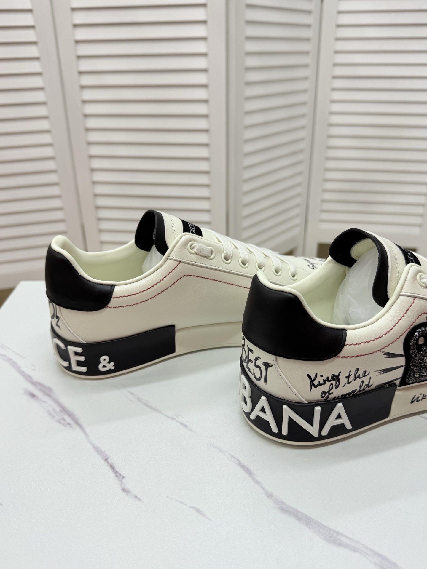 这款鞋子是AAAAA 1:1 质量 (非常棒). 使用了和原版一模一样的材料. 商标部分也保持了和杜嘉班纳/Dolce&Gabbana一样. 图片拍摄是实物鞋子拍摄, 您所收到的实物保证和我们图片一模一样.