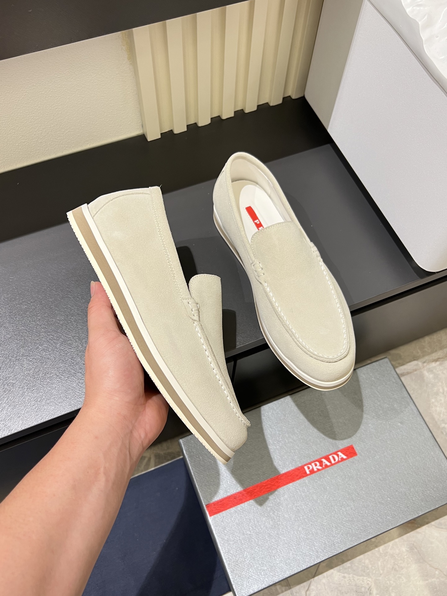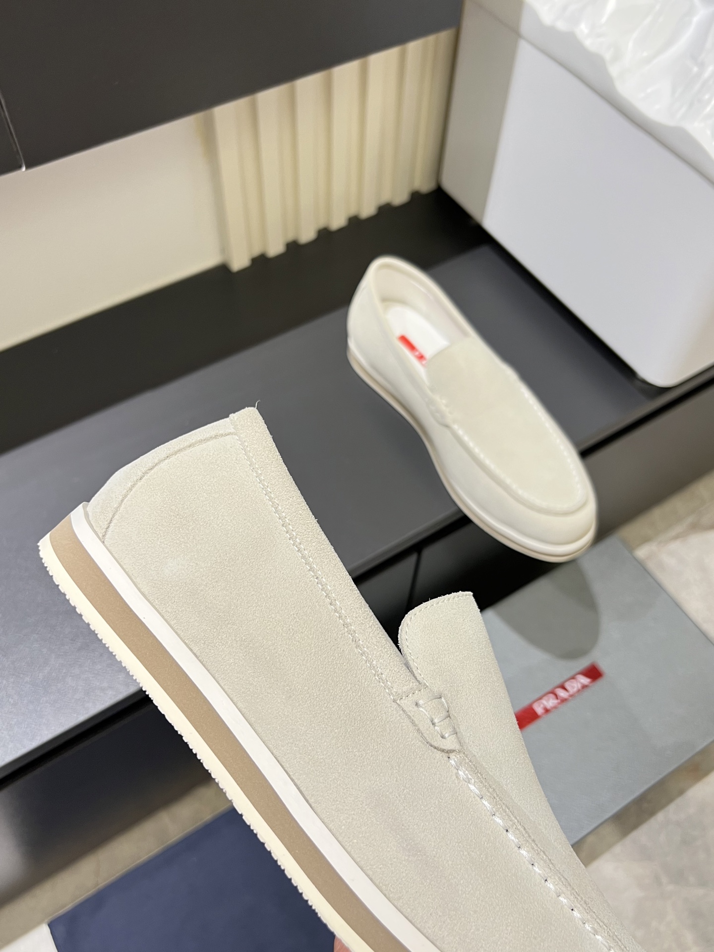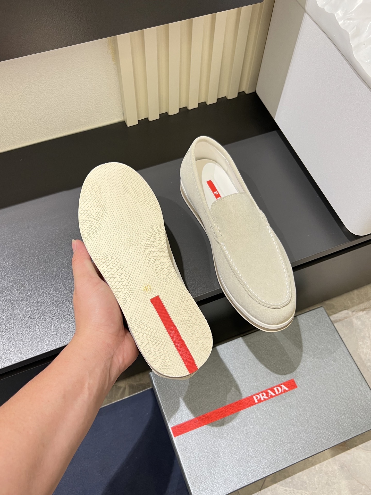 这款鞋子是AAAAA 1:1 质量 (非常棒). 使用了和原版一模一样的材料. 商标部分也保持了和普拉达/Prada一样. 图片拍摄是实物鞋子拍摄, 您所收到的实物保证和我们图片一模一样.