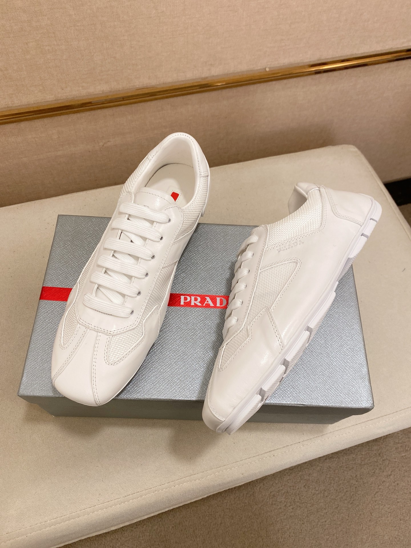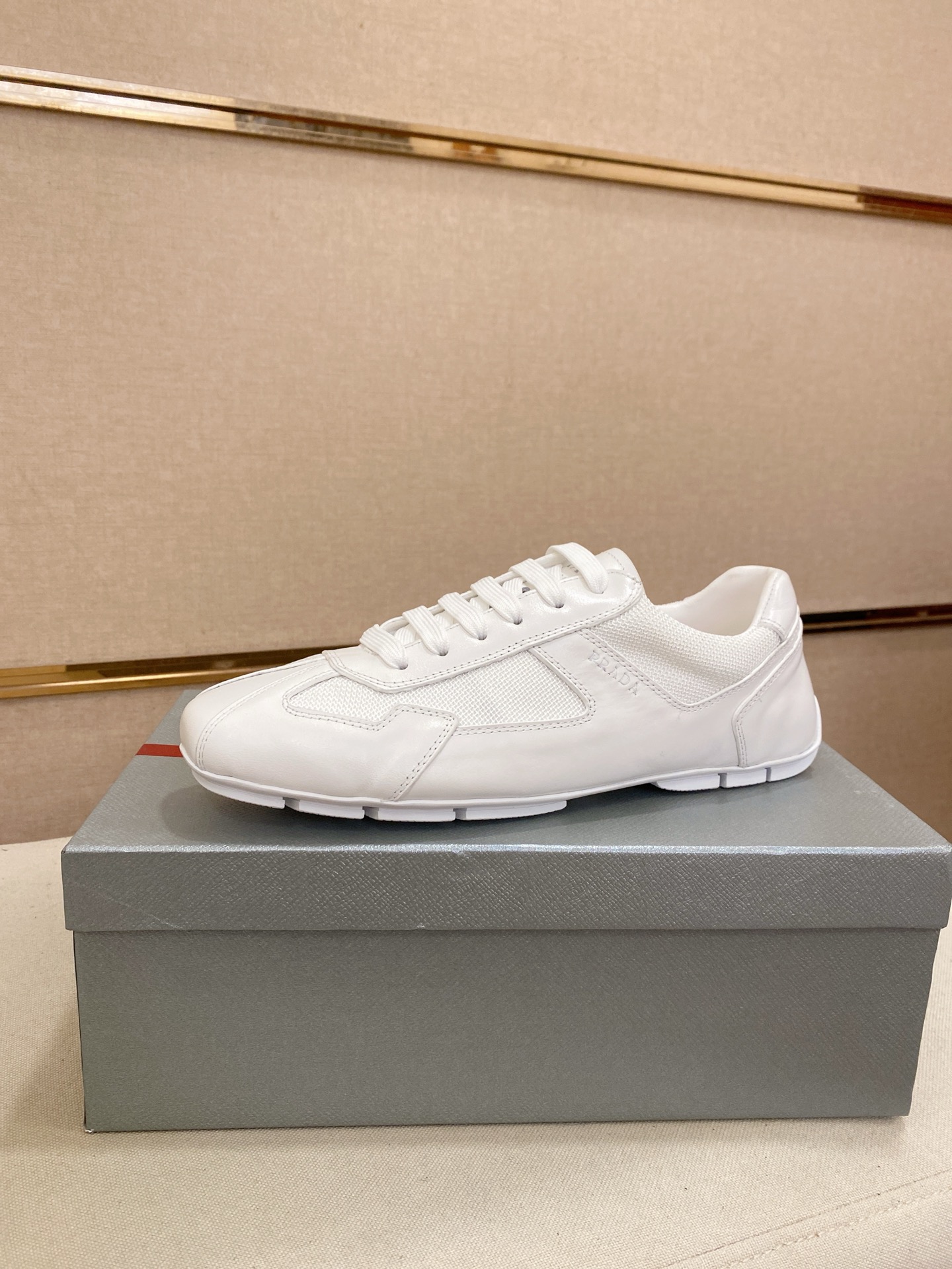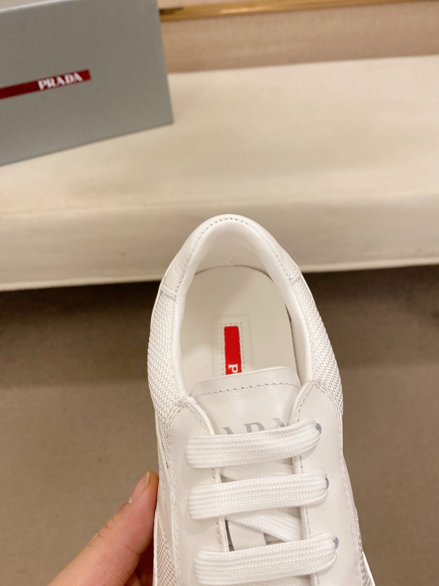 这款鞋子是AAAAA 1:1 质量 (非常棒). 使用了和原版一模一样的材料. 商标部分也保持了和普拉达/Prada一样. 图片拍摄是实物鞋子拍摄, 您所收到的实物保证和我们图片一模一样.