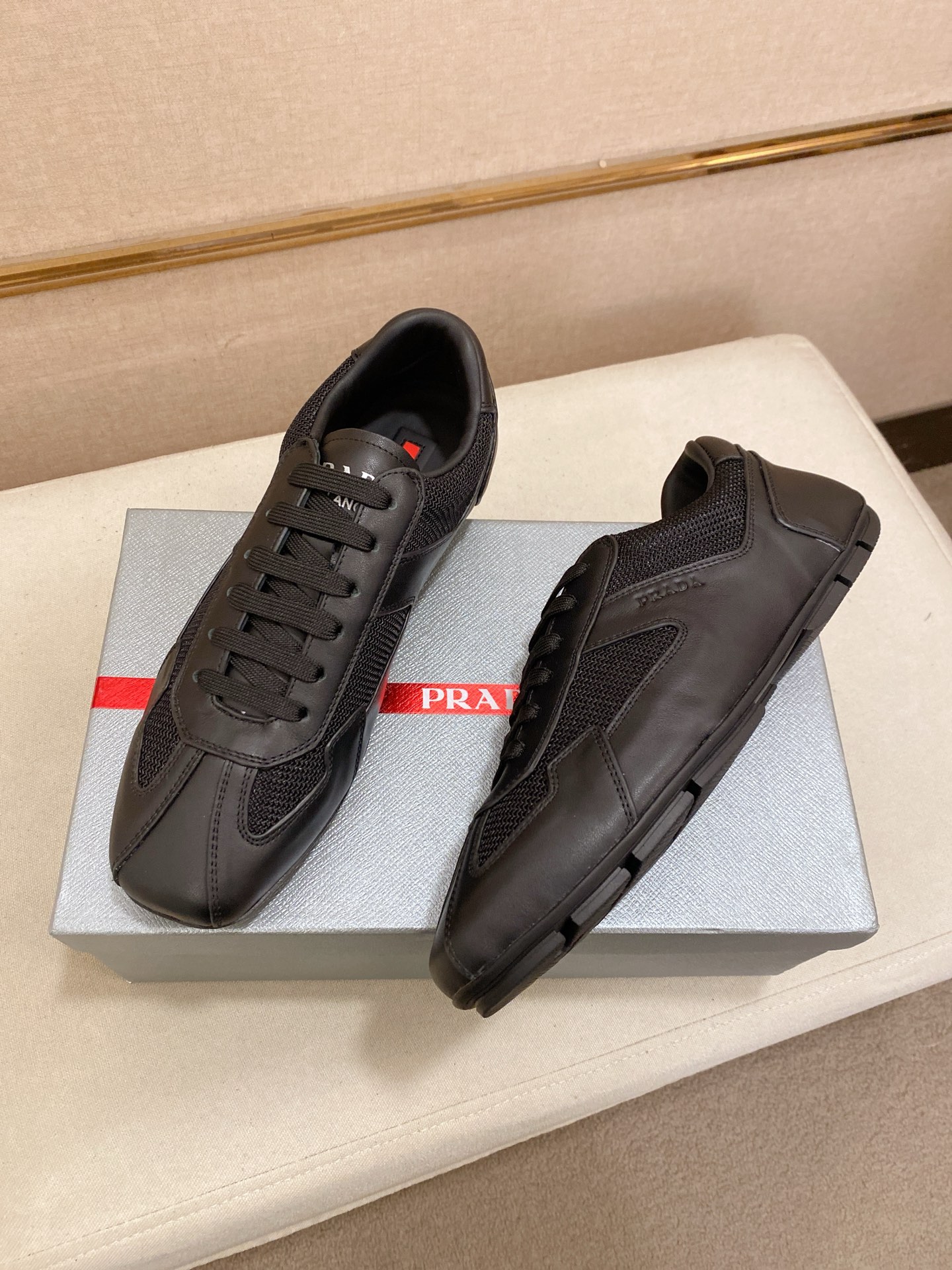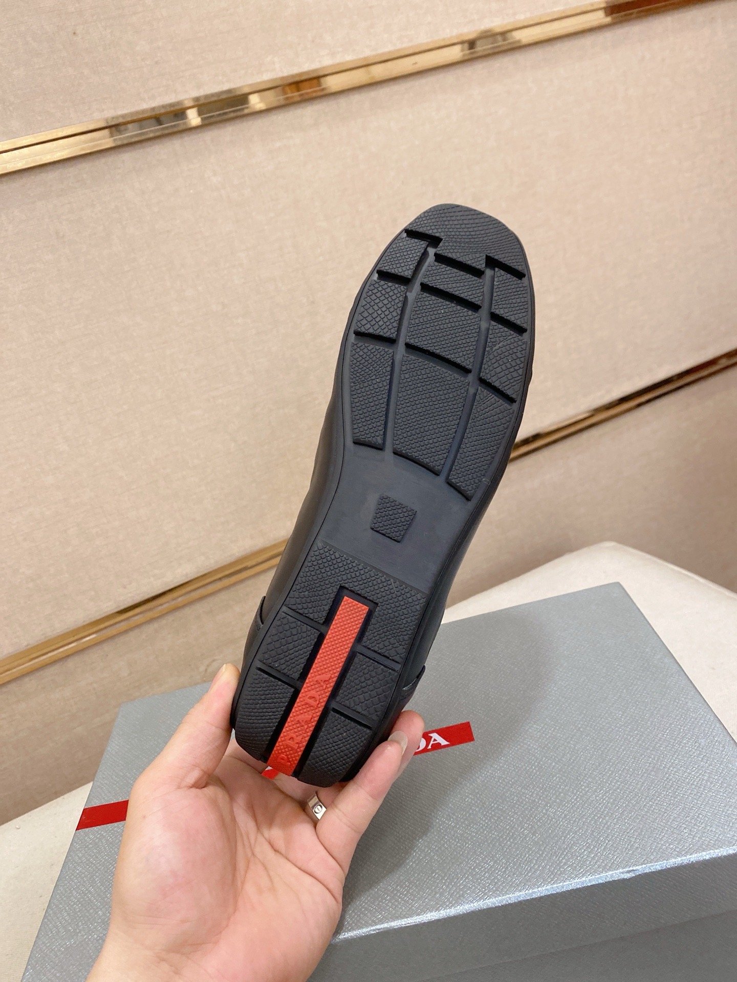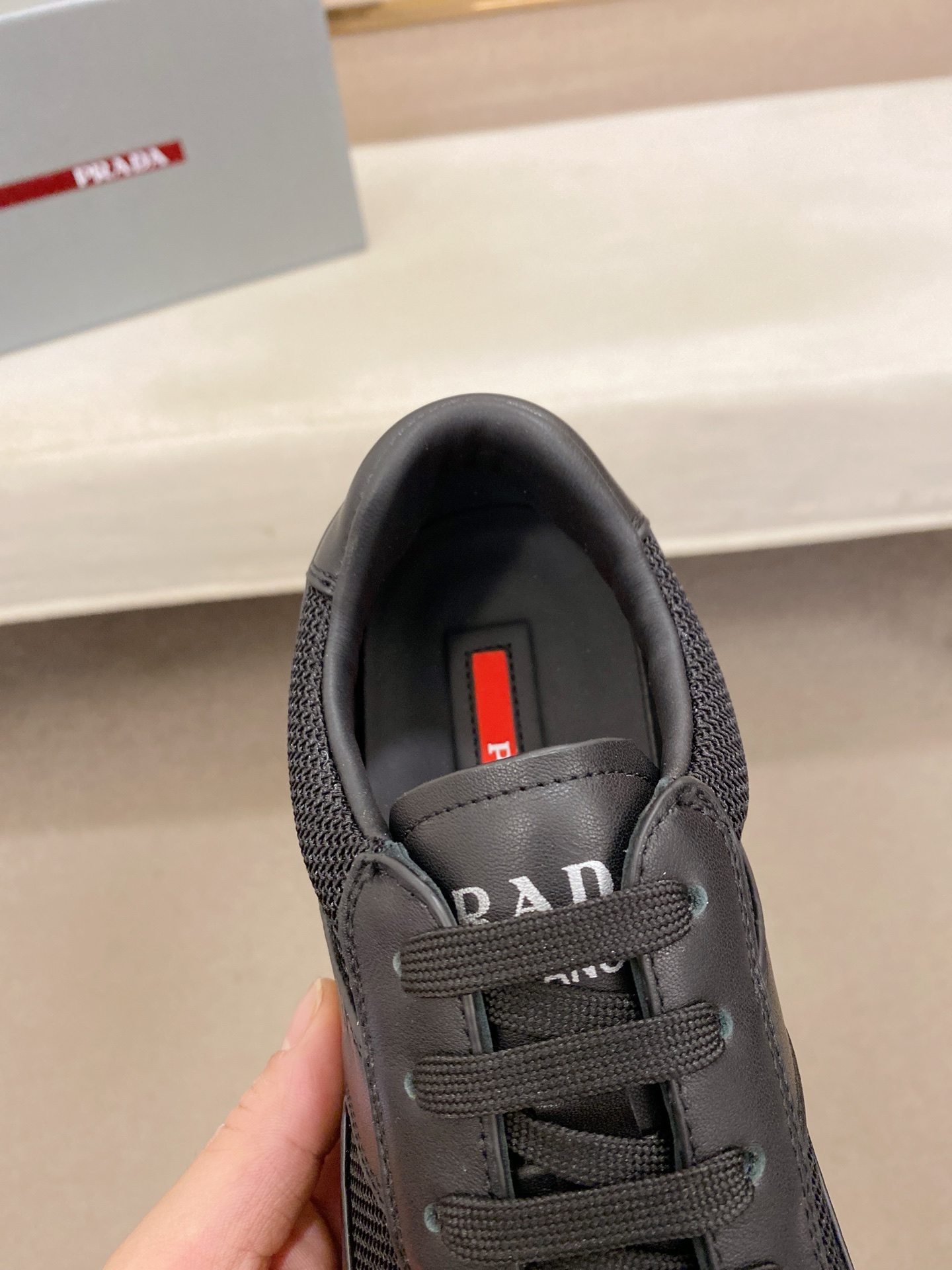 这款鞋子是AAAAA 1:1 质量 (非常棒). 使用了和原版一模一样的材料. 商标部分也保持了和普拉达/Prada一样. 图片拍摄是实物鞋子拍摄, 您所收到的实物保证和我们图片一模一样.
