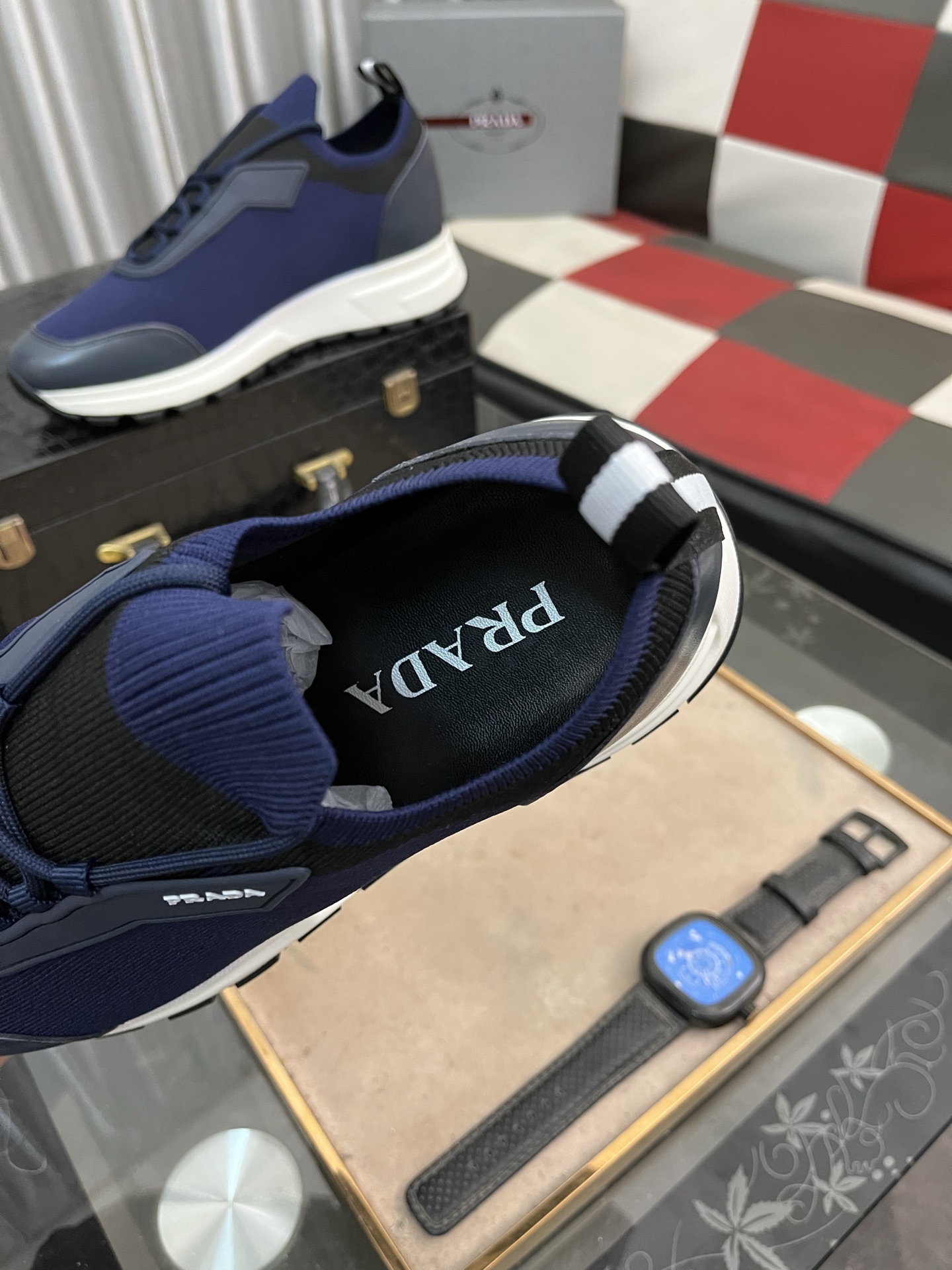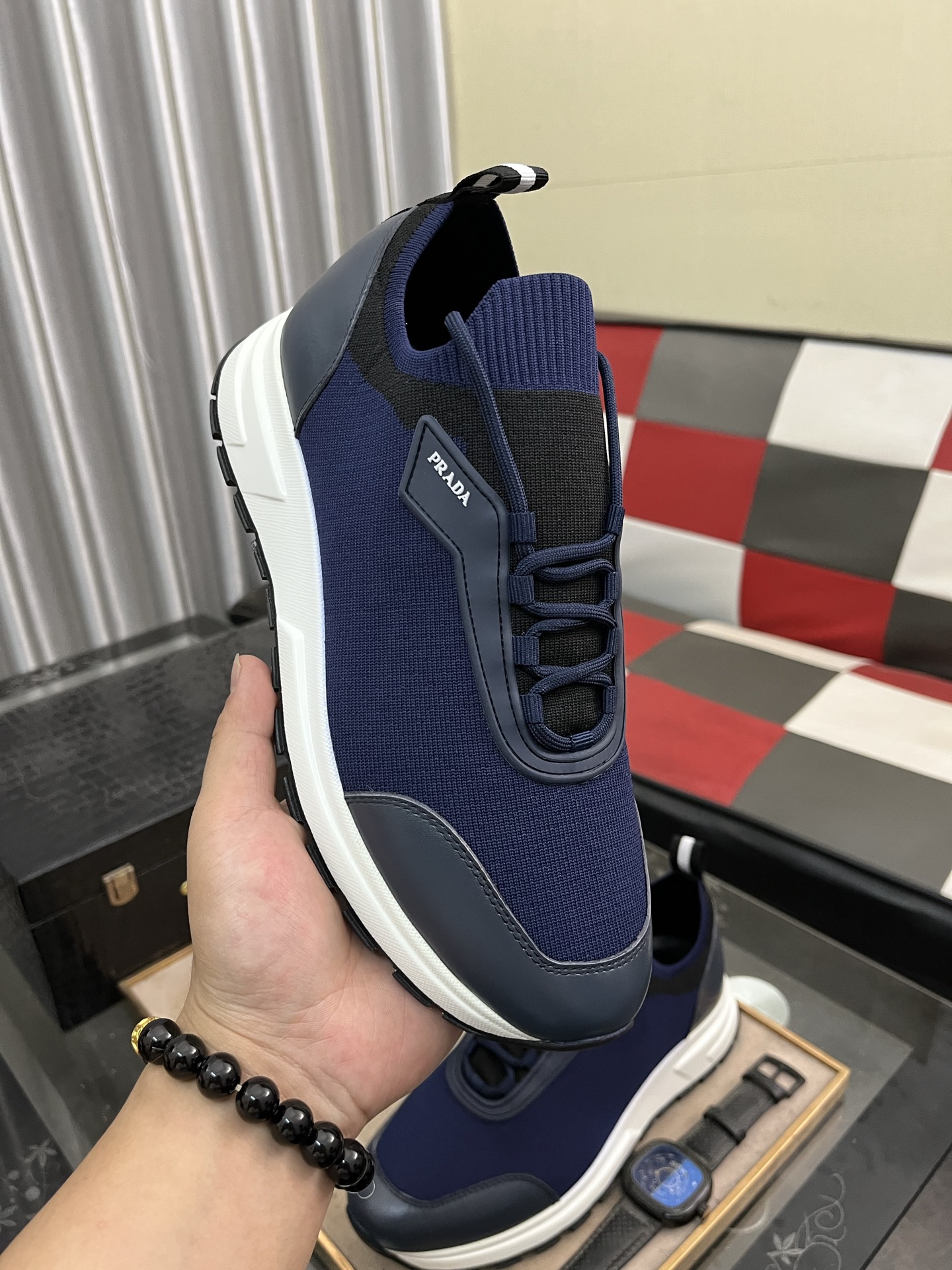 这款鞋子是AAAAA 1:1 质量 (非常棒). 使用了和原版一模一样的材料. 商标部分也保持了和普拉达/Prada一样. 图片拍摄是实物鞋子拍摄, 您所收到的实物保证和我们图片一模一样.