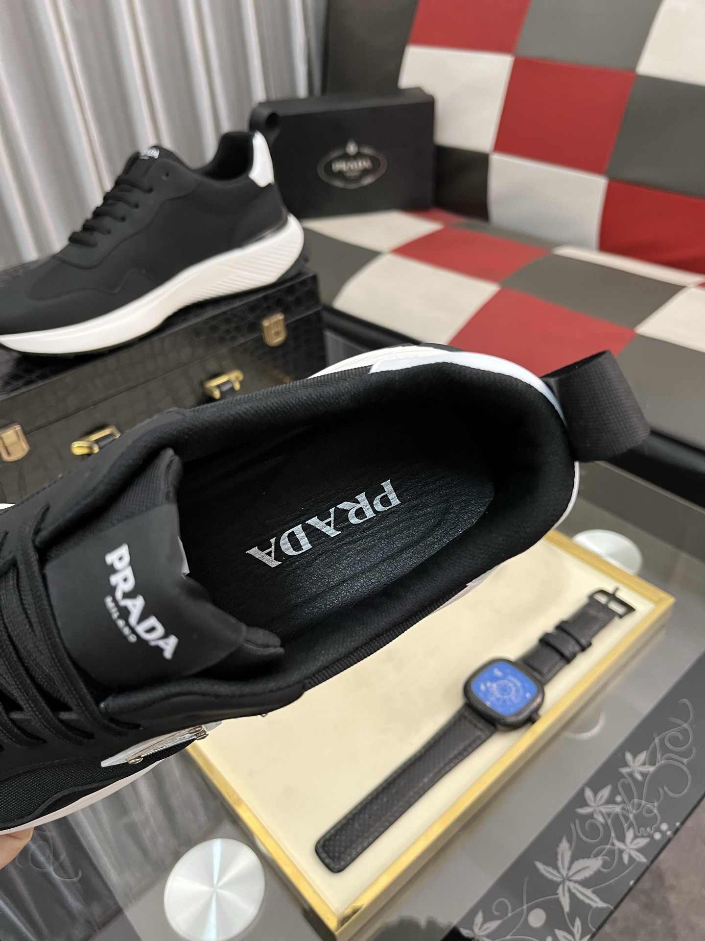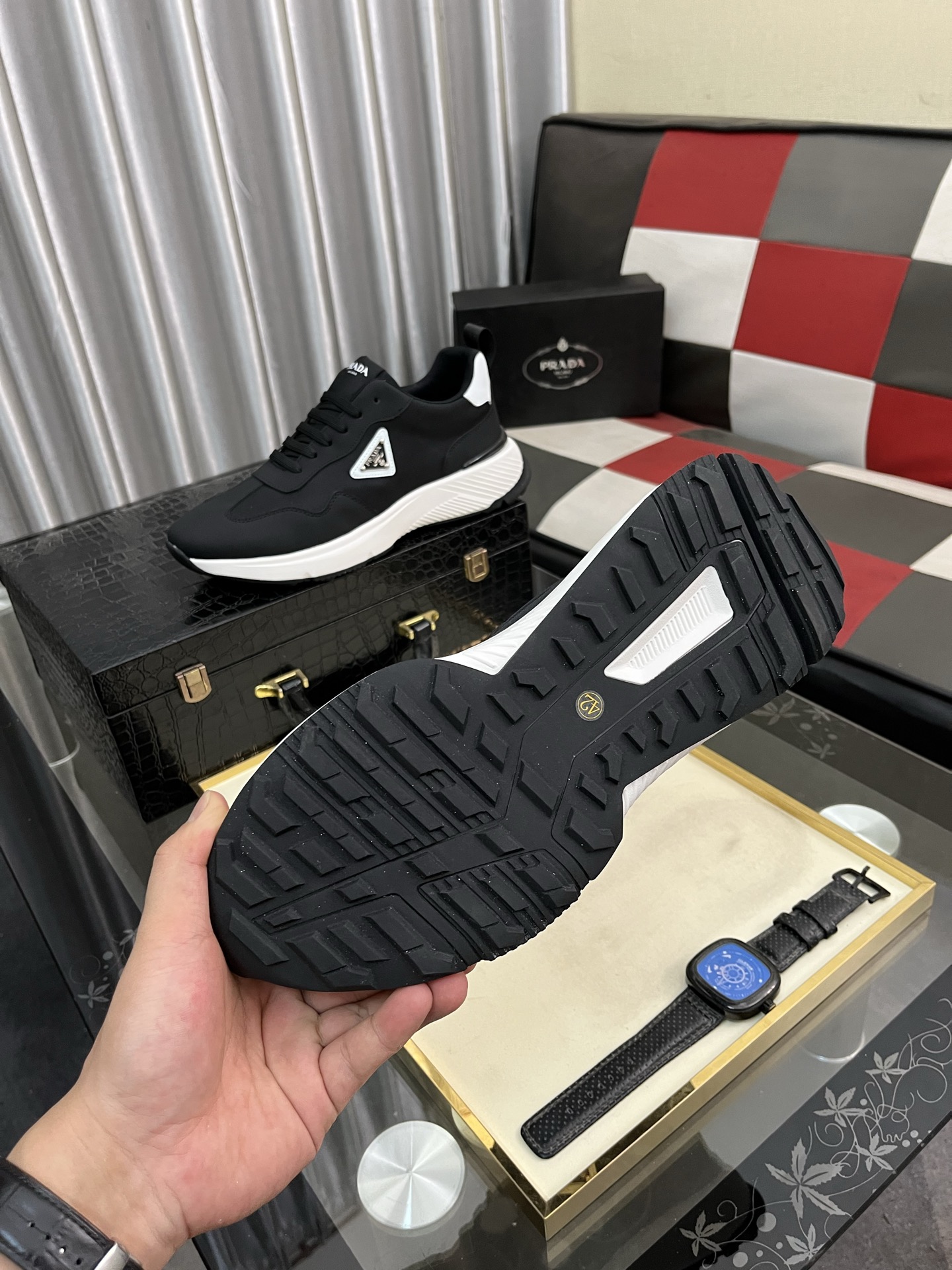 这款鞋子是AAAAA 1:1 质量 (非常棒). 使用了和原版一模一样的材料. 商标部分也保持了和普拉达/Prada一样. 图片拍摄是实物鞋子拍摄, 您所收到的实物保证和我们图片一模一样.