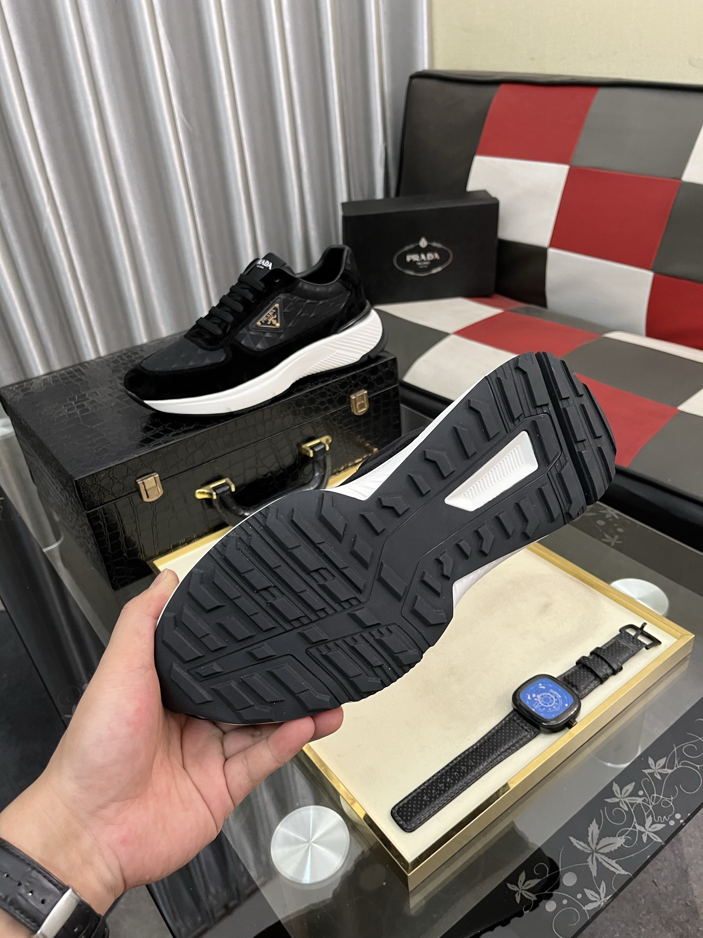 这款鞋子是AAAAA 1:1 质量 (非常棒). 使用了和原版一模一样的材料. 商标部分也保持了和普拉达/Prada一样. 图片拍摄是实物鞋子拍摄, 您所收到的实物保证和我们图片一模一样.