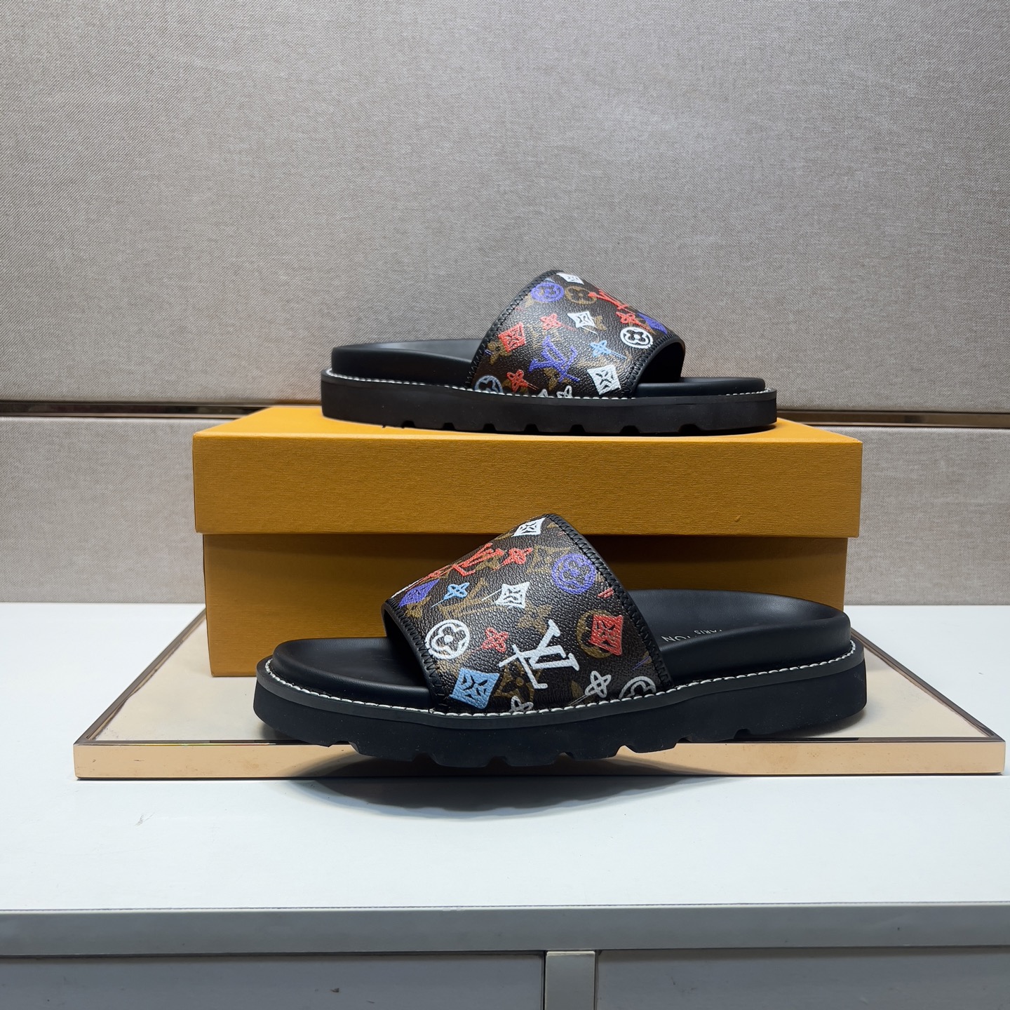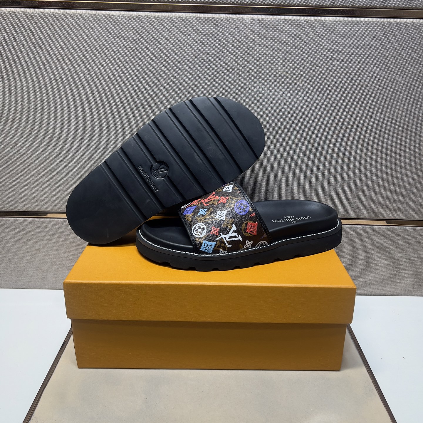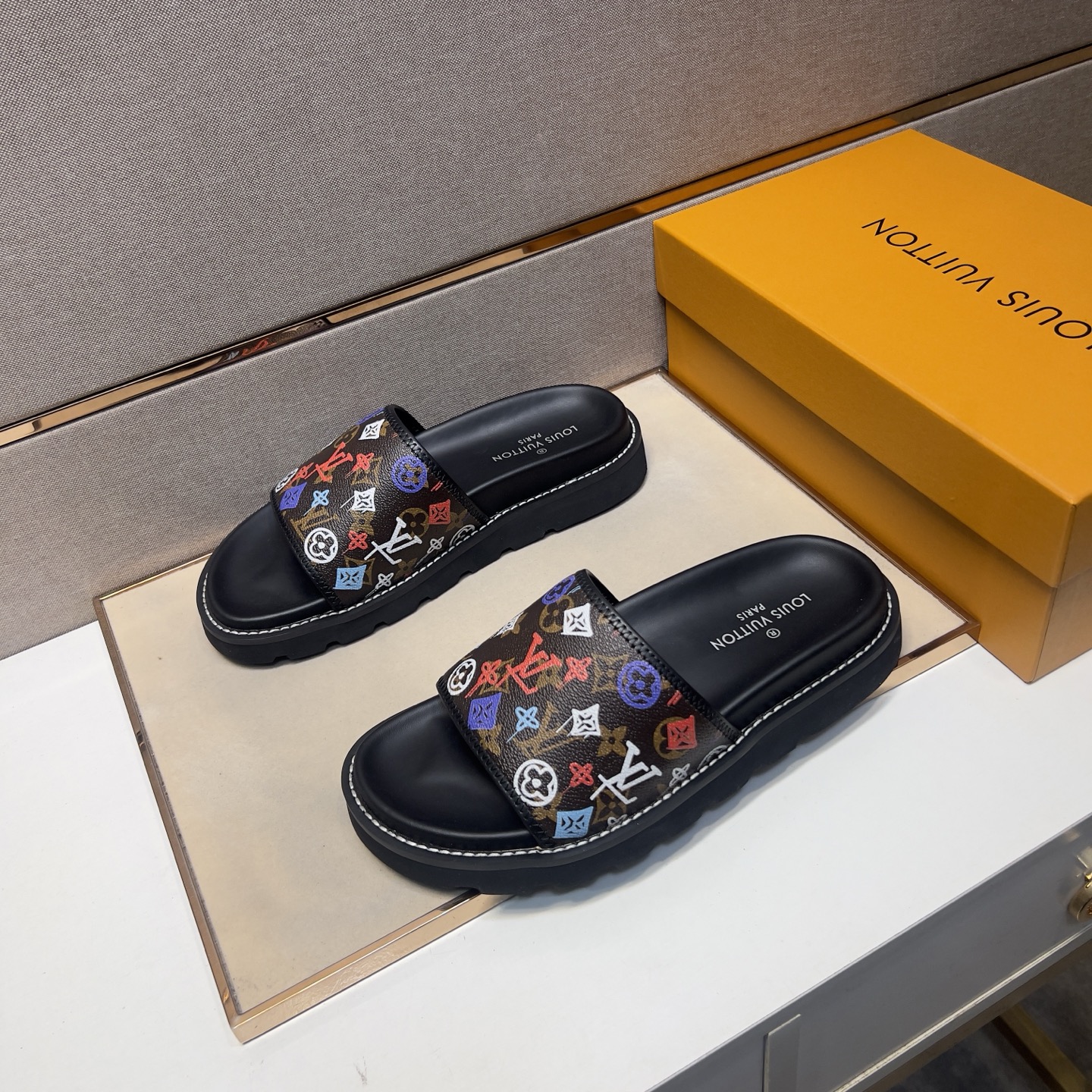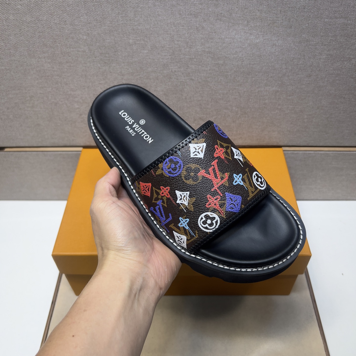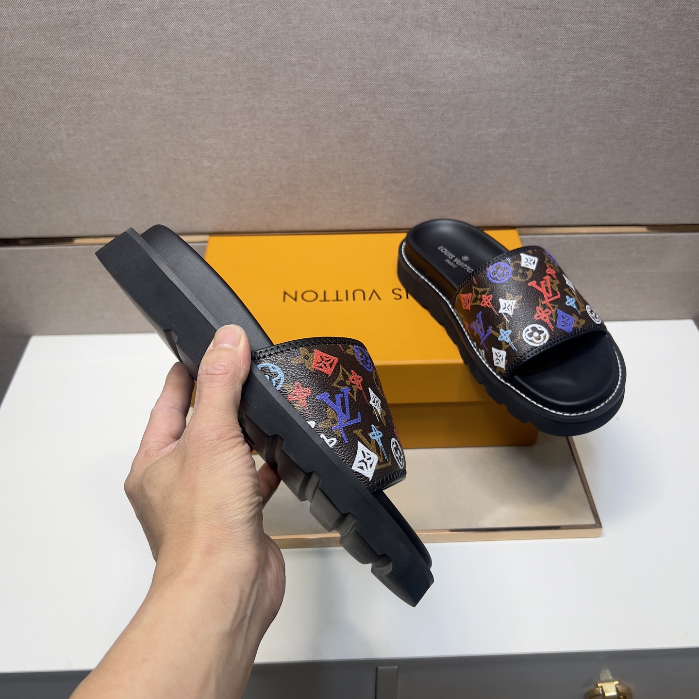这款鞋子是AAAAA 1:1 质量 (非常棒). 使用了和原版一模一样的材料. 商标部分也保持了和路易威登/Louis Vuitton一样. 图片拍摄是实物鞋子拍摄, 您所收到的实物保证和我们图片一模一样.