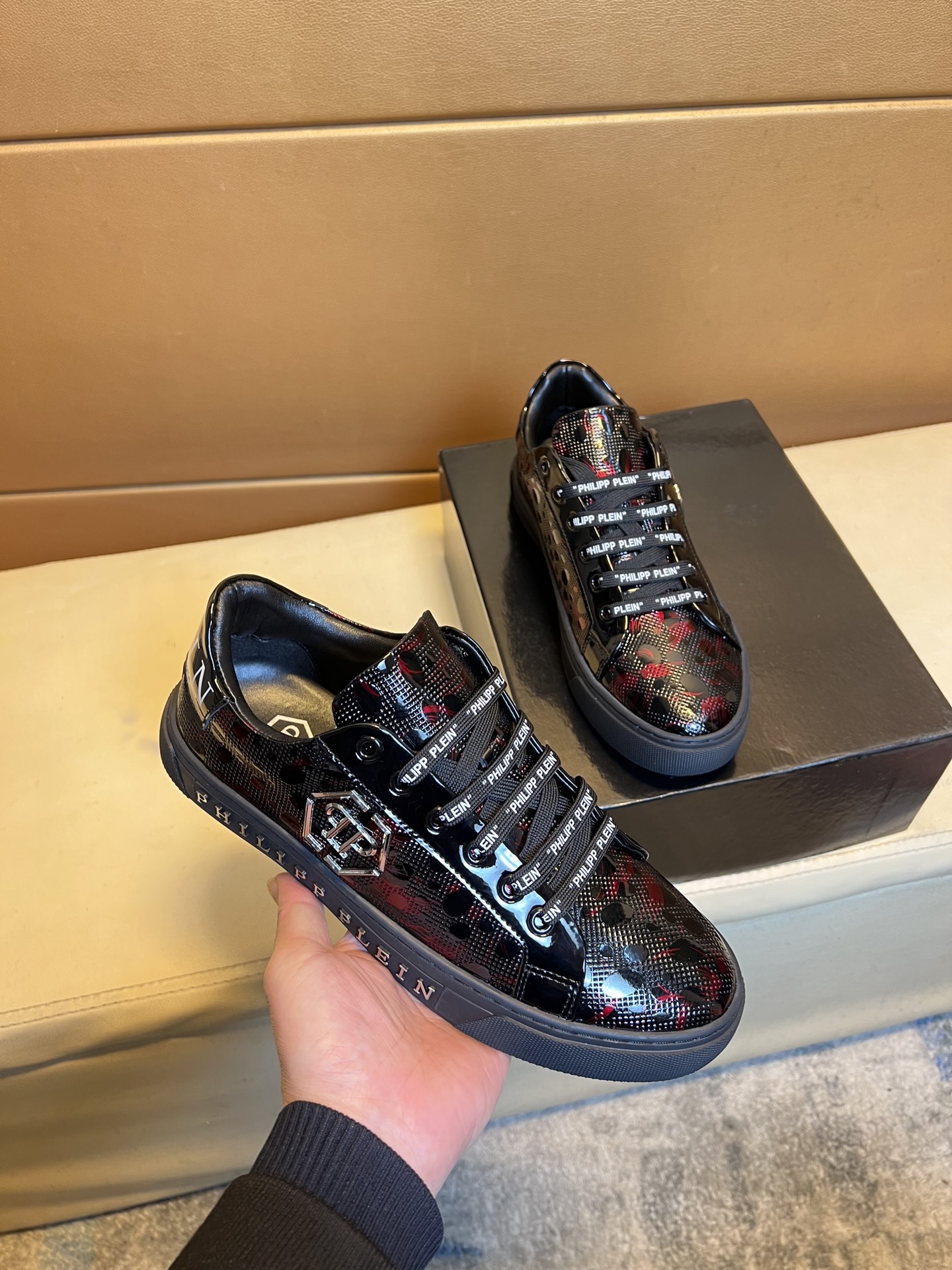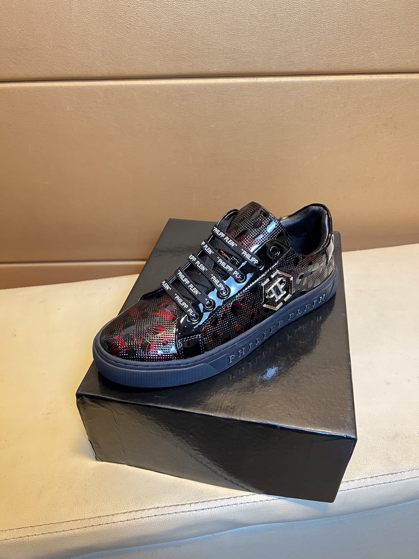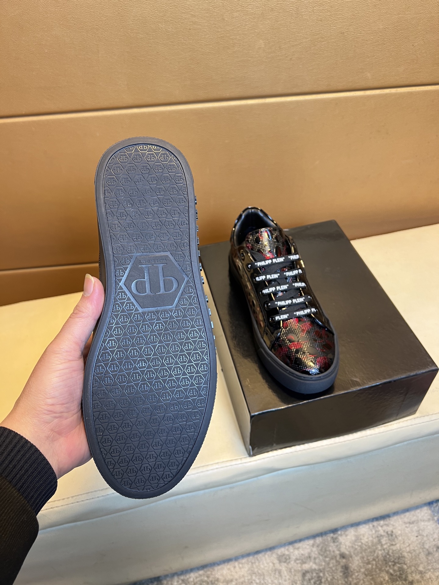 这款鞋子是AAAAA 1:1 质量 (非常棒). 使用了和原版一模一样的材料. 商标部分也保持了和菲利普·普林/Philipp Plein一样. 图片拍摄是实物鞋子拍摄, 您所收到的实物保证和我们图片一模一样.