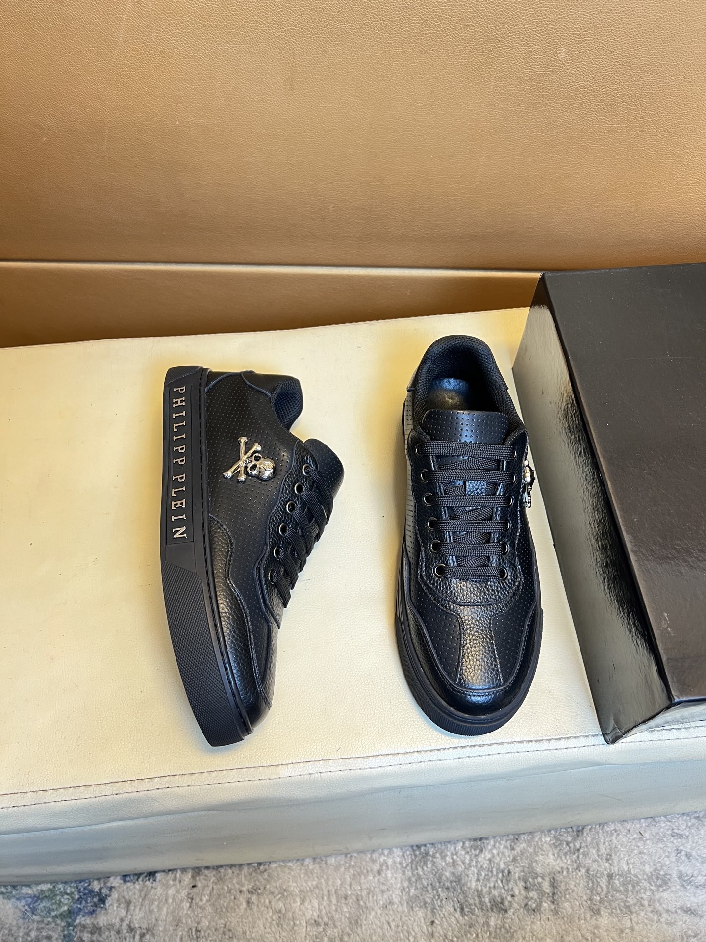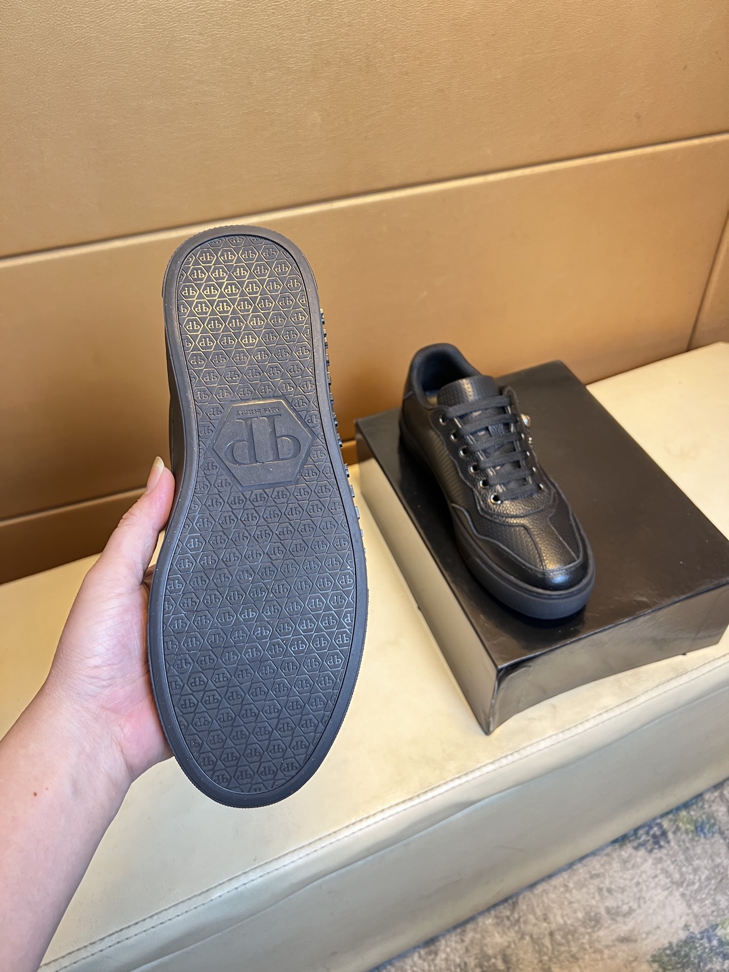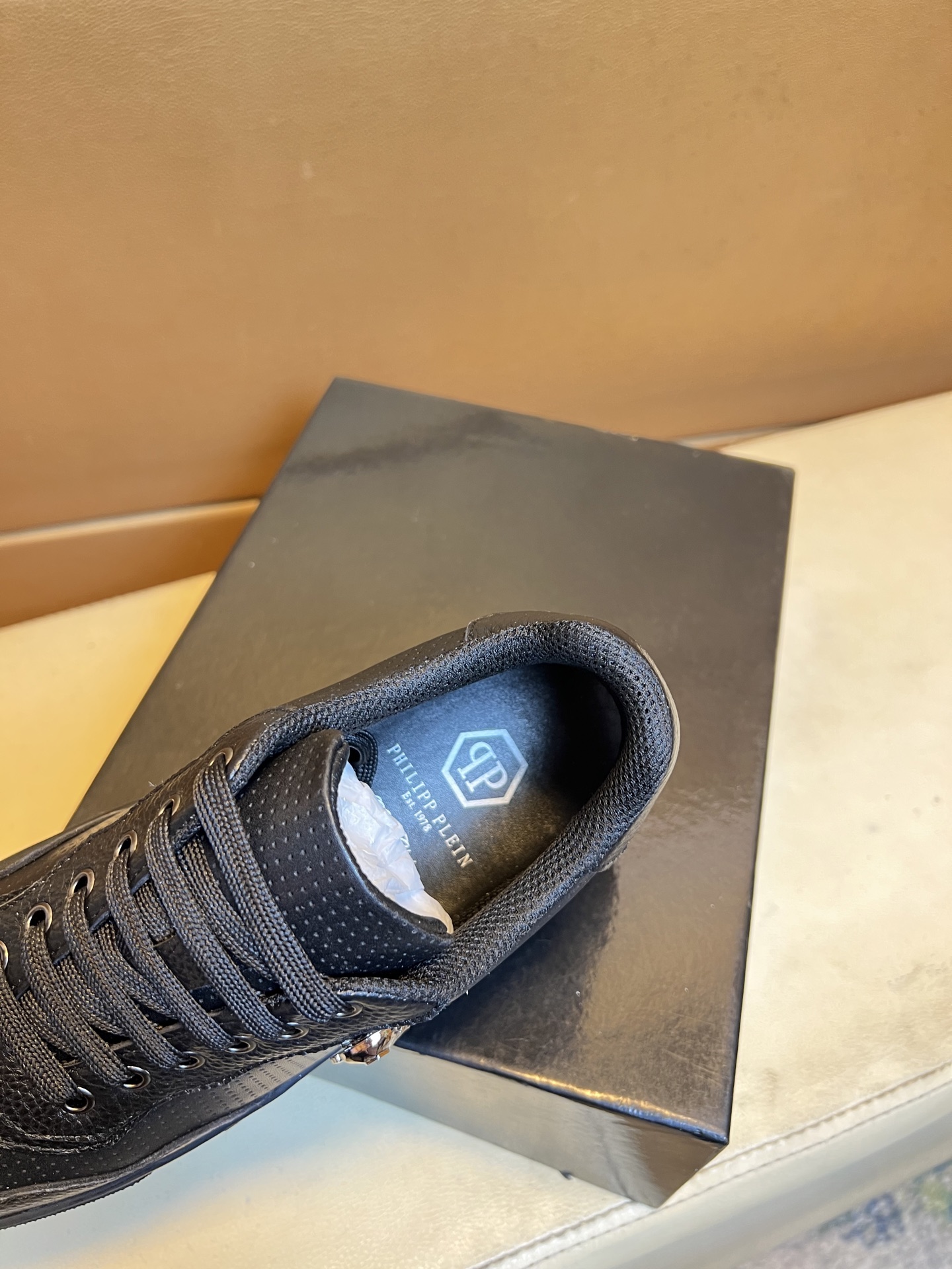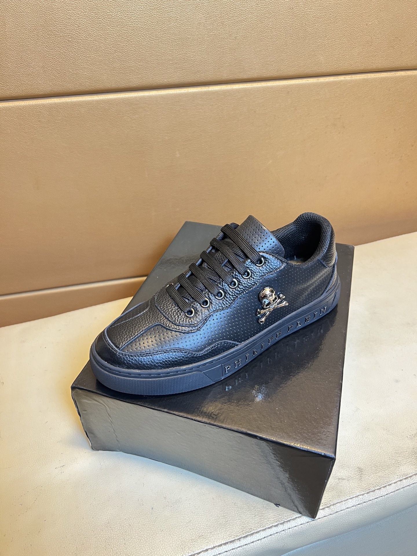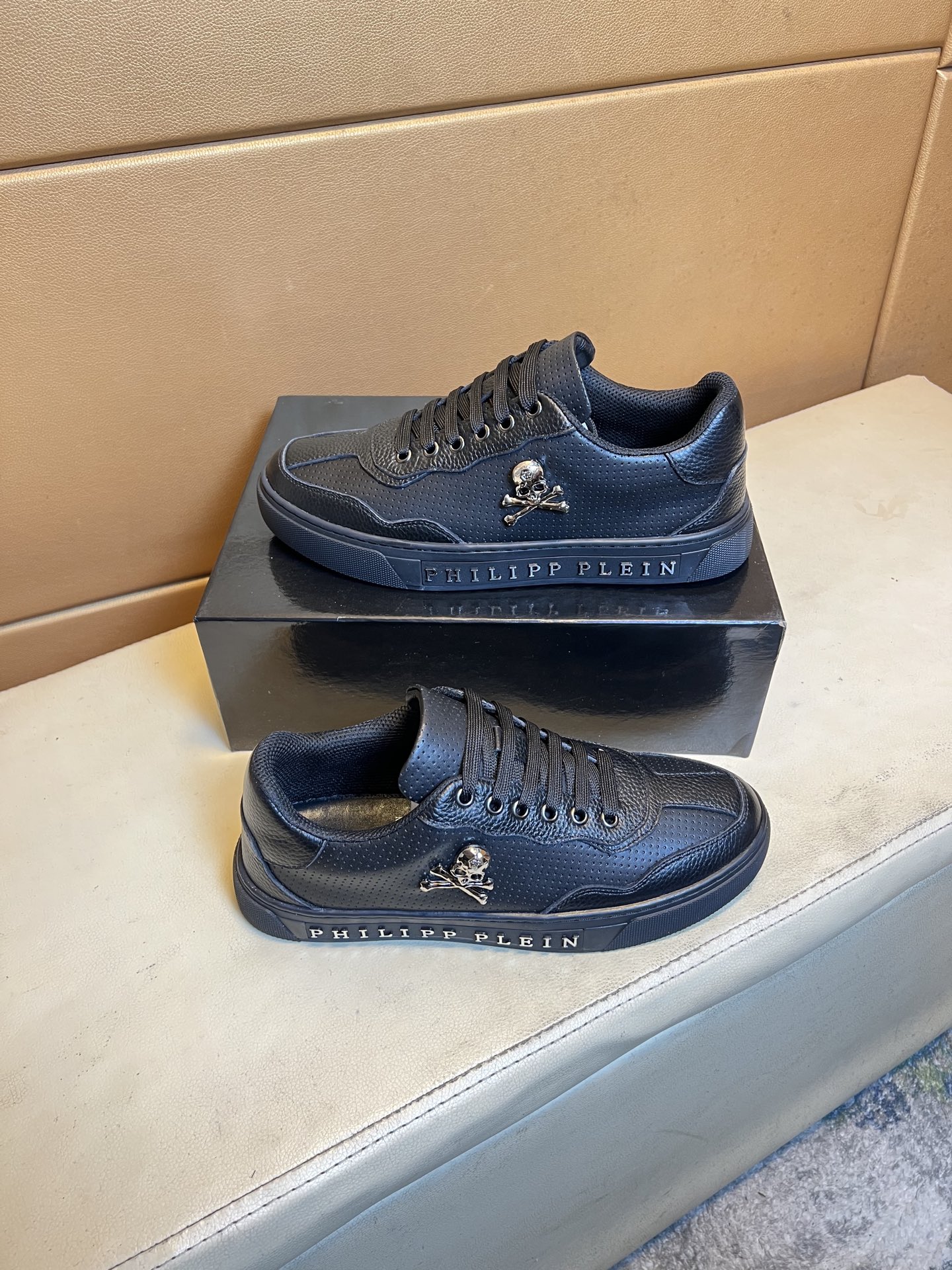 这款鞋子是AAAAA 1:1 质量 (非常棒). 使用了和原版一模一样的材料. 商标部分也保持了和菲利普·普林/Philipp Plein一样. 图片拍摄是实物鞋子拍摄, 您所收到的实物保证和我们图片一模一样.