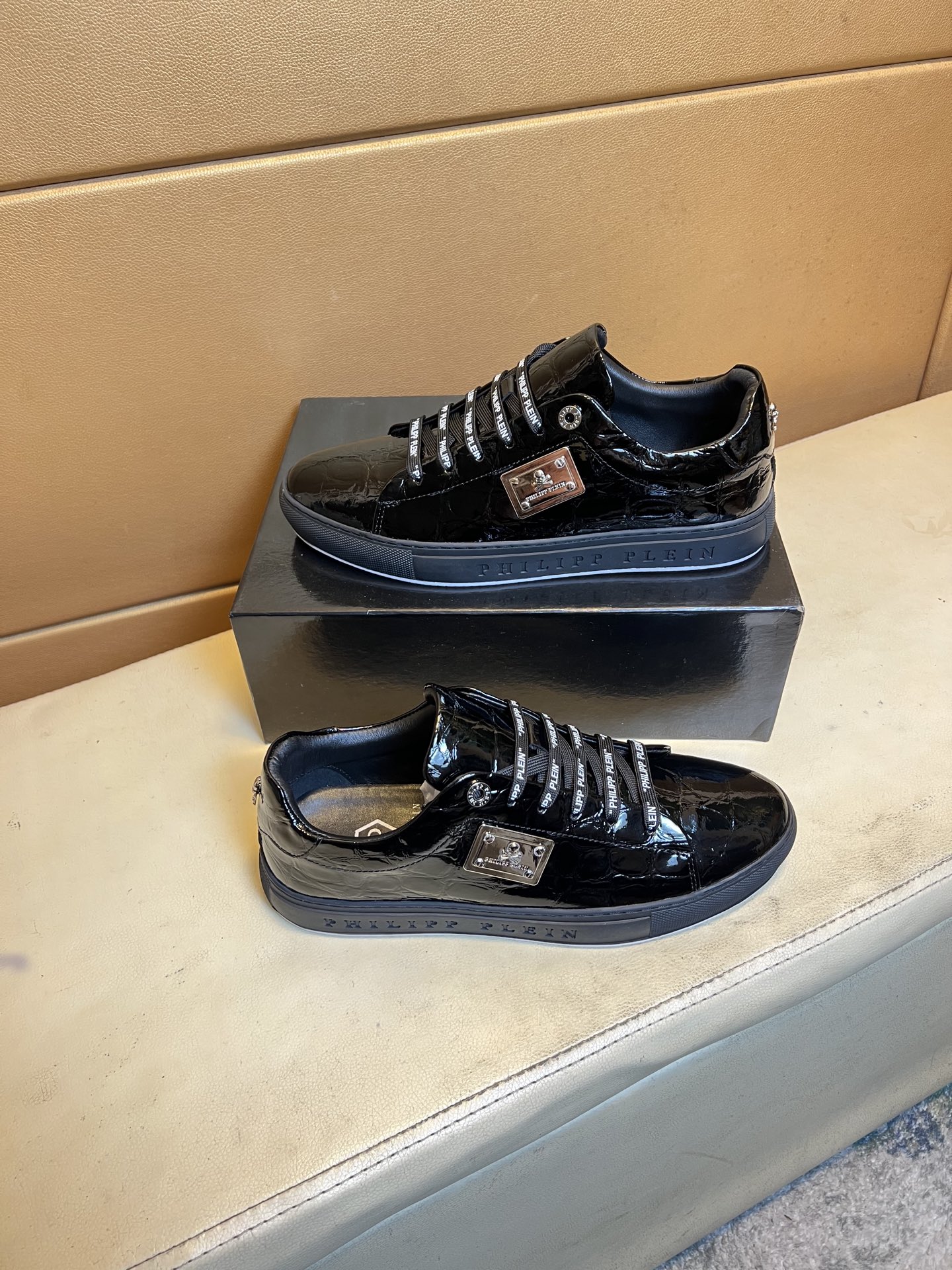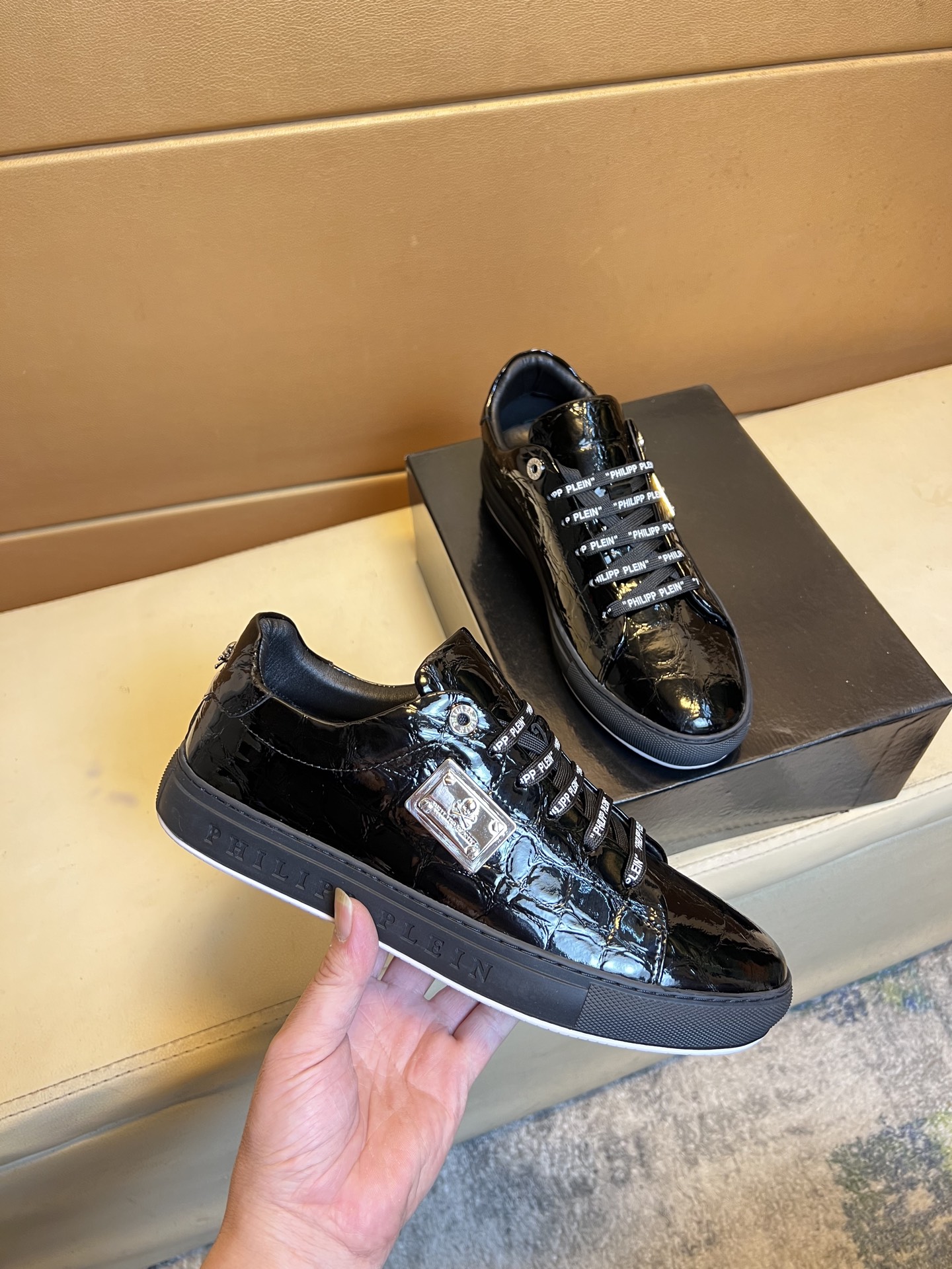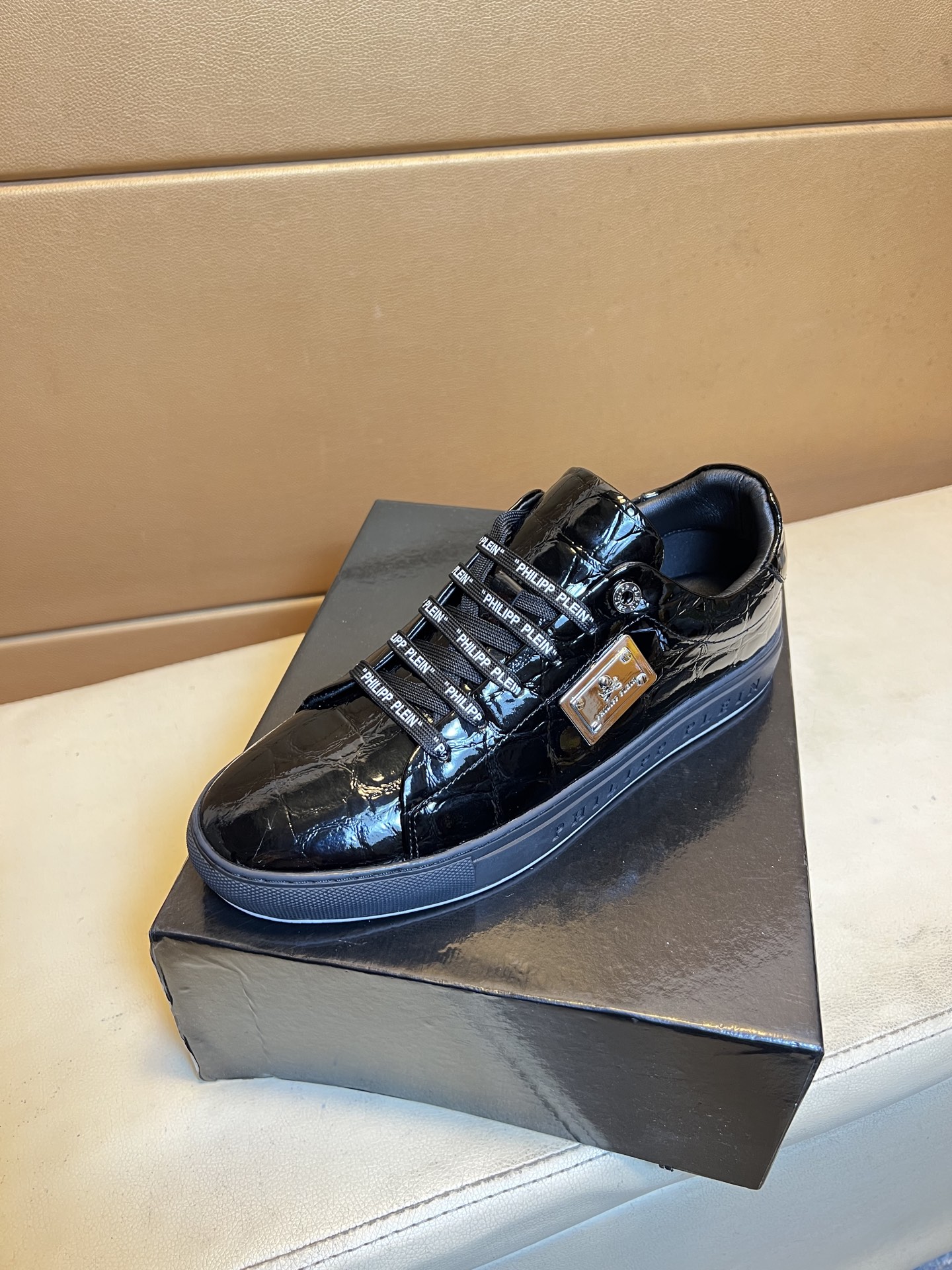 这款鞋子是AAAAA 1:1 质量 (非常棒). 使用了和原版一模一样的材料. 商标部分也保持了和菲利普·普林/Philipp Plein一样. 图片拍摄是实物鞋子拍摄, 您所收到的实物保证和我们图片一模一样.