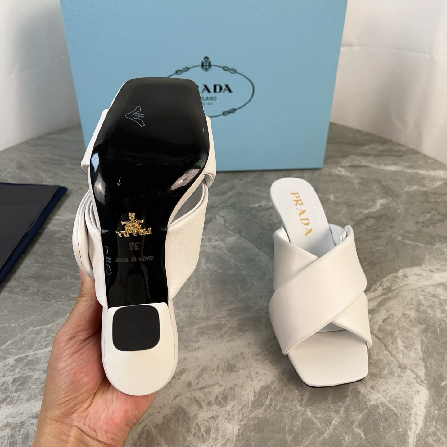 这款鞋子是AAAAA 1:1 质量 (非常棒). 使用了和原版一模一样的材料. 商标部分也保持了和普拉达/Prada一样. 图片拍摄是实物鞋子拍摄, 您所收到的实物保证和我们图片一模一样.