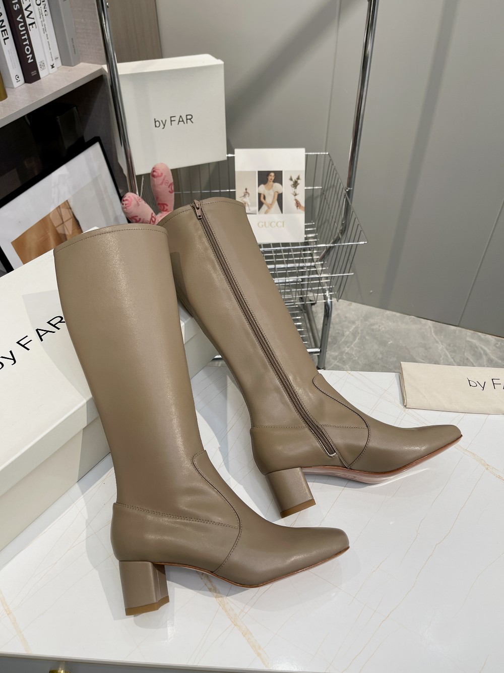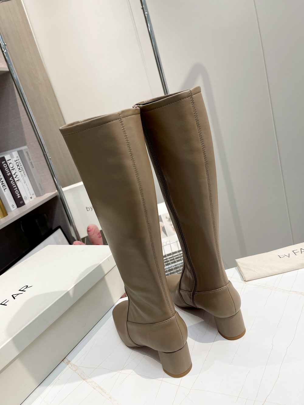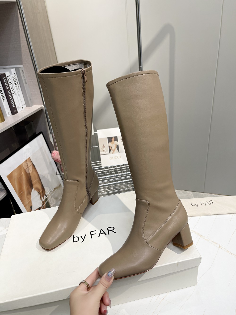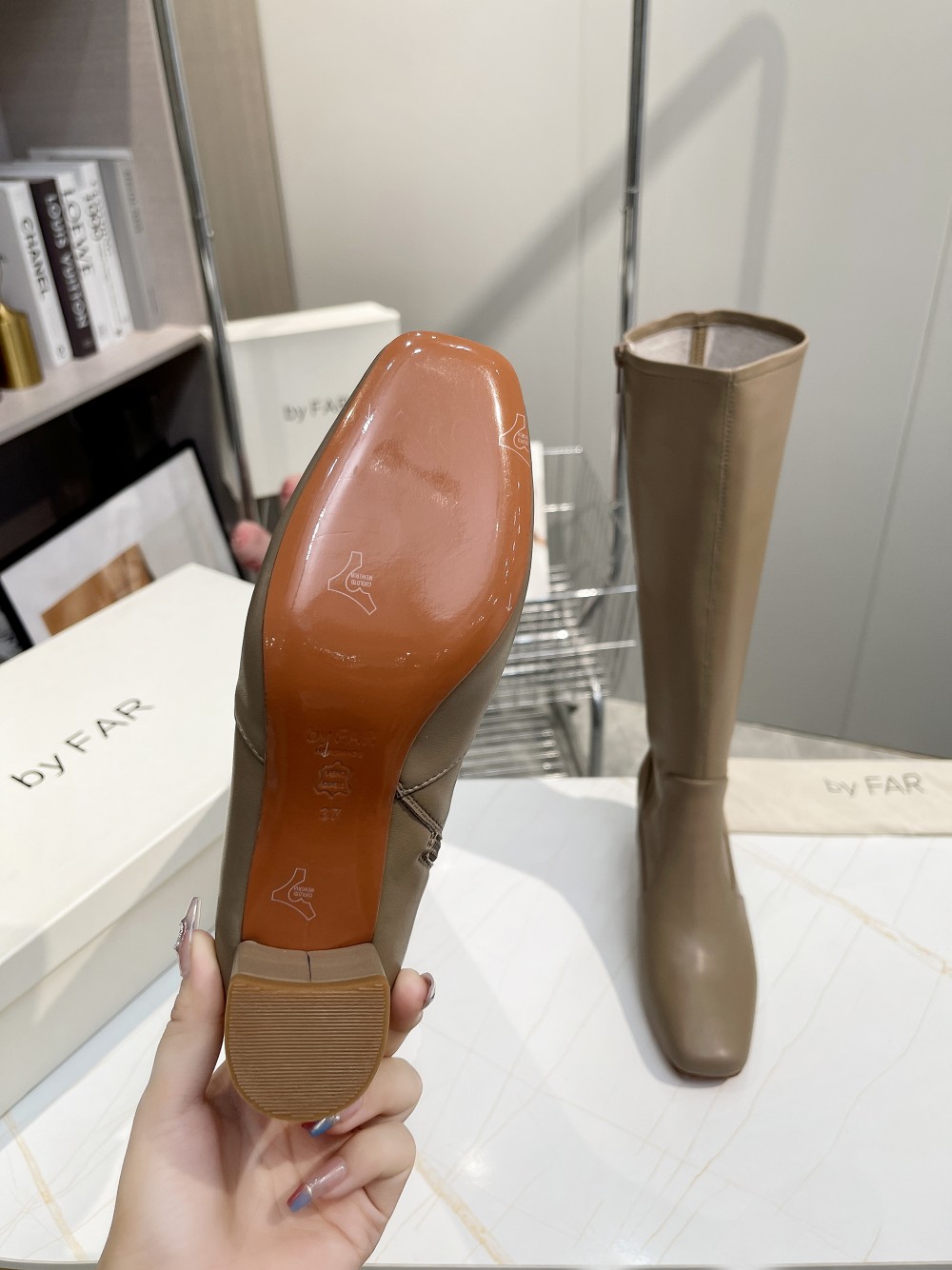 这款鞋子是AAAAA 1:1 质量 (非常棒). 使用了和原版一模一样的材料. 商标部分也保持了和BY FAR一样. 图片拍摄是实物鞋子拍摄, 您所收到的实物保证和我们图片一模一样.