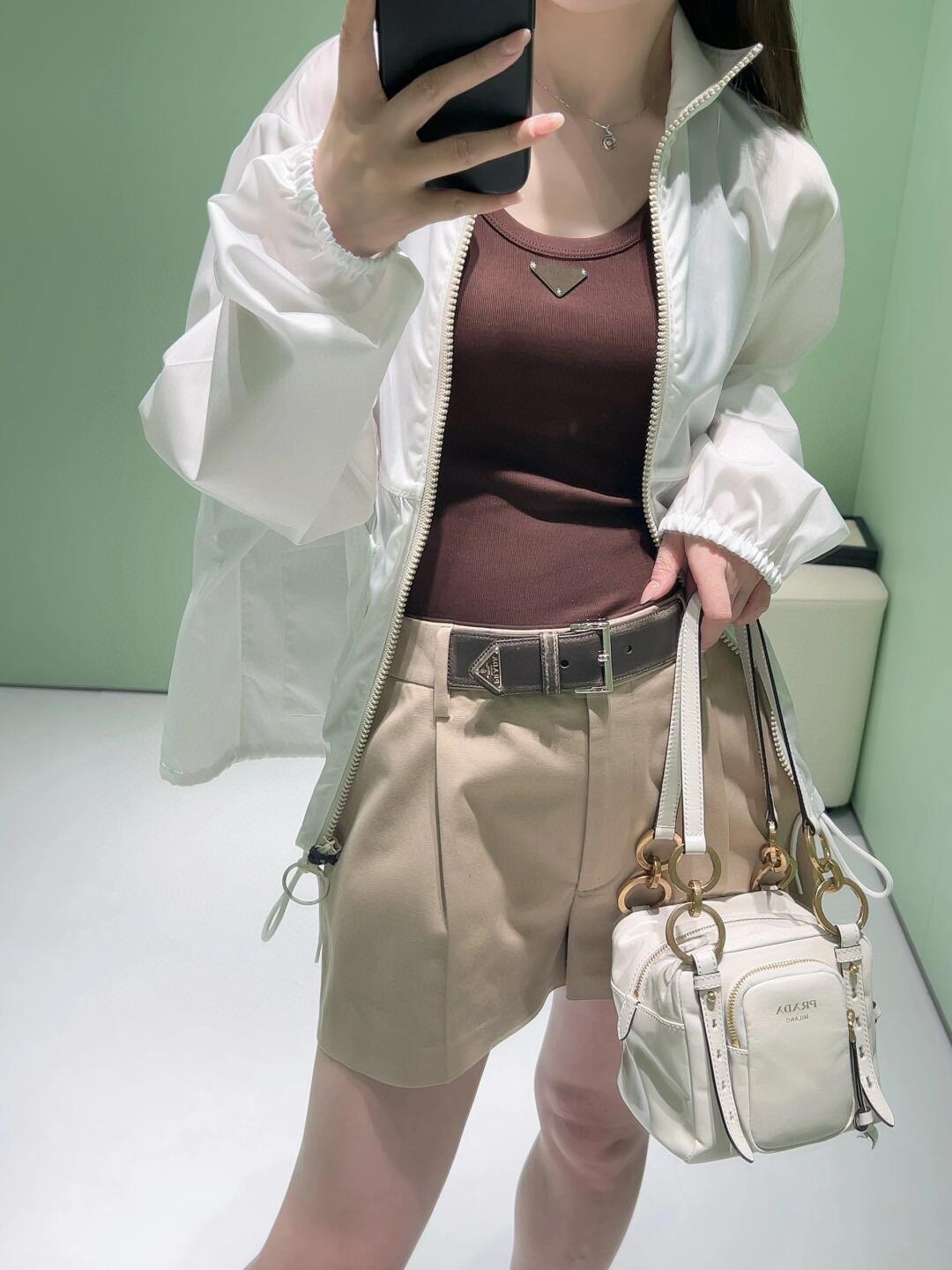 这款衣服是AAAAA 1:1 质量 (非常棒). 使用了和原版一模一样的材料. 商标部分也保持了和普拉达/Prada一样. 图片拍摄是实物衣服拍摄, 您所收到的实物保证和我们图片一模一样.
