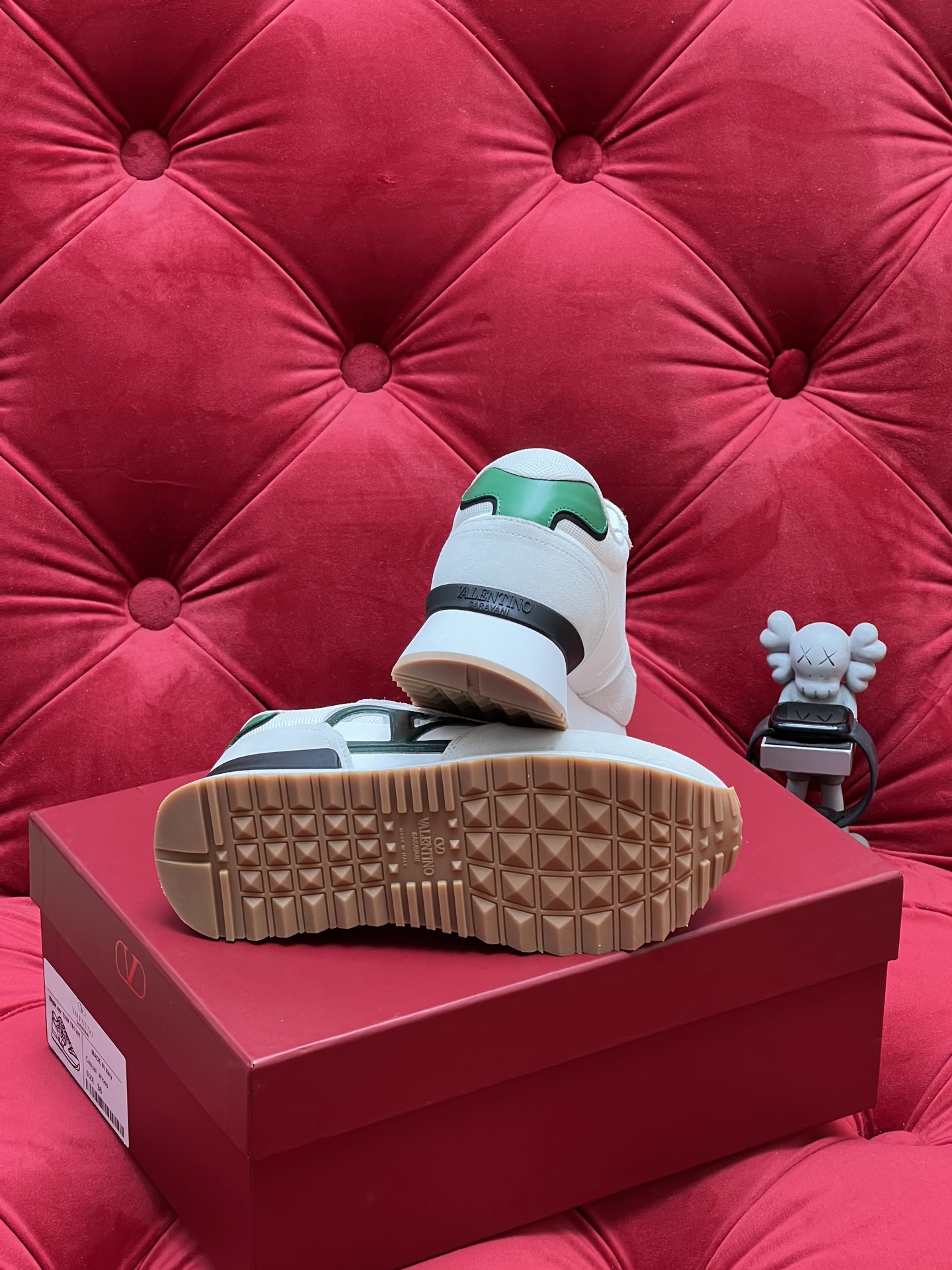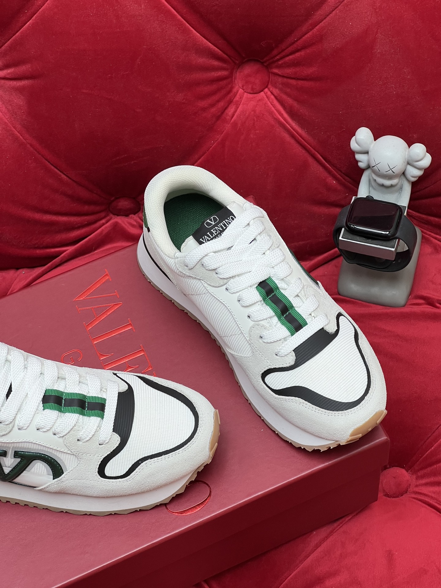这款鞋子是AAAAA 1:1 质量 (非常棒). 使用了和原版一模一样的材料. 商标部分也保持了和华伦天奴/Valentino一样. 图片拍摄是实物鞋子拍摄, 您所收到的实物保证和我们图片一模一样.