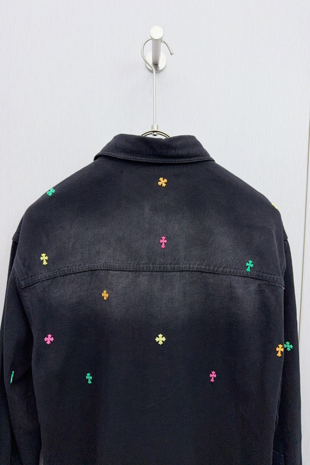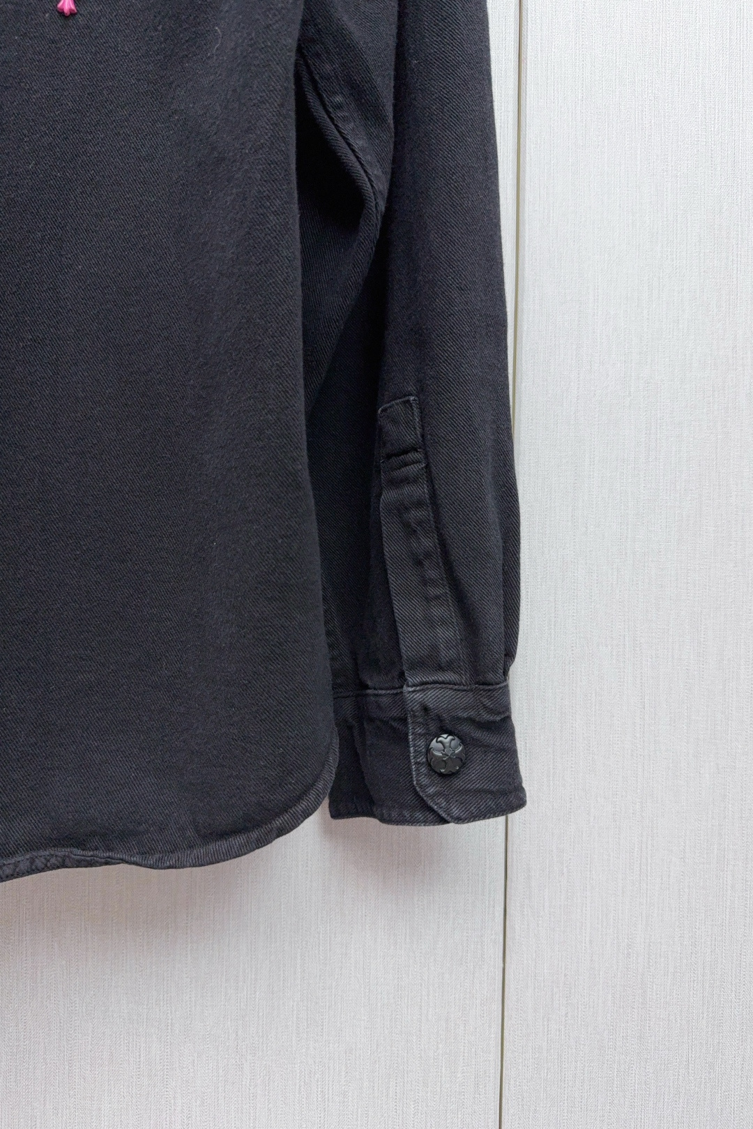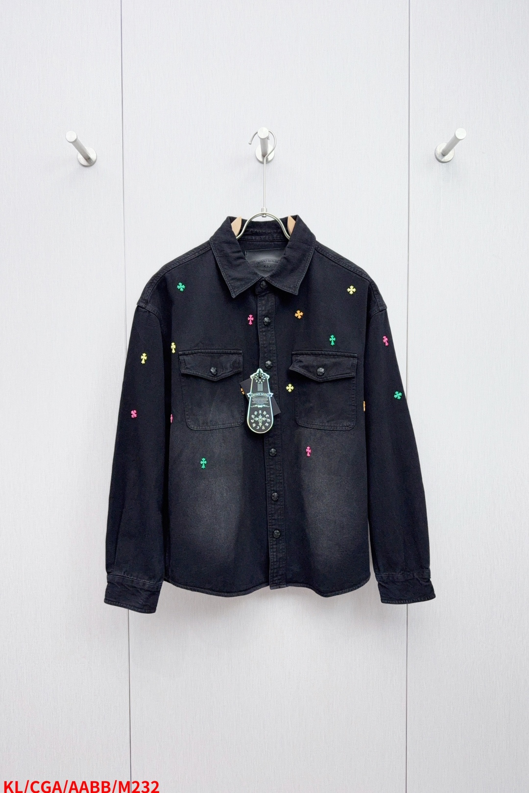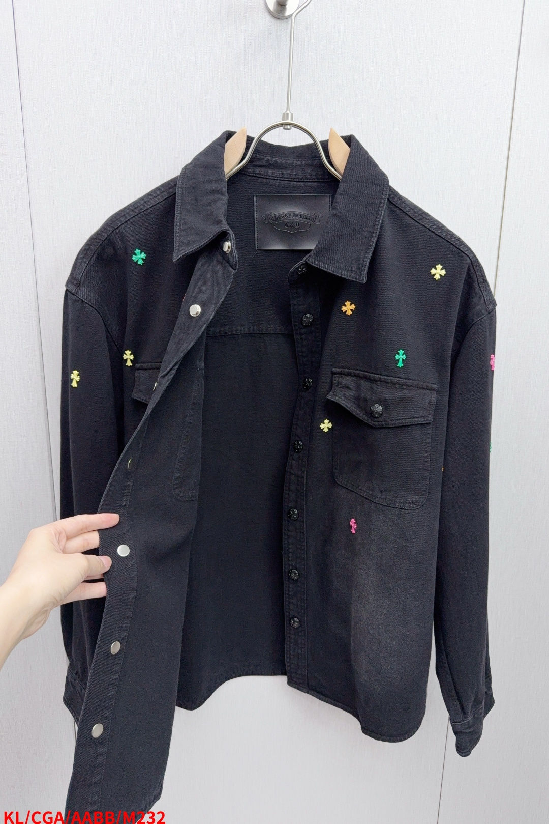 这款衣服是AAAAA 1:1 质量 (非常棒). 使用了和原版一模一样的材料. 商标部分也保持了和克罗心/Chrome Hearts一样. 图片拍摄是实物衣服拍摄, 您所收到的实物保证和我们图片一模一样.