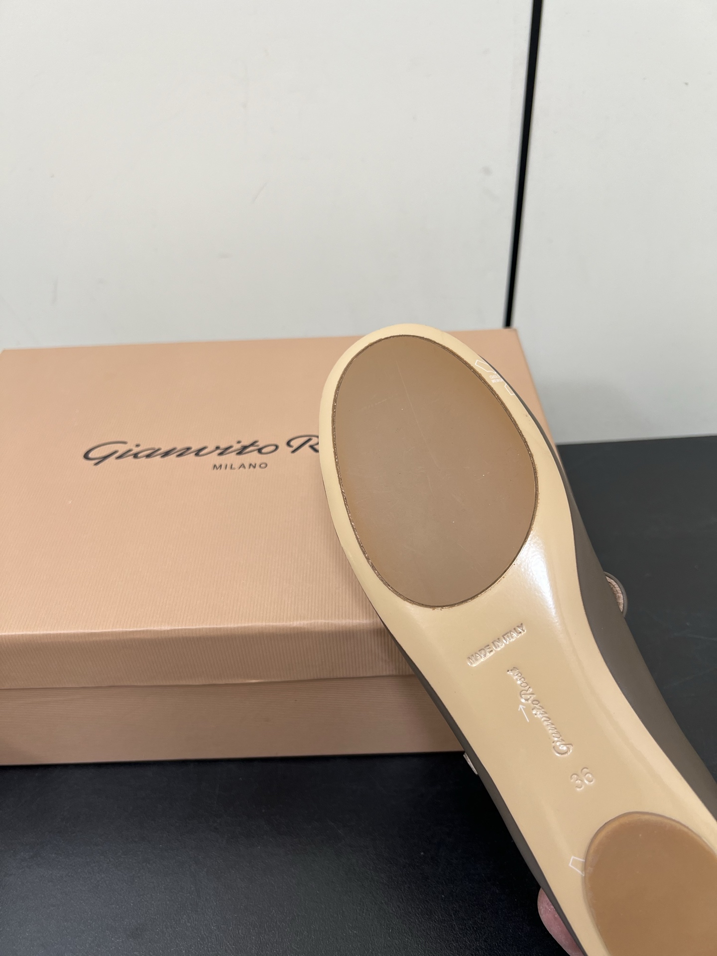 这款鞋子是AAAAA 1:1 质量 (非常棒). 使用了和原版一模一样的材料. 商标部分也保持了和Gianvito Rossi一样. 图片拍摄是实物鞋子拍摄, 您所收到的实物保证和我们图片一模一样.