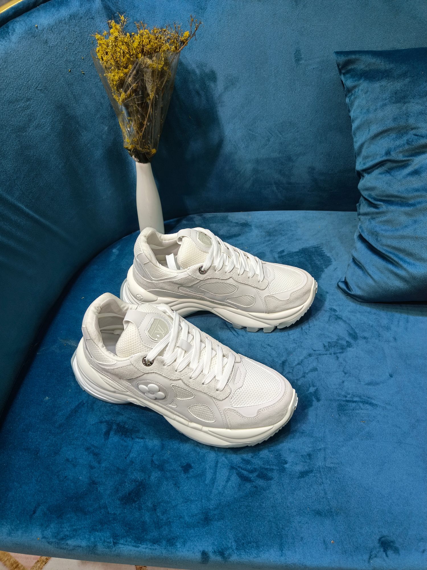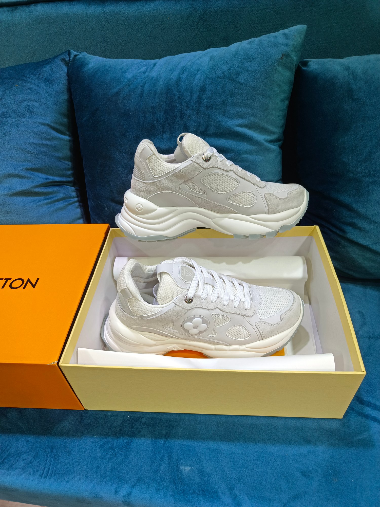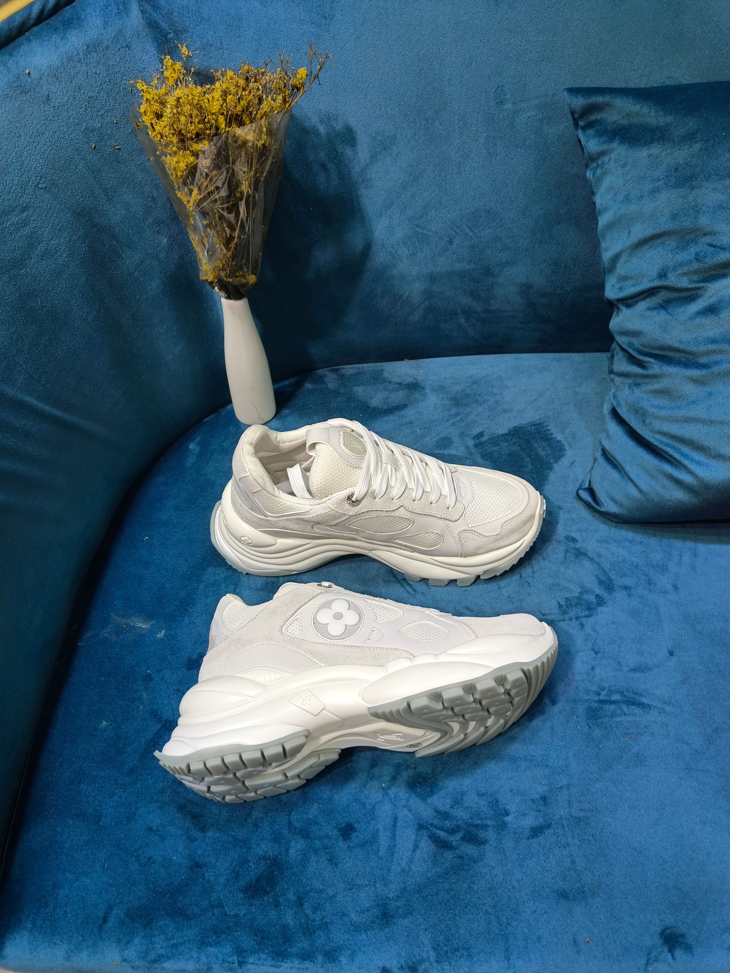 这款鞋子是AAAAA 1:1 质量 (非常棒). 使用了和原版一模一样的材料. 商标部分也保持了和路易威登/Louis Vuitton一样. 图片拍摄是实物鞋子拍摄, 您所收到的实物保证和我们图片一模一样.