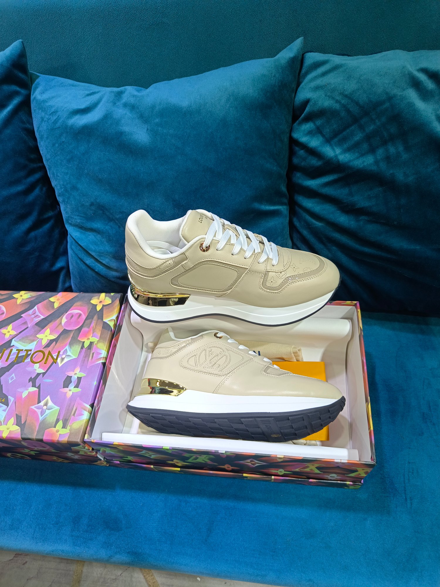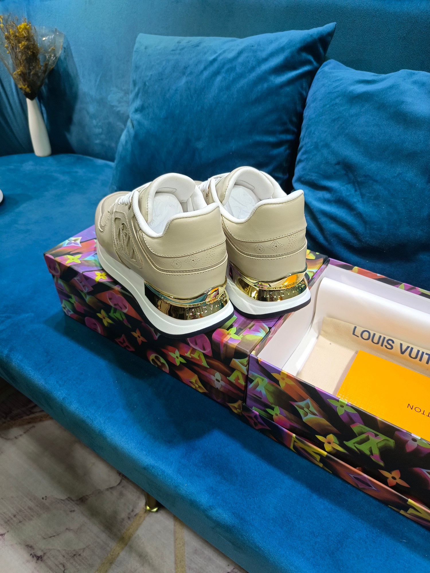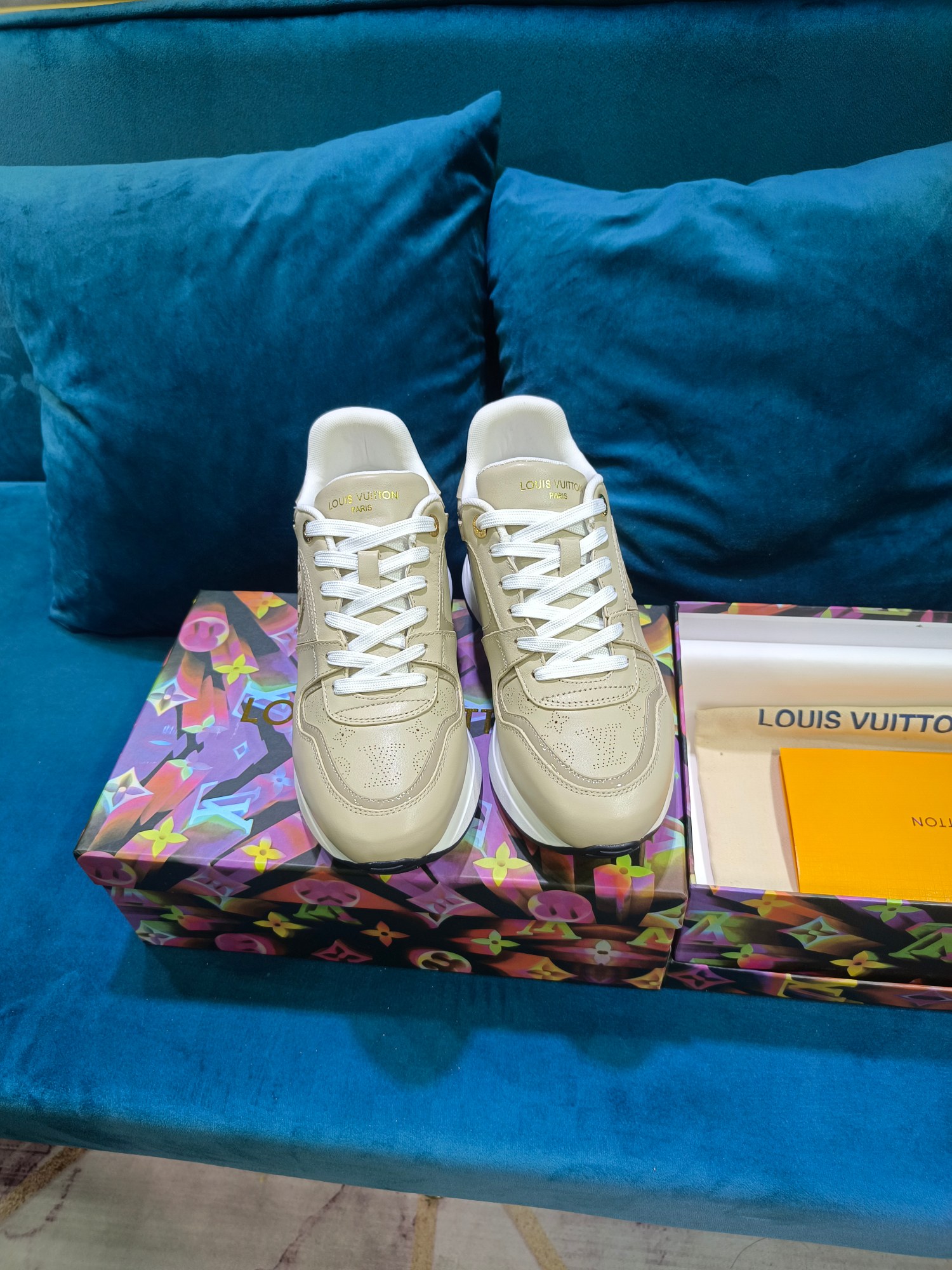 这款鞋子是AAAAA 1:1 质量 (非常棒). 使用了和原版一模一样的材料. 商标部分也保持了和路易威登/Louis Vuitton一样. 图片拍摄是实物鞋子拍摄, 您所收到的实物保证和我们图片一模一样.