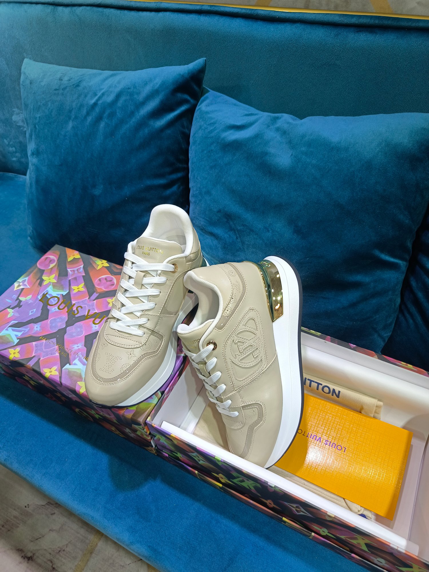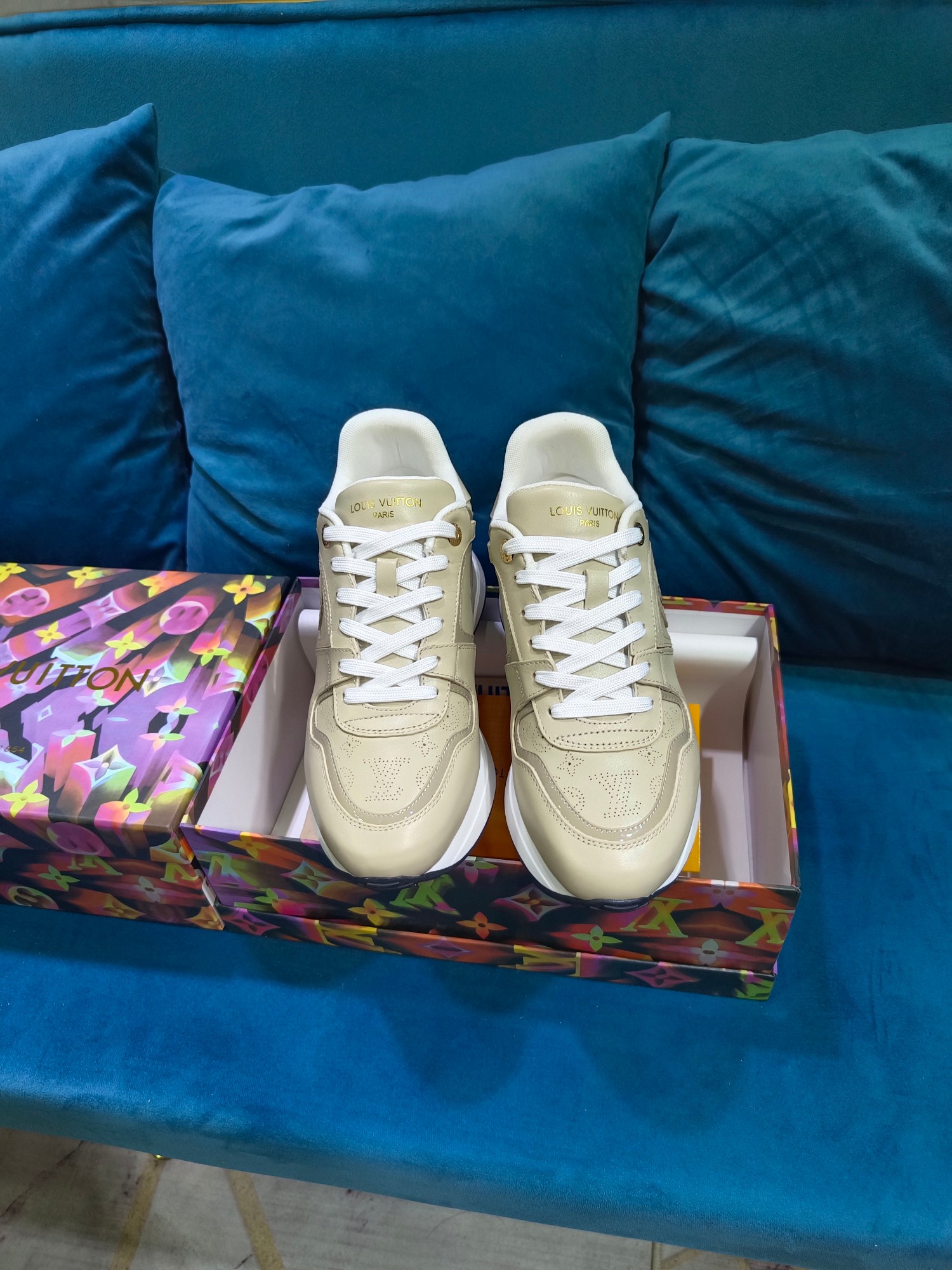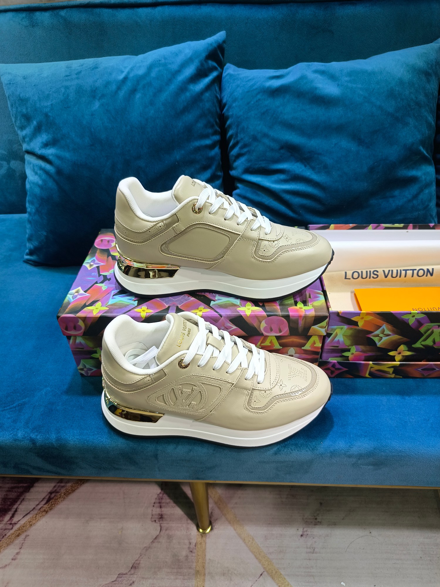 这款鞋子是AAAAA 1:1 质量 (非常棒). 使用了和原版一模一样的材料. 商标部分也保持了和路易威登/Louis Vuitton一样. 图片拍摄是实物鞋子拍摄, 您所收到的实物保证和我们图片一模一样.