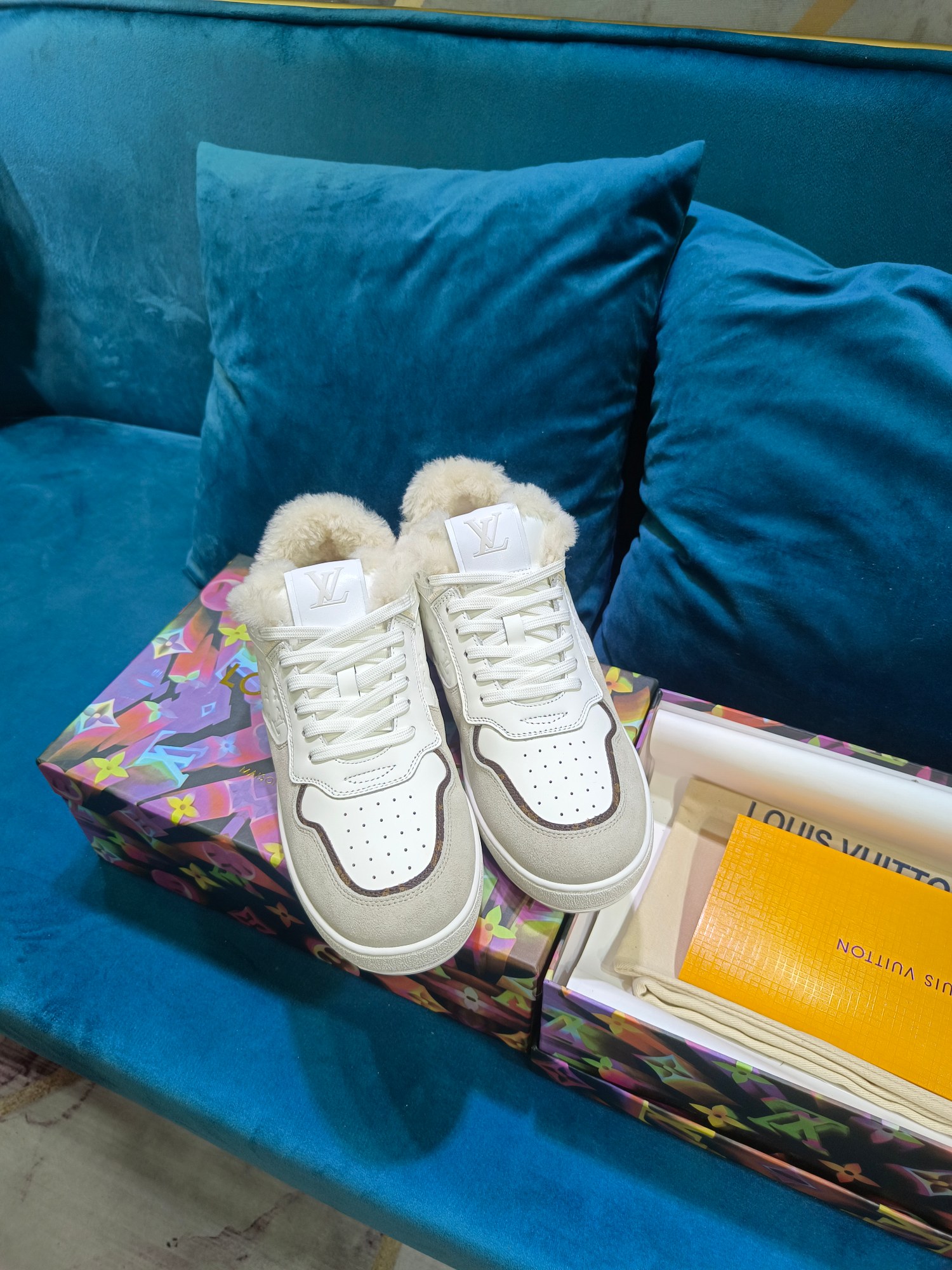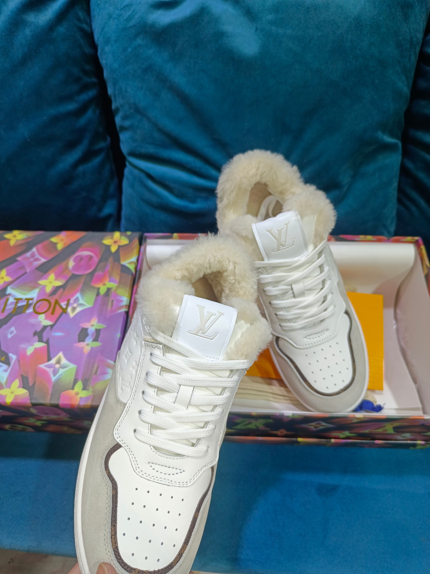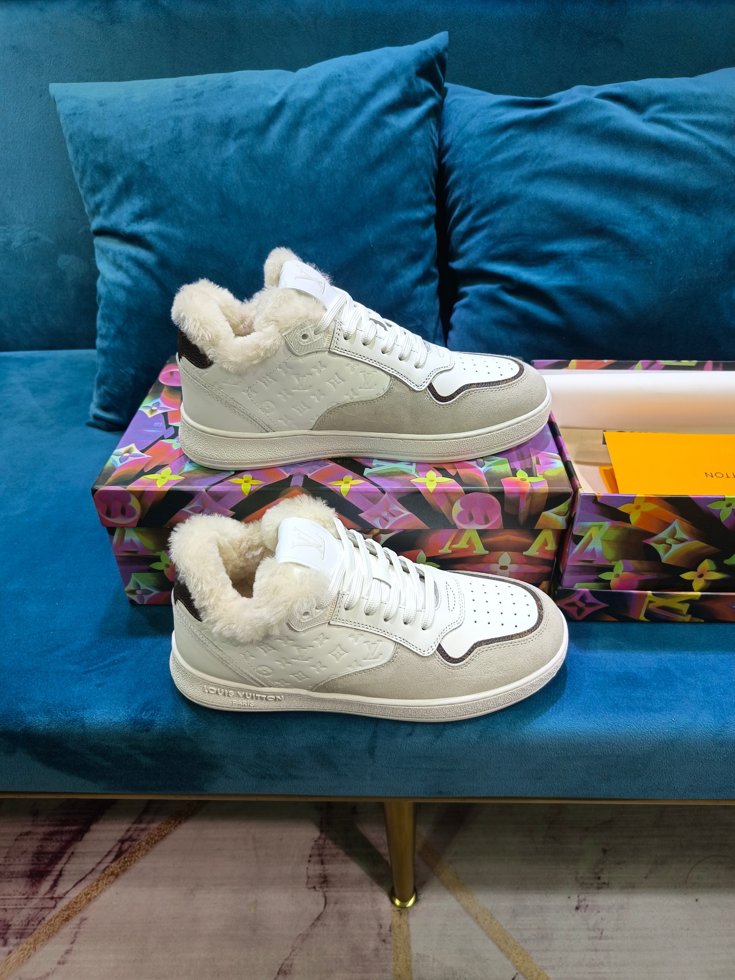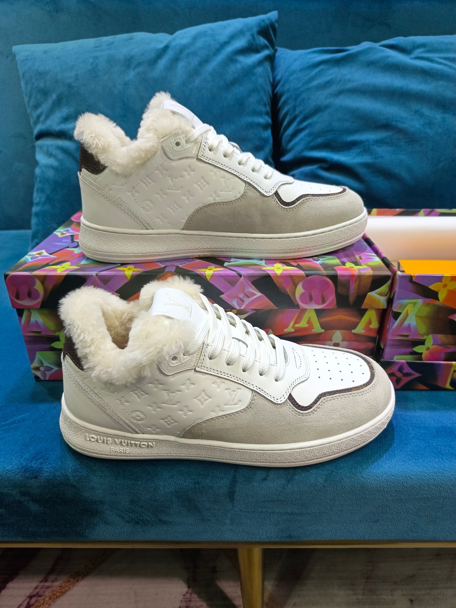 这款鞋子是AAAAA 1:1 质量 (非常棒). 使用了和原版一模一样的材料. 商标部分也保持了和路易威登/Louis Vuitton一样. 图片拍摄是实物鞋子拍摄, 您所收到的实物保证和我们图片一模一样.