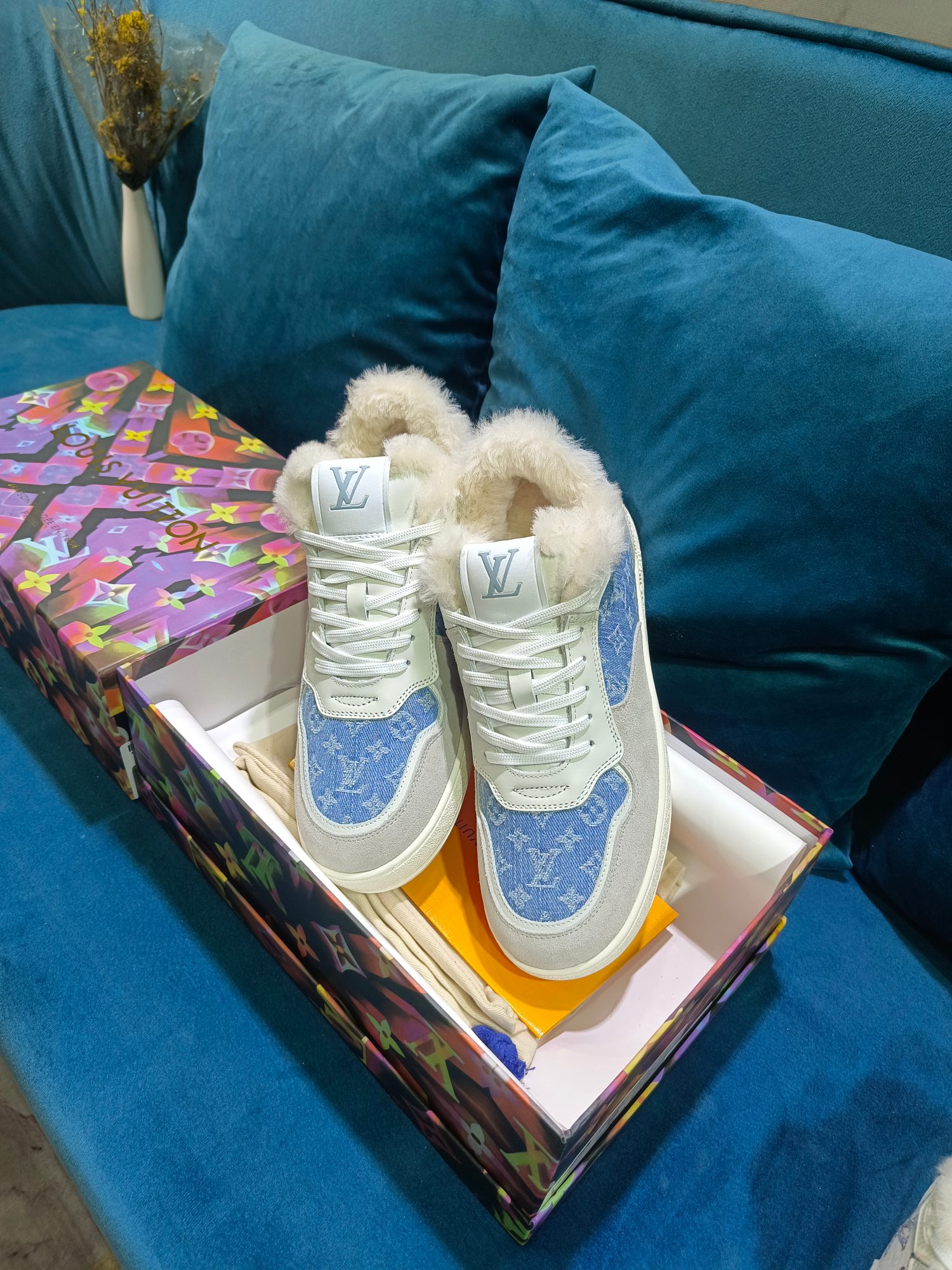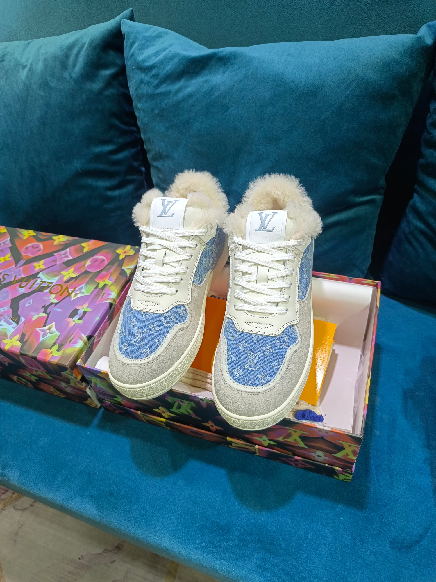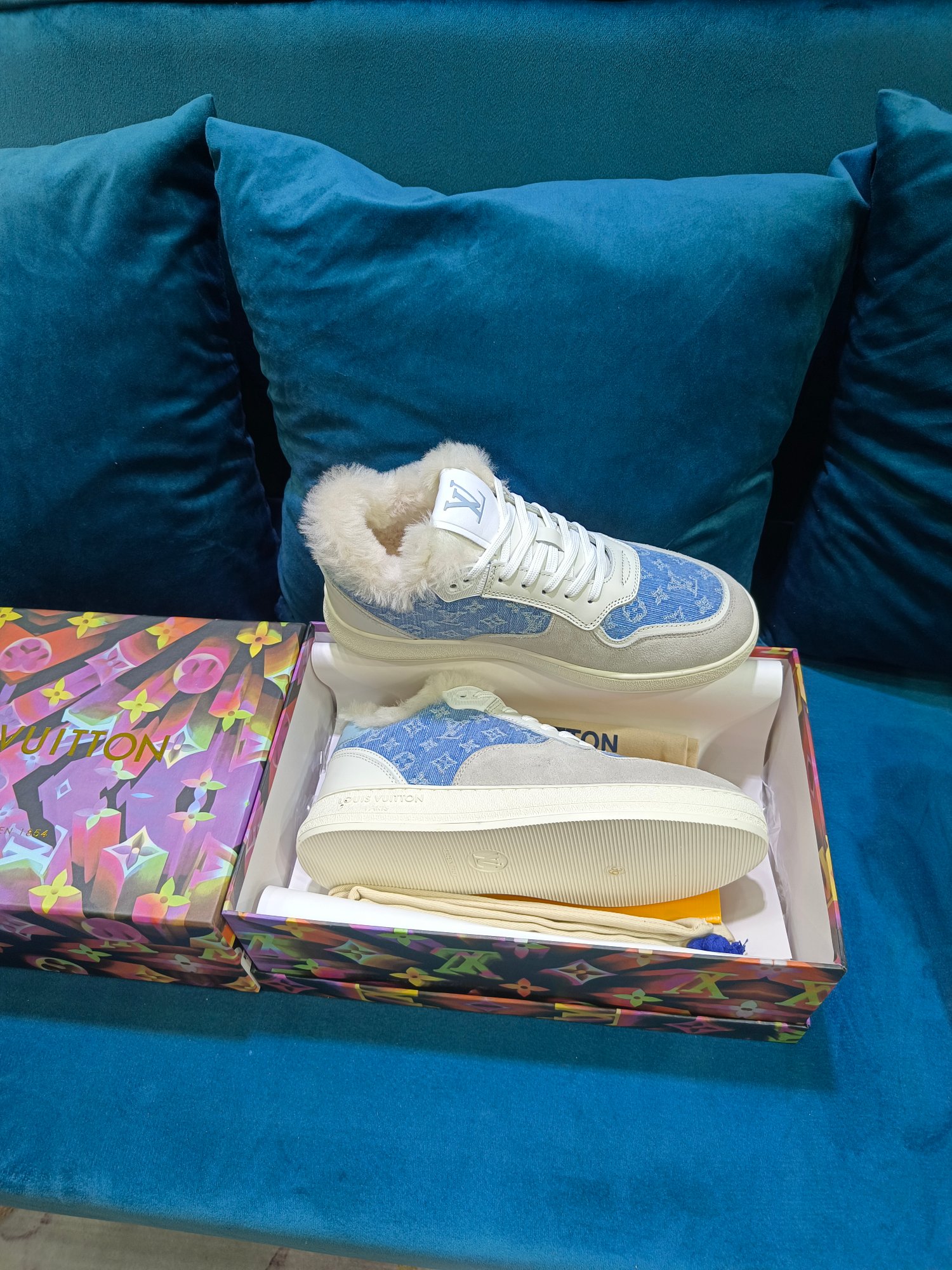 这款鞋子是AAAAA 1:1 质量 (非常棒). 使用了和原版一模一样的材料. 商标部分也保持了和路易威登/Louis Vuitton一样. 图片拍摄是实物鞋子拍摄, 您所收到的实物保证和我们图片一模一样.