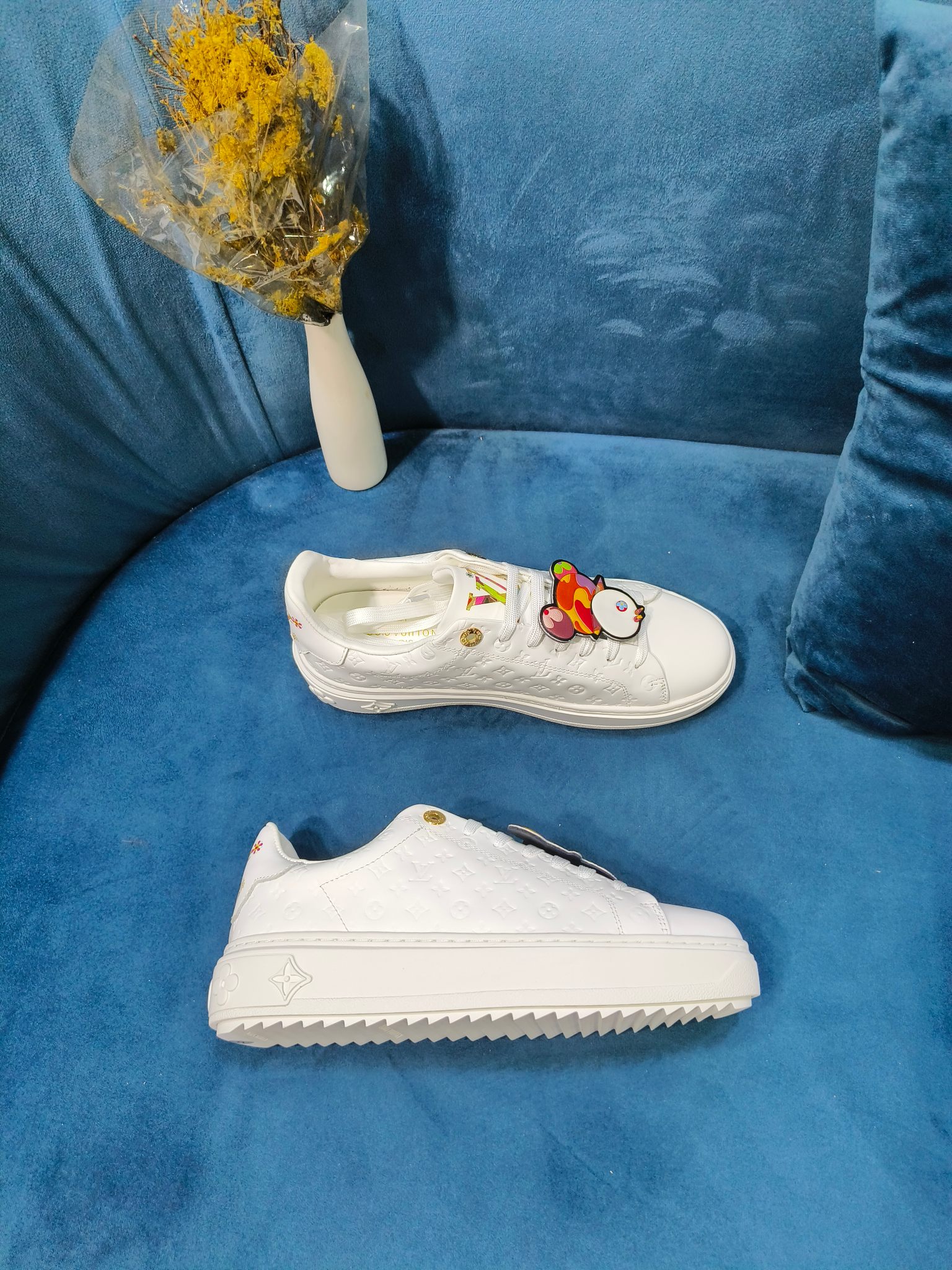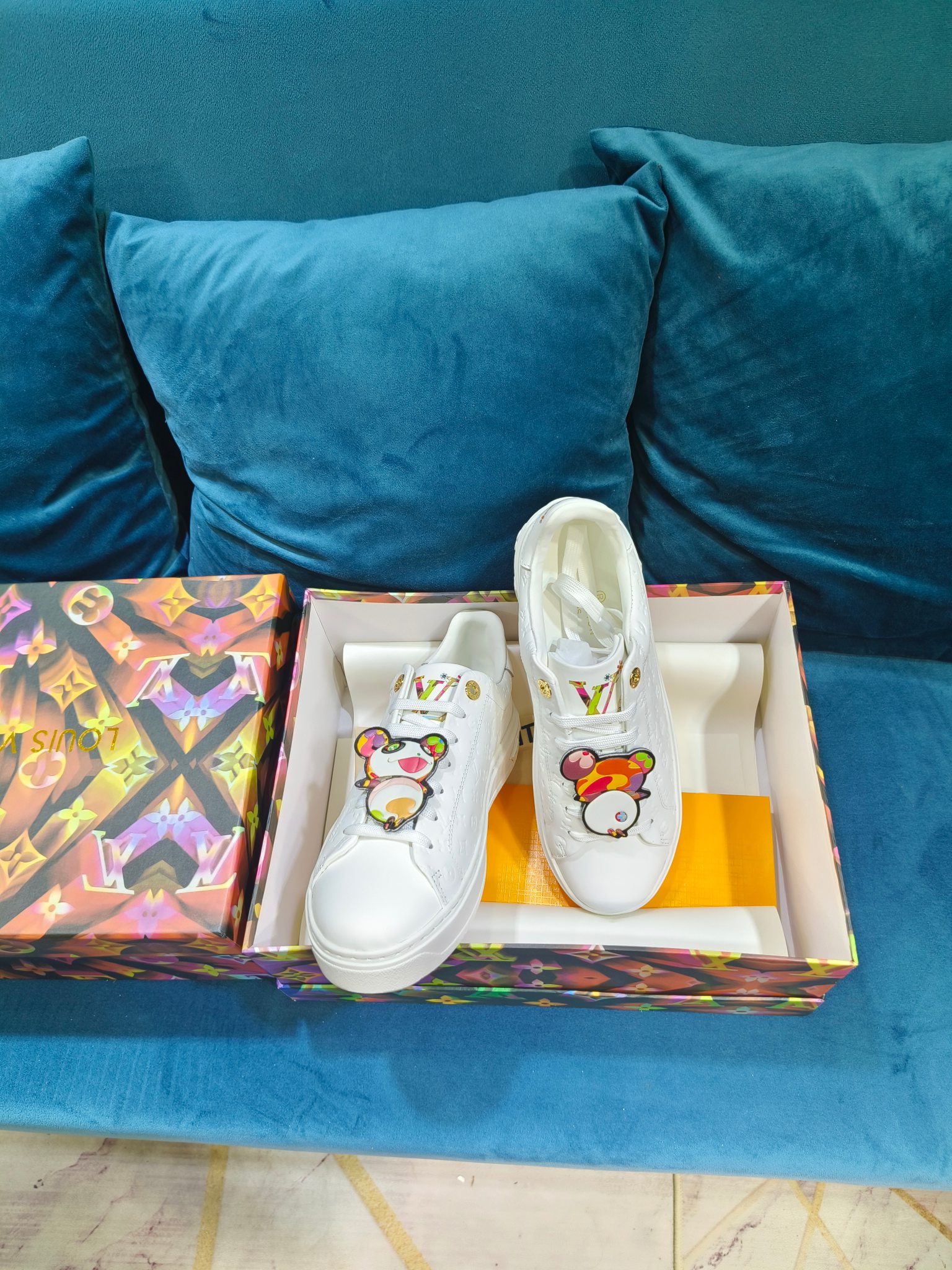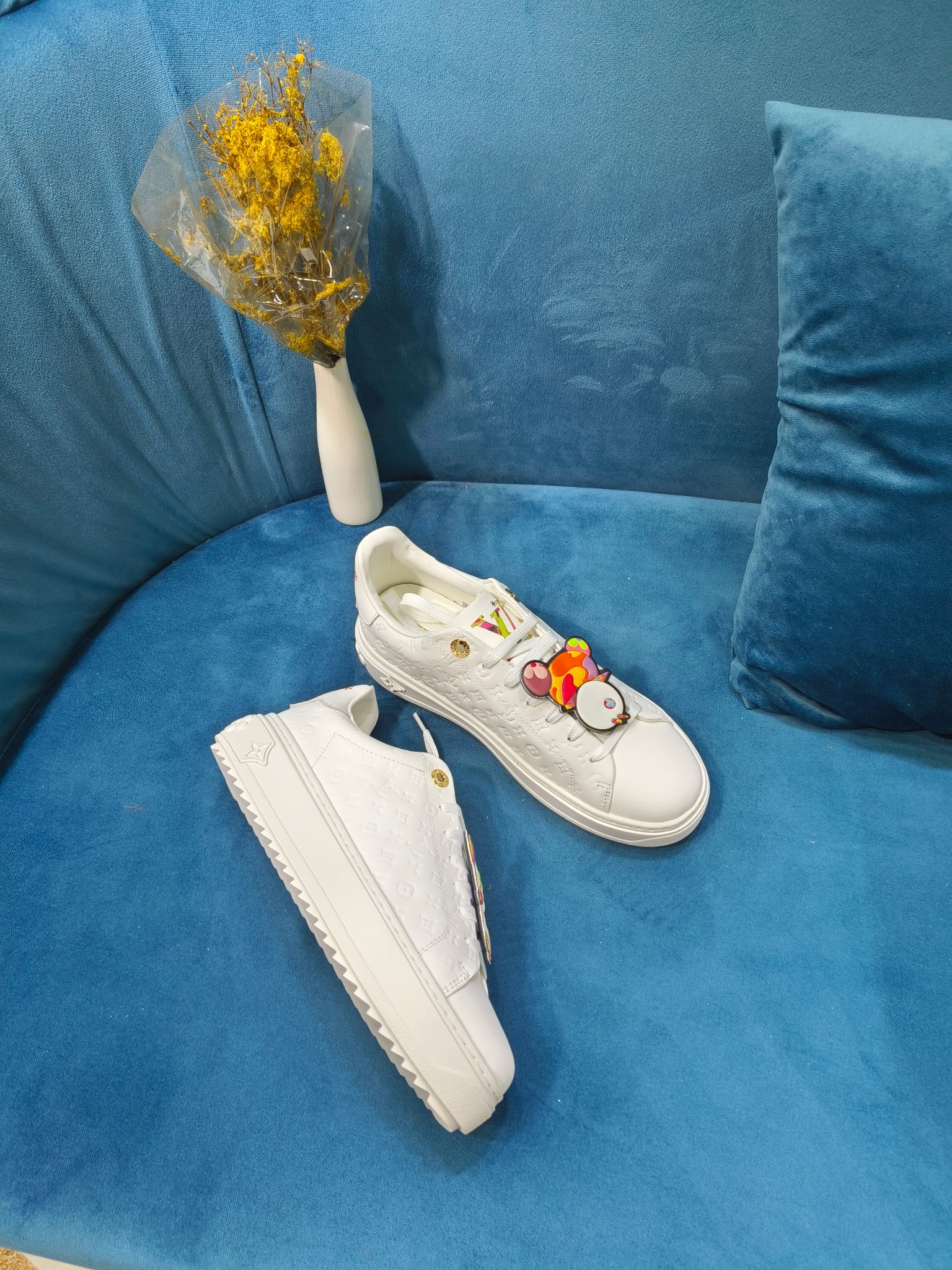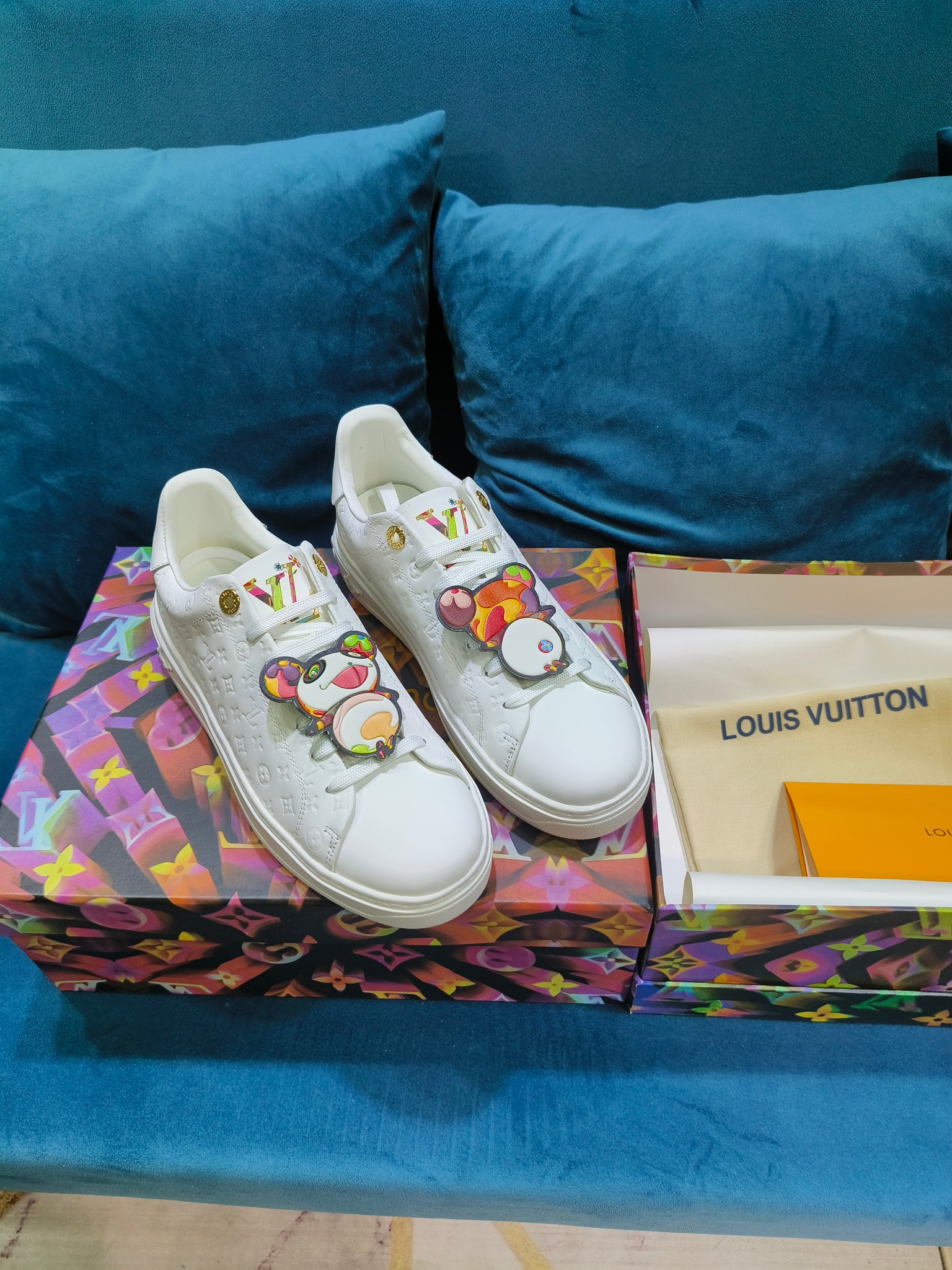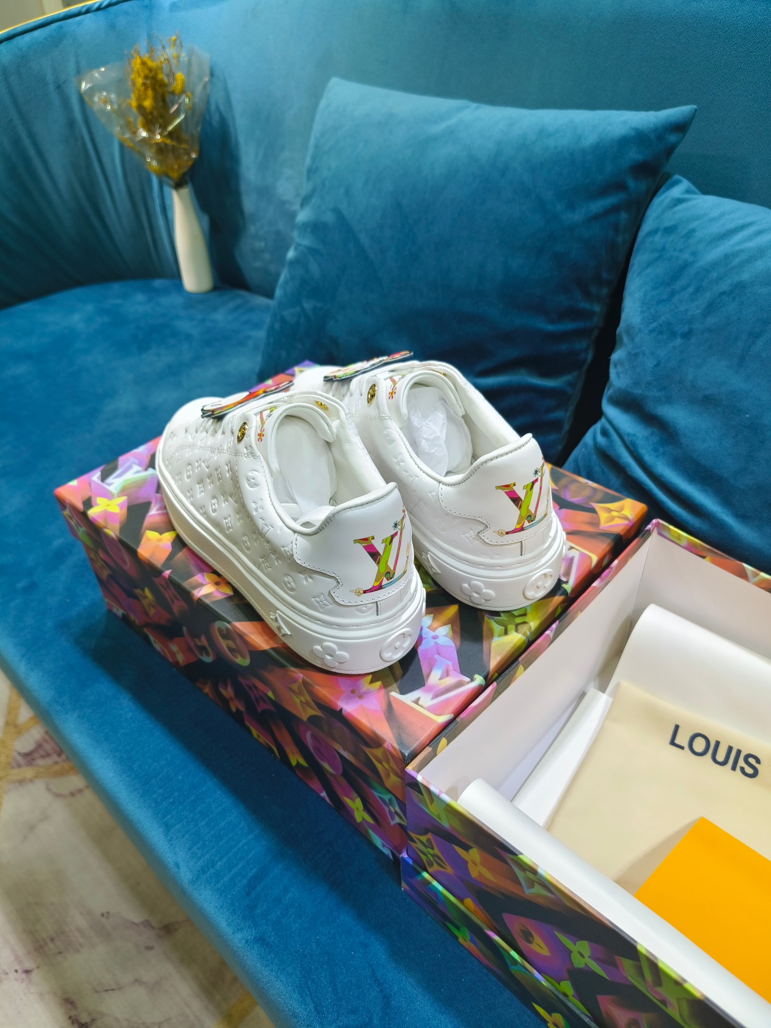 这款鞋子是AAAAA 1:1 质量 (非常棒). 使用了和原版一模一样的材料. 商标部分也保持了和路易威登/Louis Vuitton一样. 图片拍摄是实物鞋子拍摄, 您所收到的实物保证和我们图片一模一样.