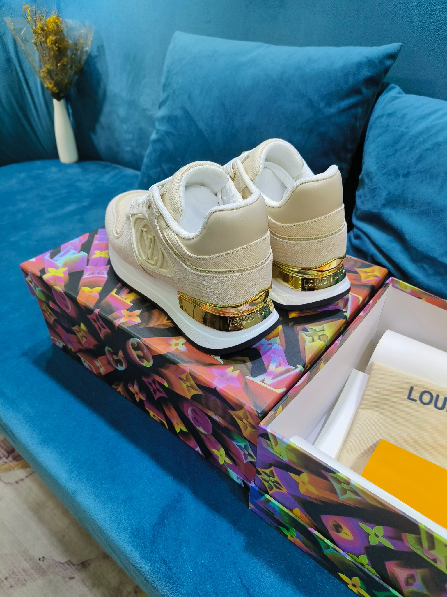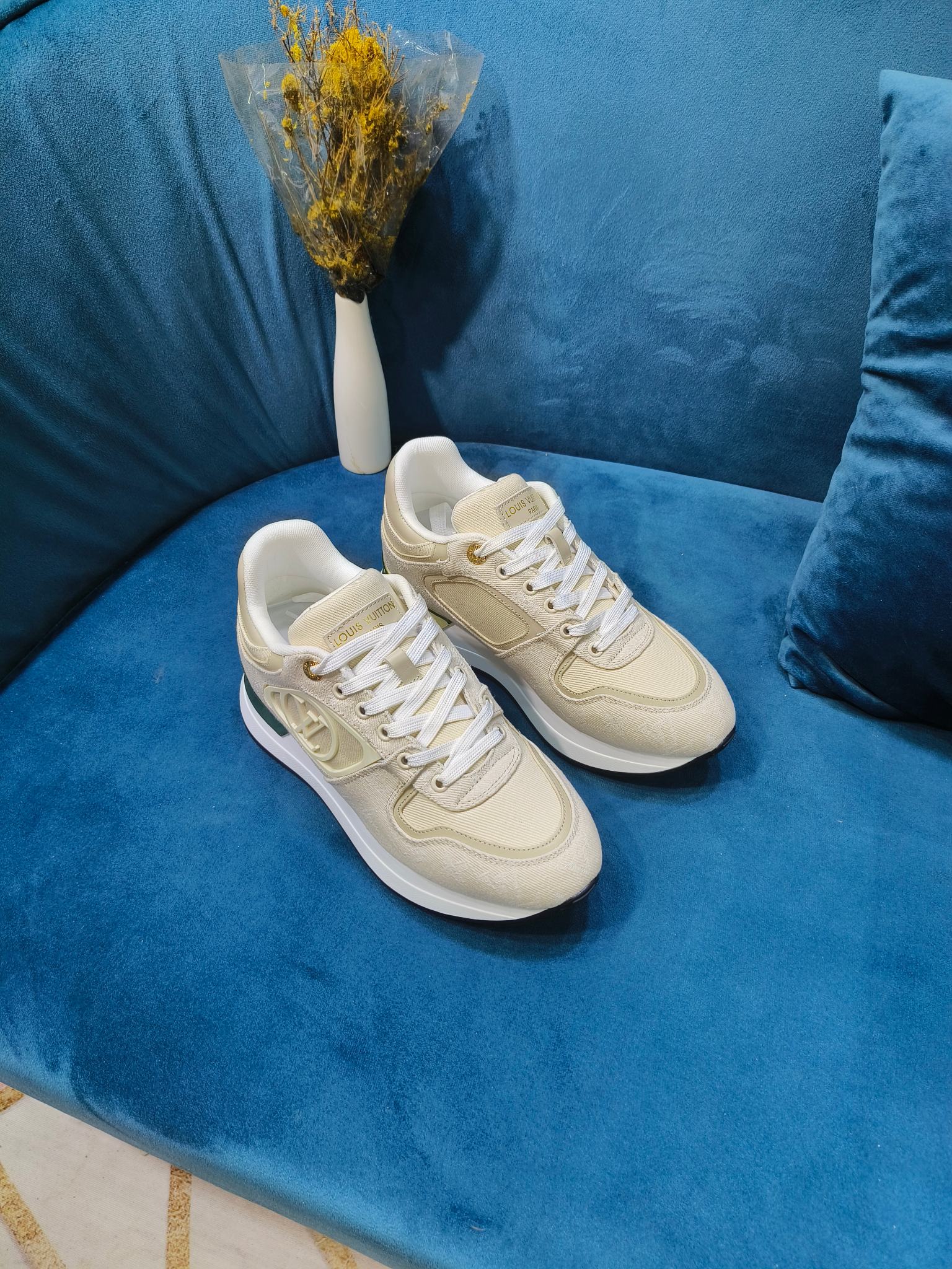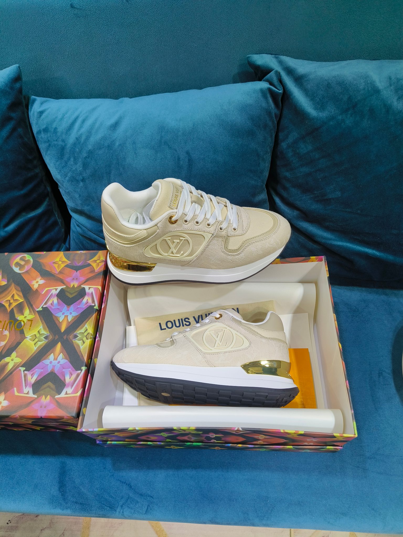 这款鞋子是AAAAA 1:1 质量 (非常棒). 使用了和原版一模一样的材料. 商标部分也保持了和路易威登/Louis Vuitton一样. 图片拍摄是实物鞋子拍摄, 您所收到的实物保证和我们图片一模一样.