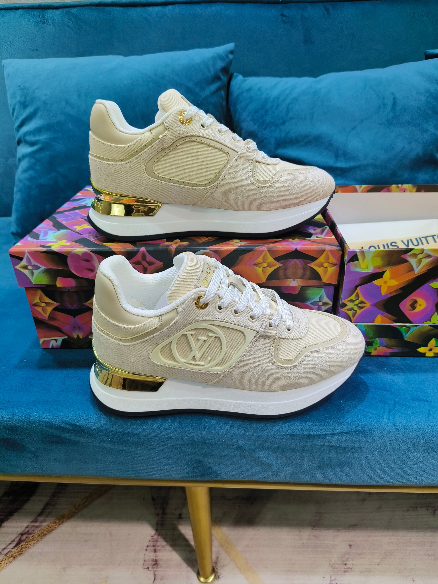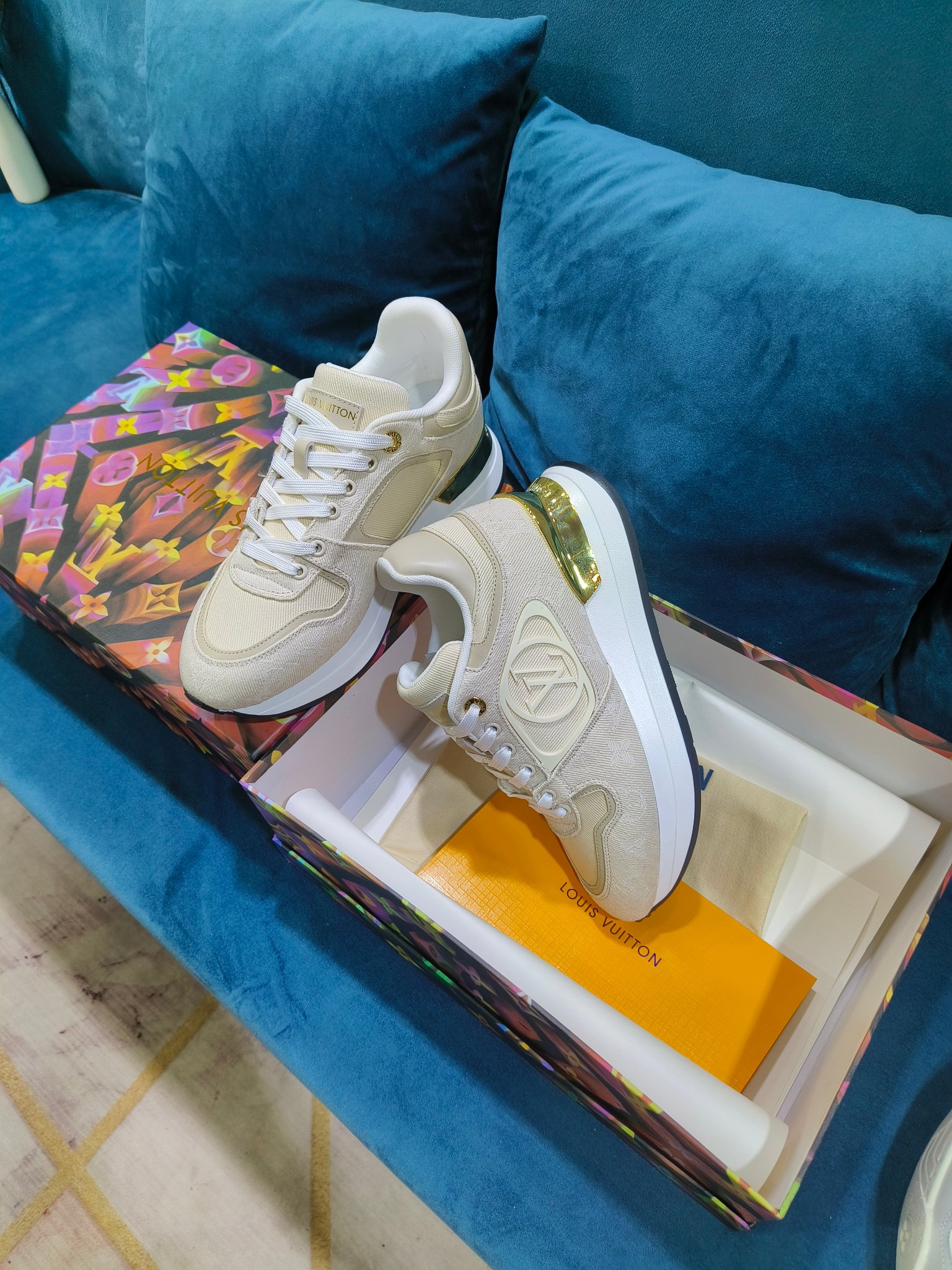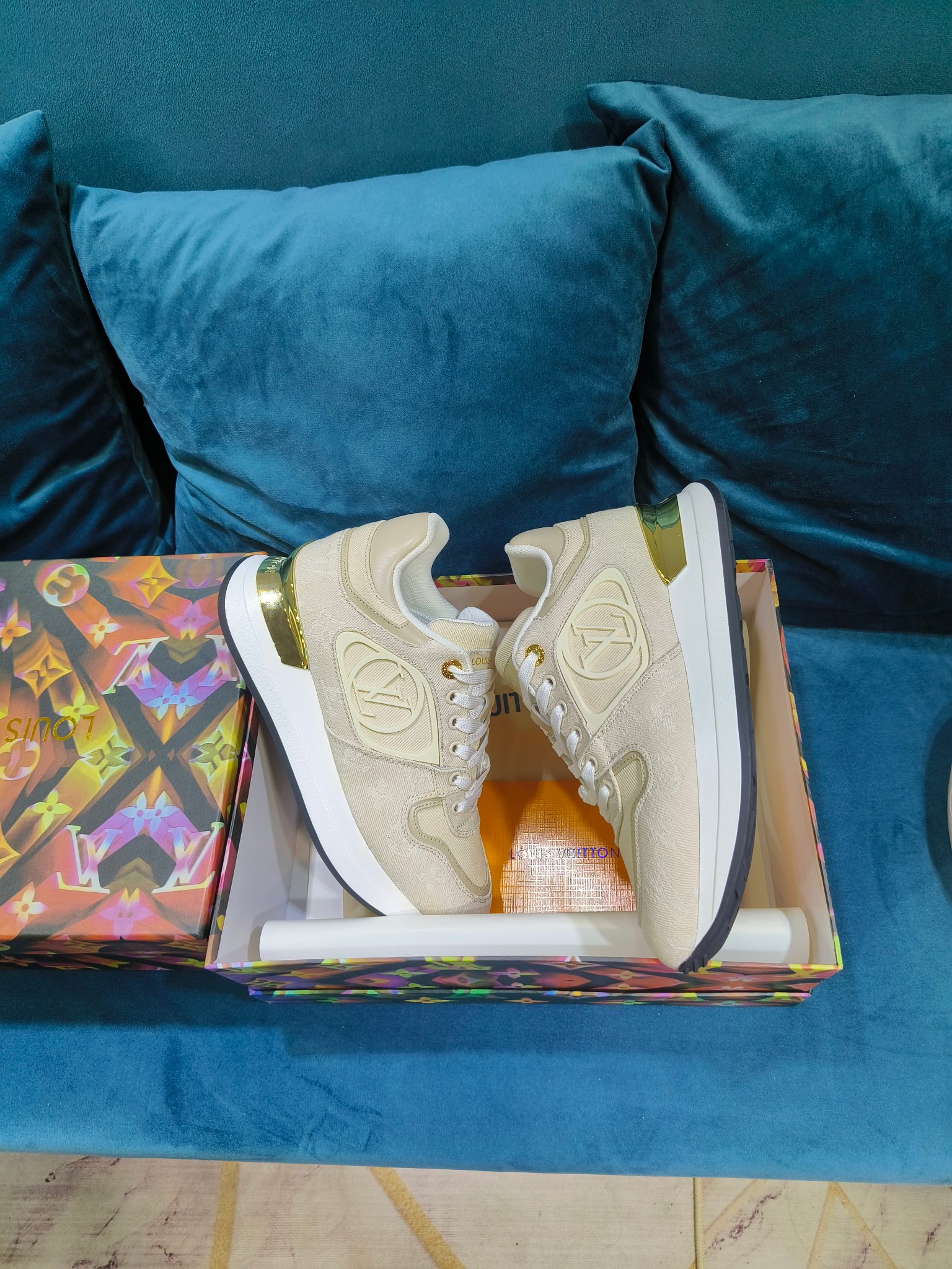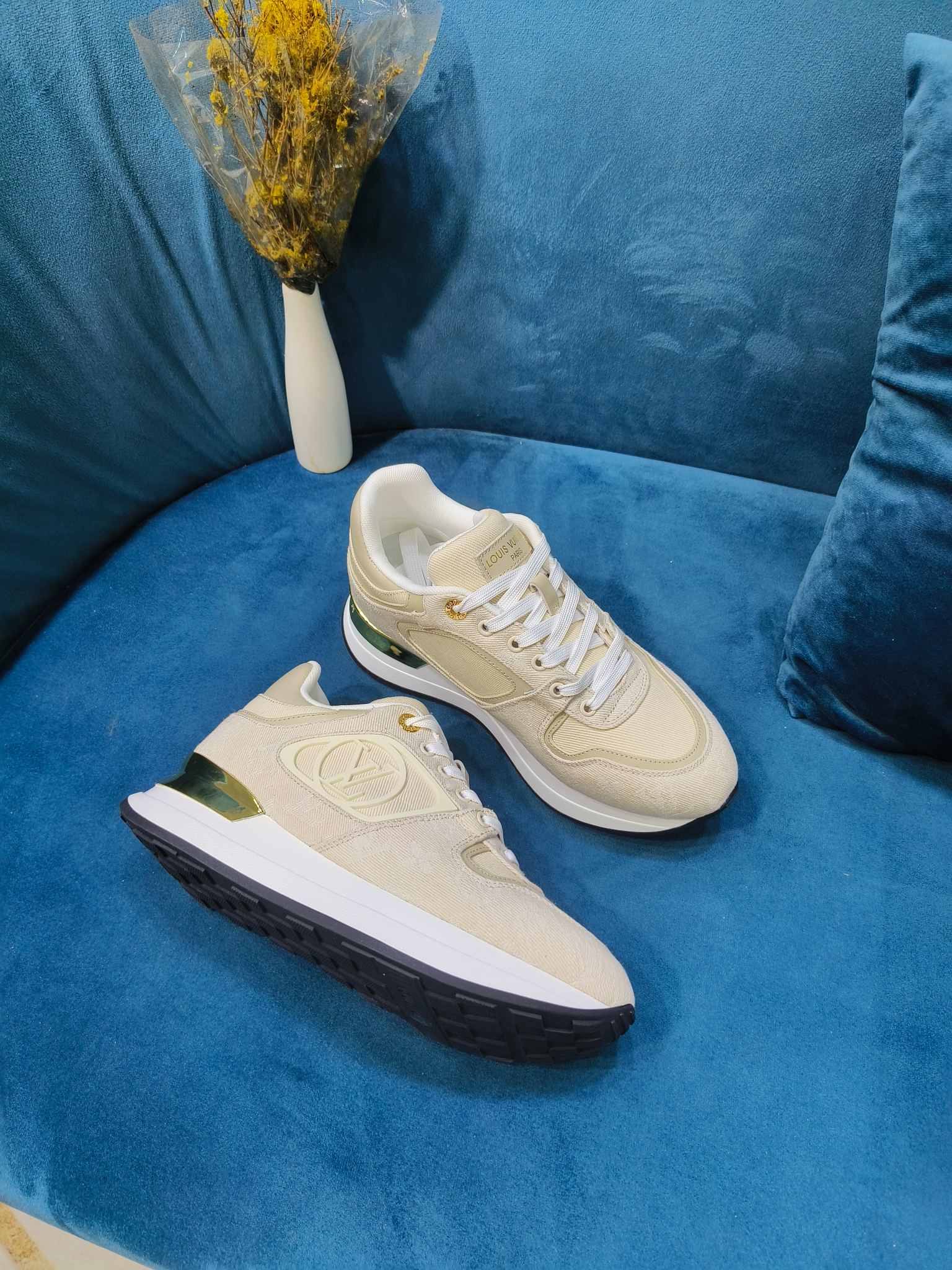 这款鞋子是AAAAA 1:1 质量 (非常棒). 使用了和原版一模一样的材料. 商标部分也保持了和路易威登/Louis Vuitton一样. 图片拍摄是实物鞋子拍摄, 您所收到的实物保证和我们图片一模一样.