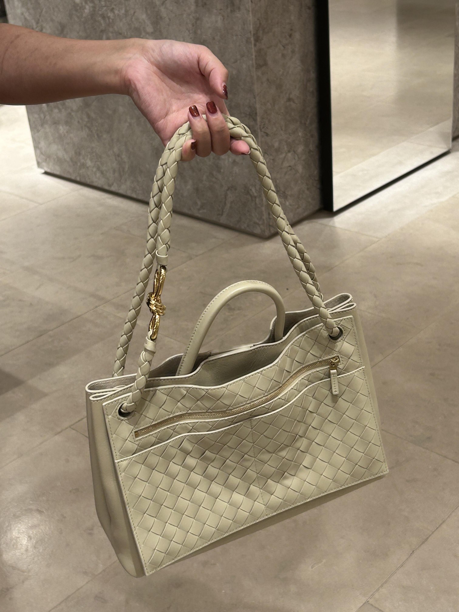 这款包包是AAAAA 1:1 质量 (非常棒). 使用了和原版一模一样的材料. 商标部分也保持了和葆蝶家/Bottega Veneta一样. 图片拍摄是实物包包拍摄, 您所收到的实物保证和我们图片一模一样.