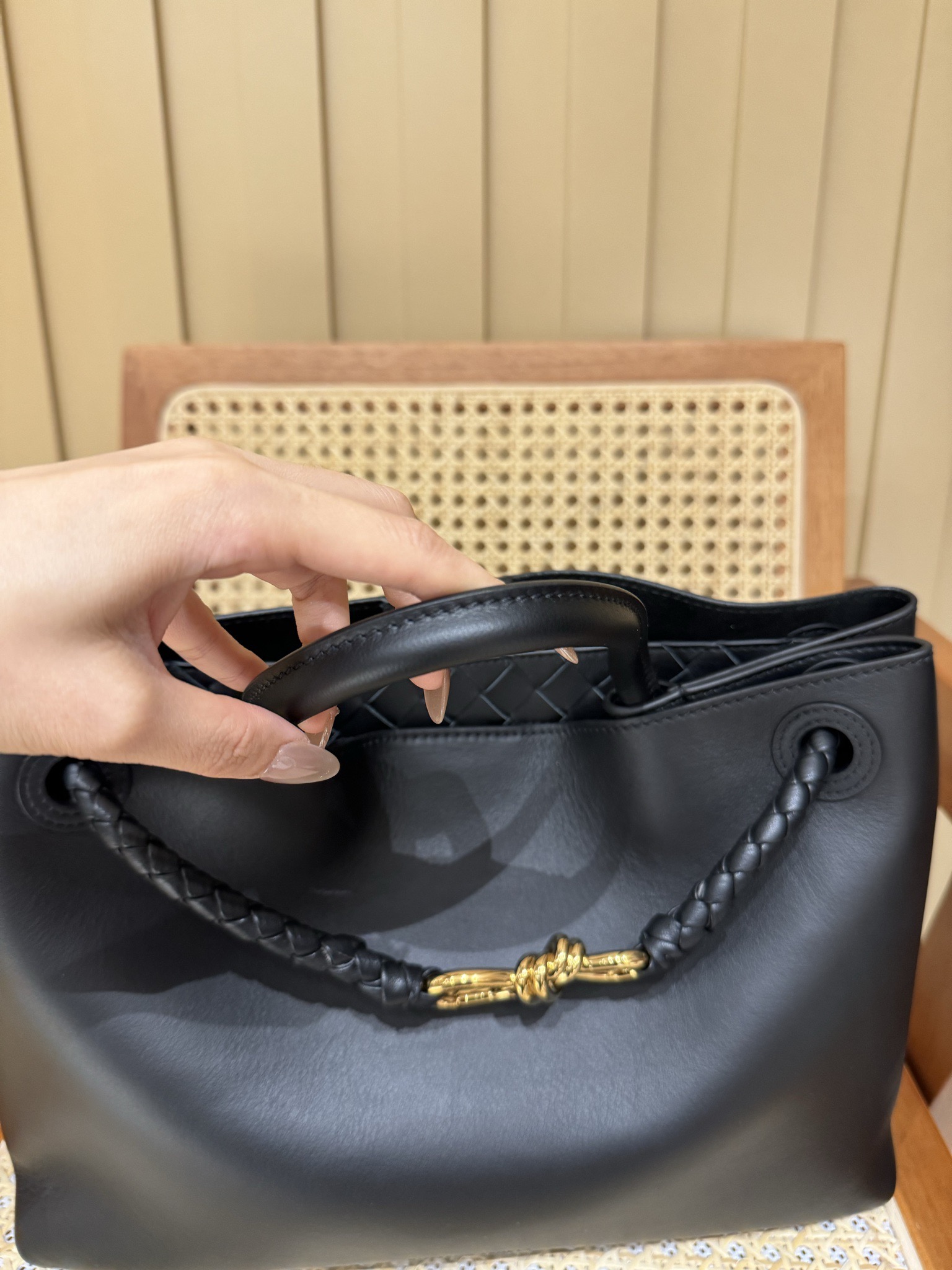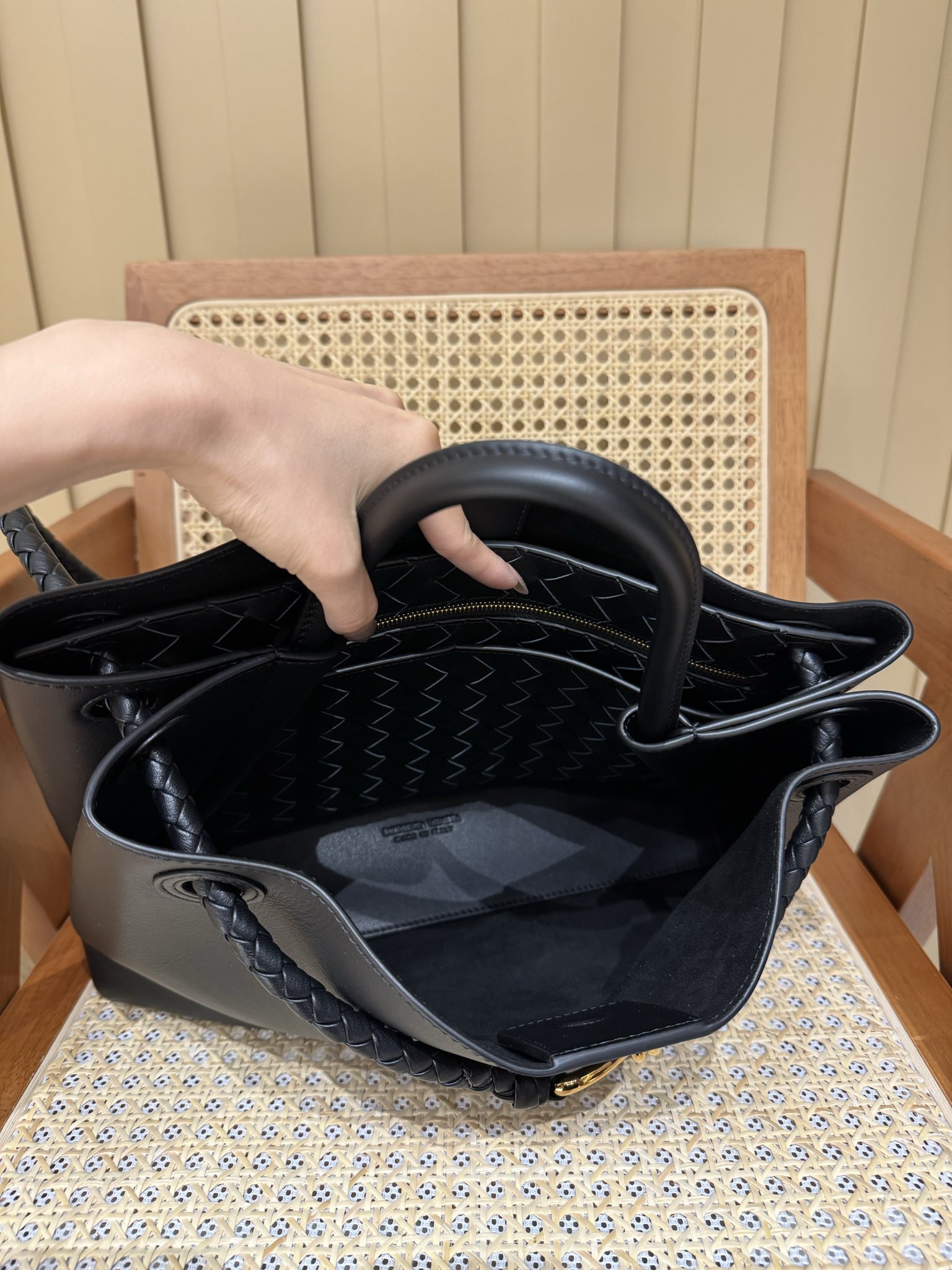 这款包包是AAAAA 1:1 质量 (非常棒). 使用了和原版一模一样的材料. 商标部分也保持了和葆蝶家/Bottega Veneta一样. 图片拍摄是实物包包拍摄, 您所收到的实物保证和我们图片一模一样.