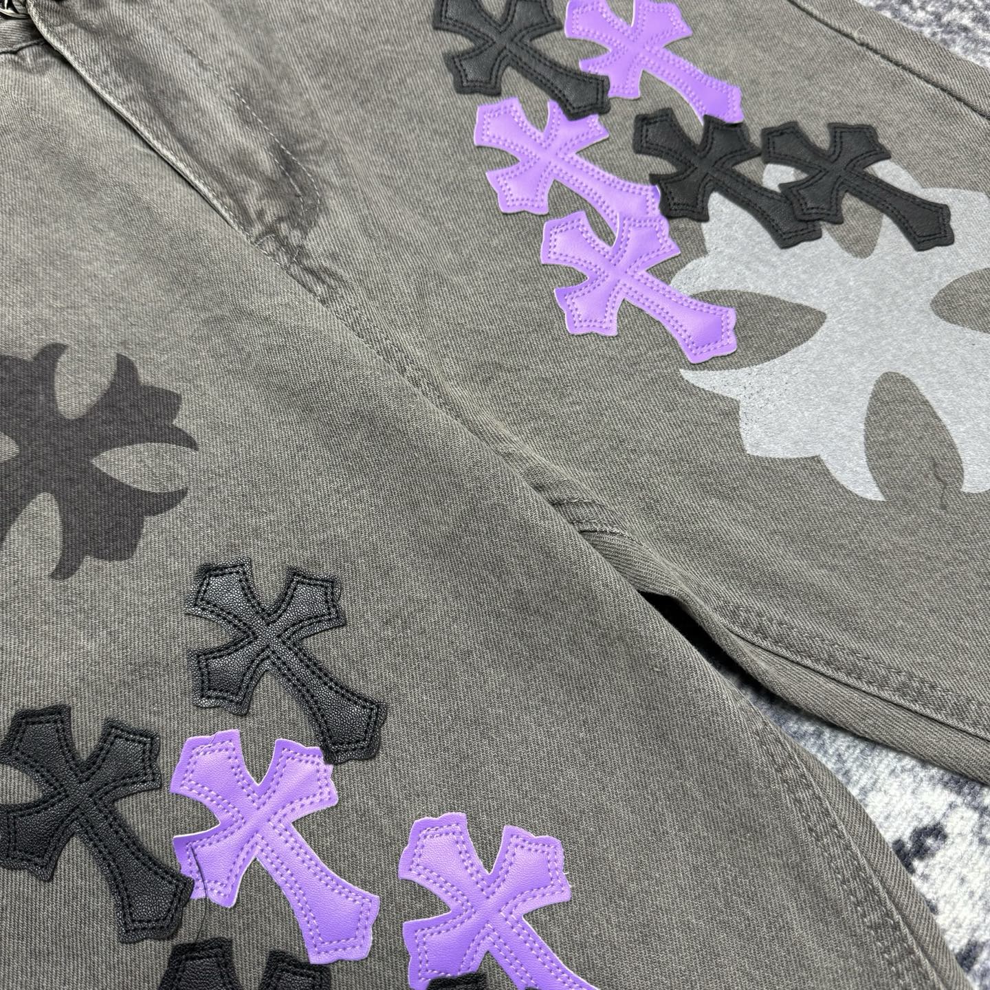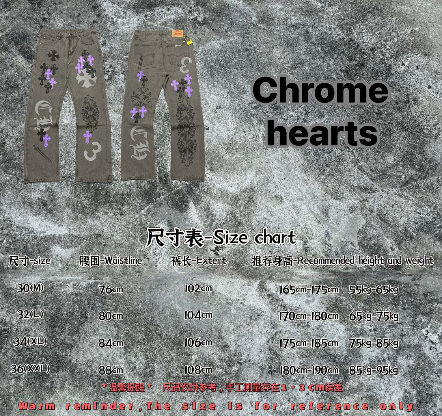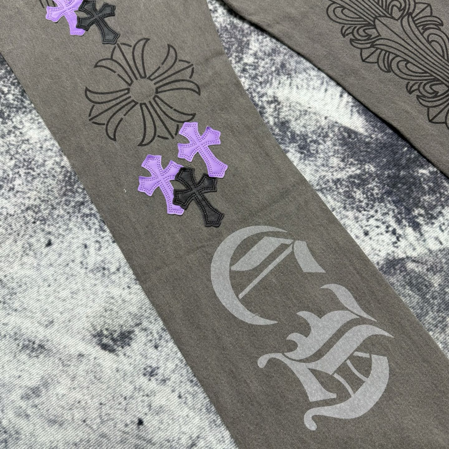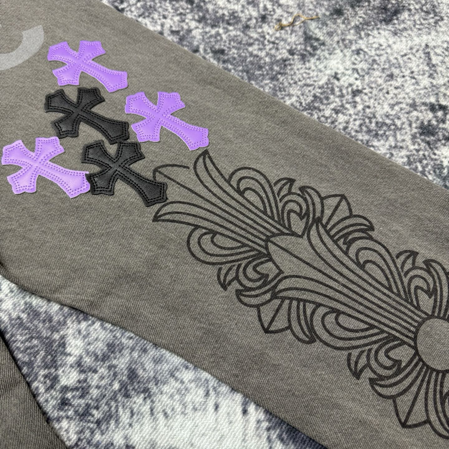 这款衣服是AAAAA 1:1 质量 (非常棒). 使用了和原版一模一样的材料. 商标部分也保持了和克罗心/Chrome Hearts一样. 图片拍摄是实物衣服拍摄, 您所收到的实物保证和我们图片一模一样.