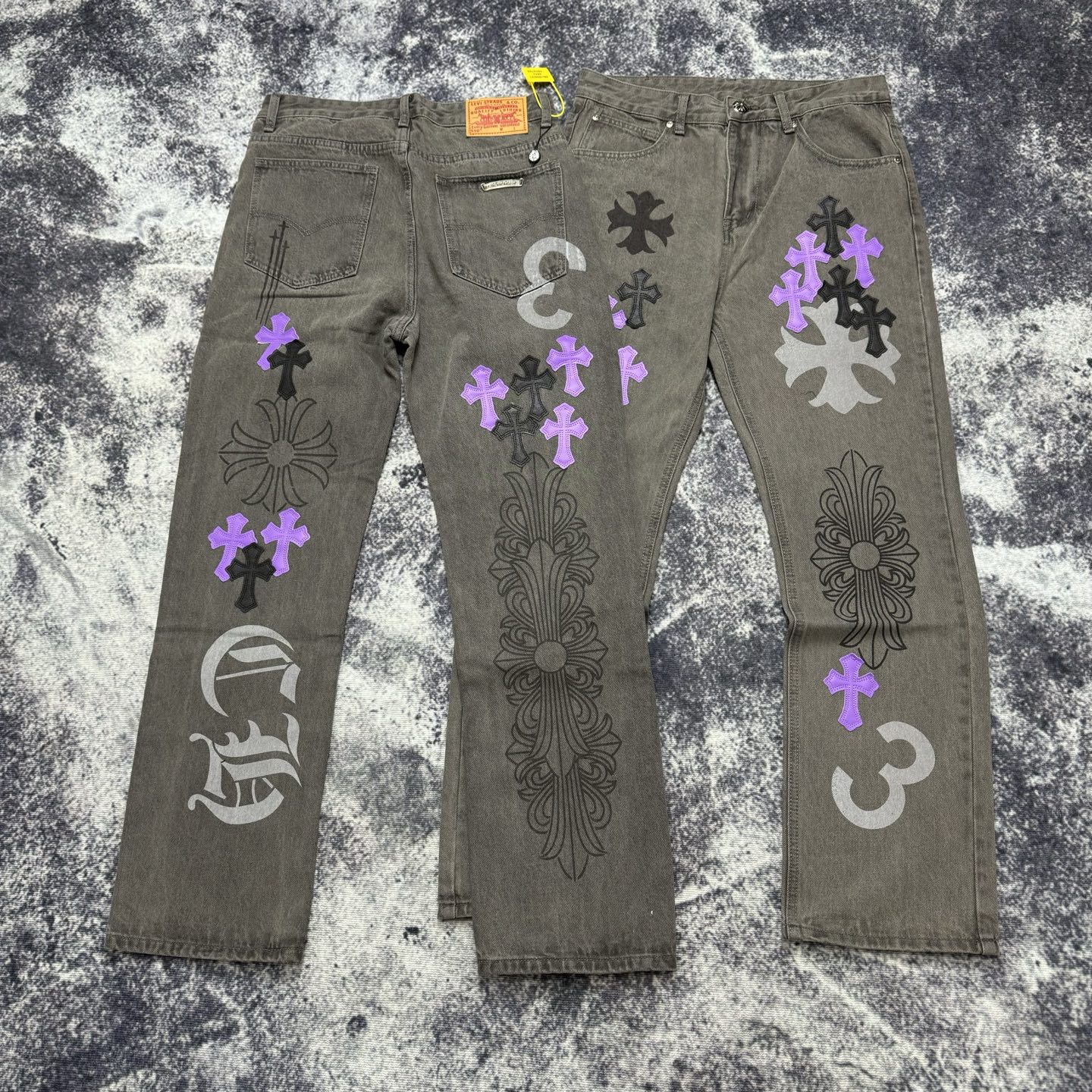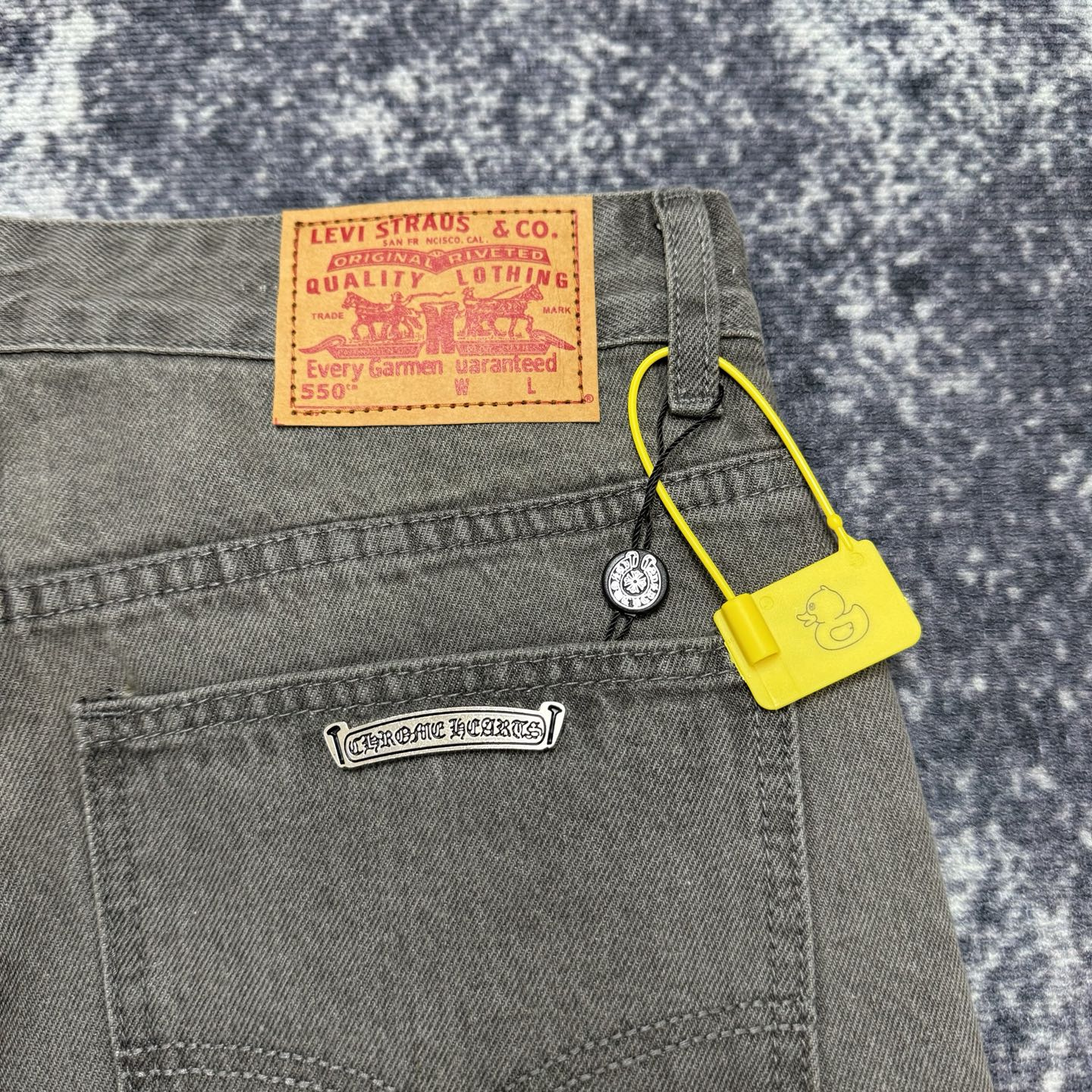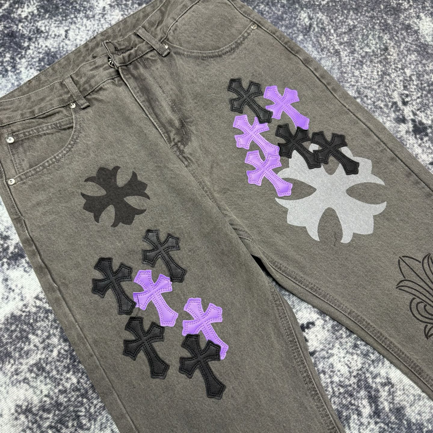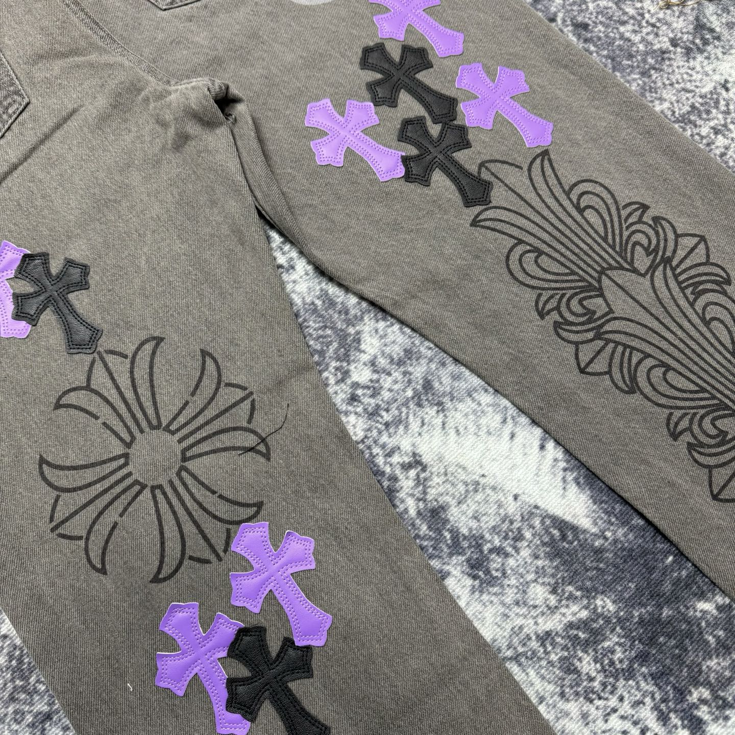 这款衣服是AAAAA 1:1 质量 (非常棒). 使用了和原版一模一样的材料. 商标部分也保持了和克罗心/Chrome Hearts一样. 图片拍摄是实物衣服拍摄, 您所收到的实物保证和我们图片一模一样.