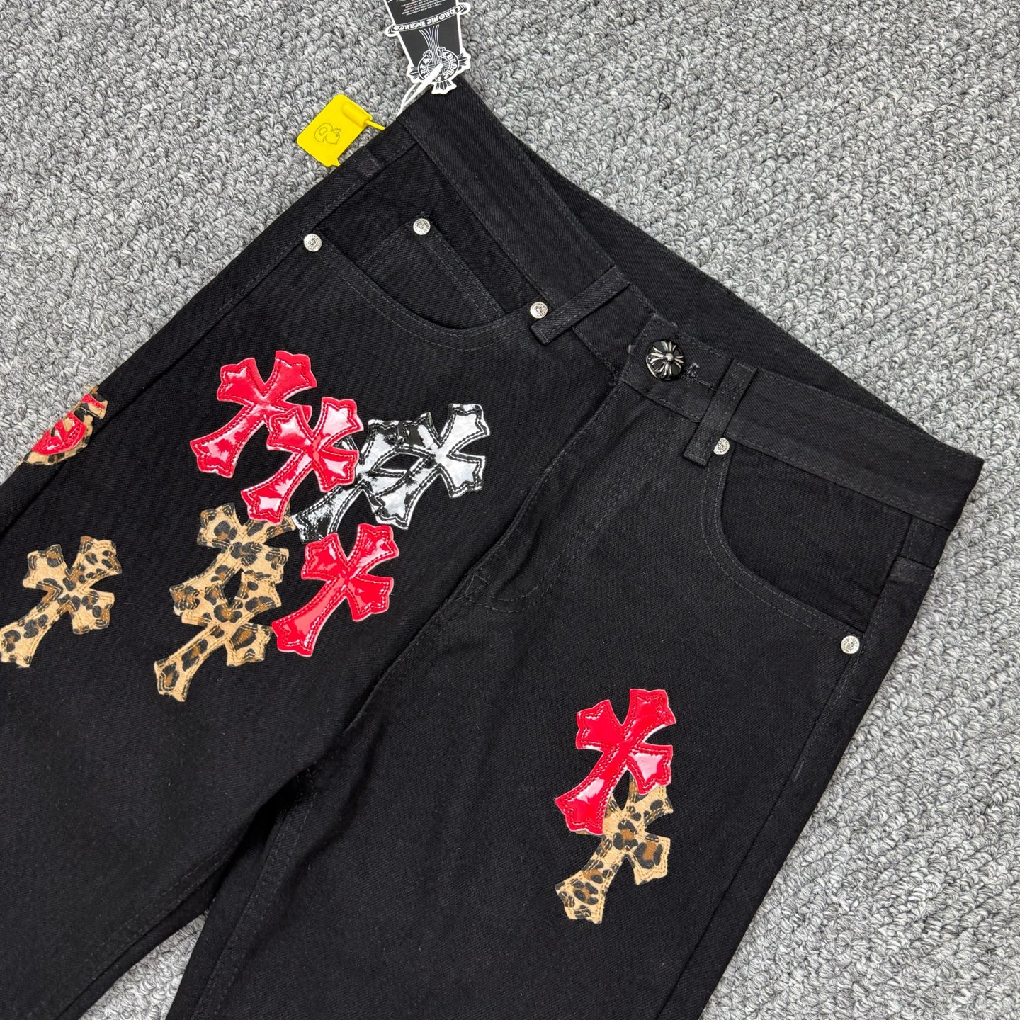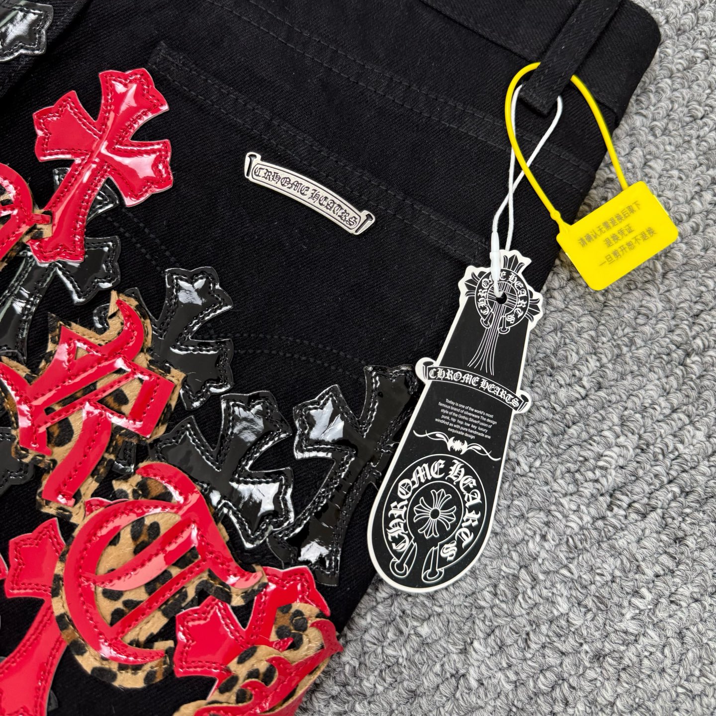 这款衣服是AAAAA 1:1 质量 (非常棒). 使用了和原版一模一样的材料. 商标部分也保持了和克罗心/Chrome Hearts一样. 图片拍摄是实物衣服拍摄, 您所收到的实物保证和我们图片一模一样.