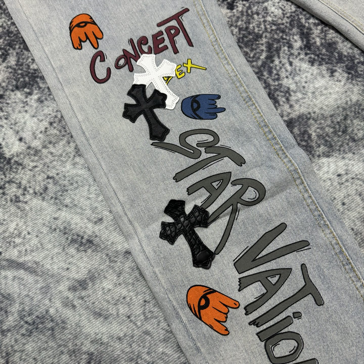 这款衣服是AAAAA 1:1 质量 (非常棒). 使用了和原版一模一样的材料. 商标部分也保持了和克罗心/Chrome Hearts一样. 图片拍摄是实物衣服拍摄, 您所收到的实物保证和我们图片一模一样.