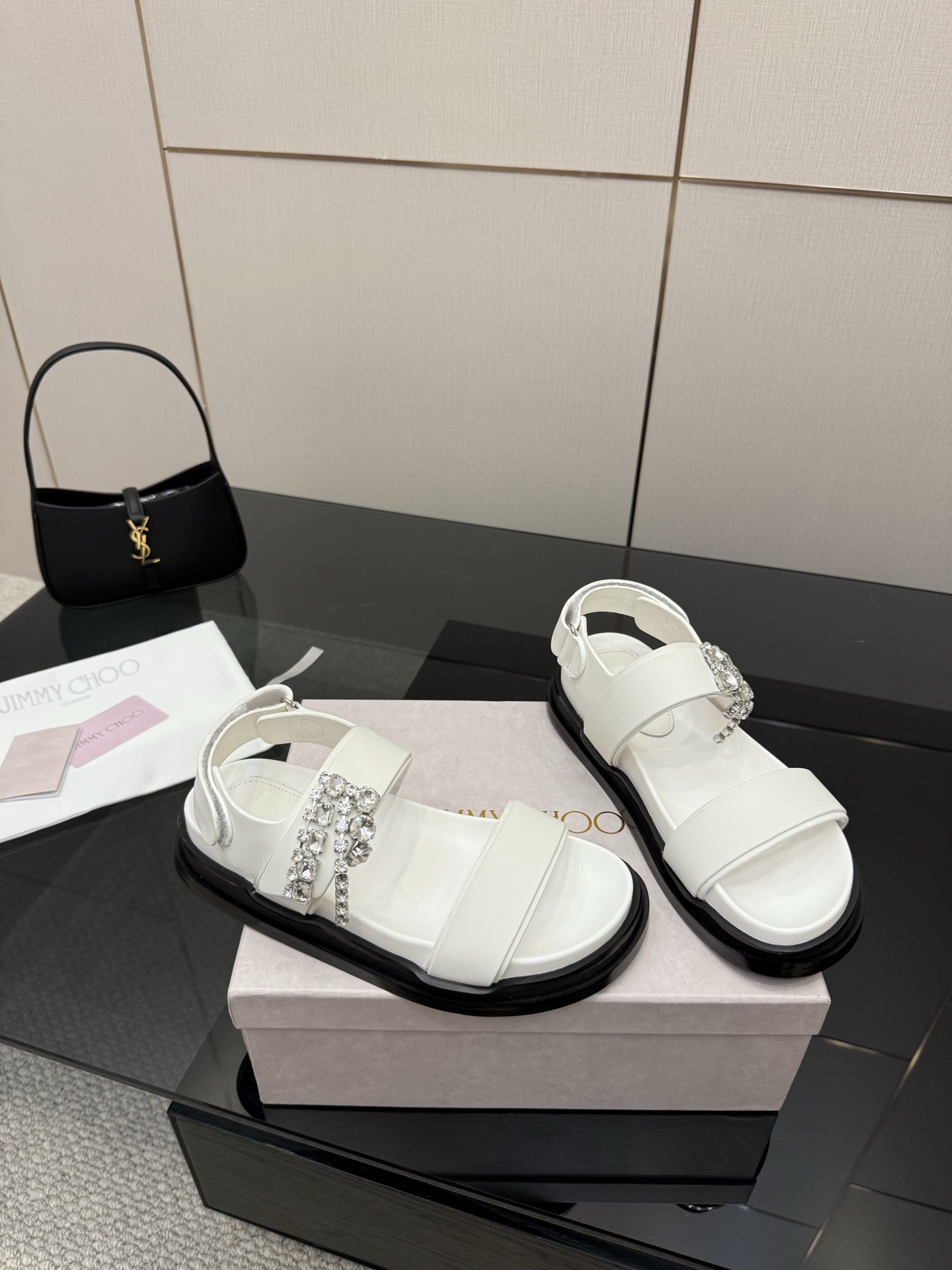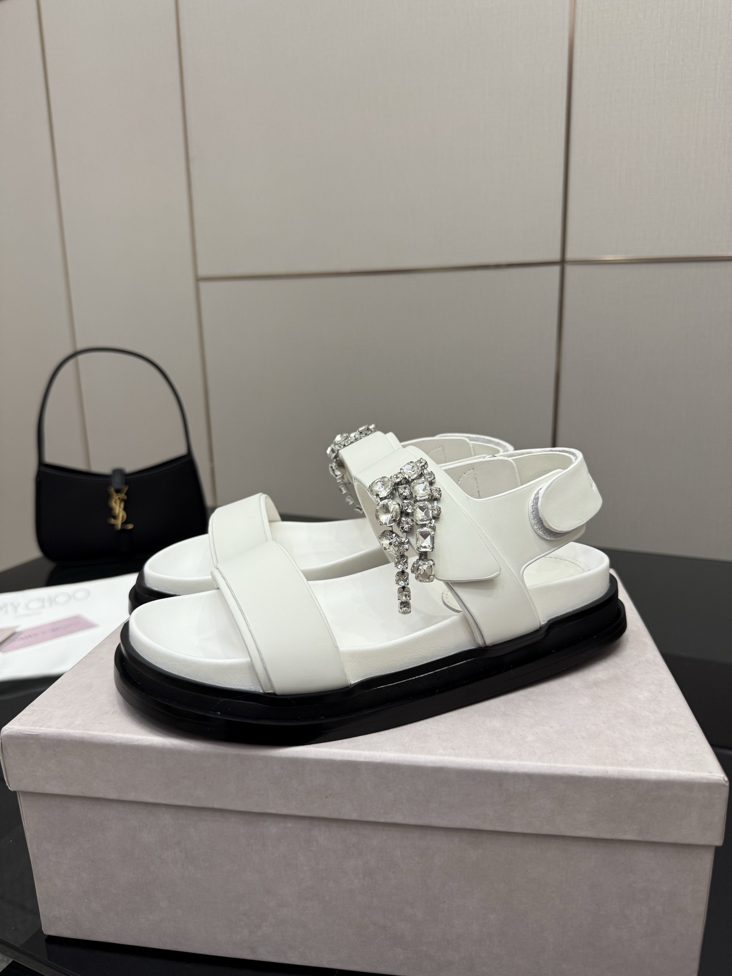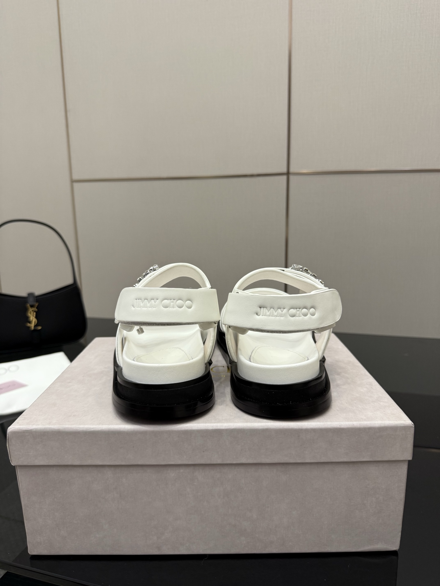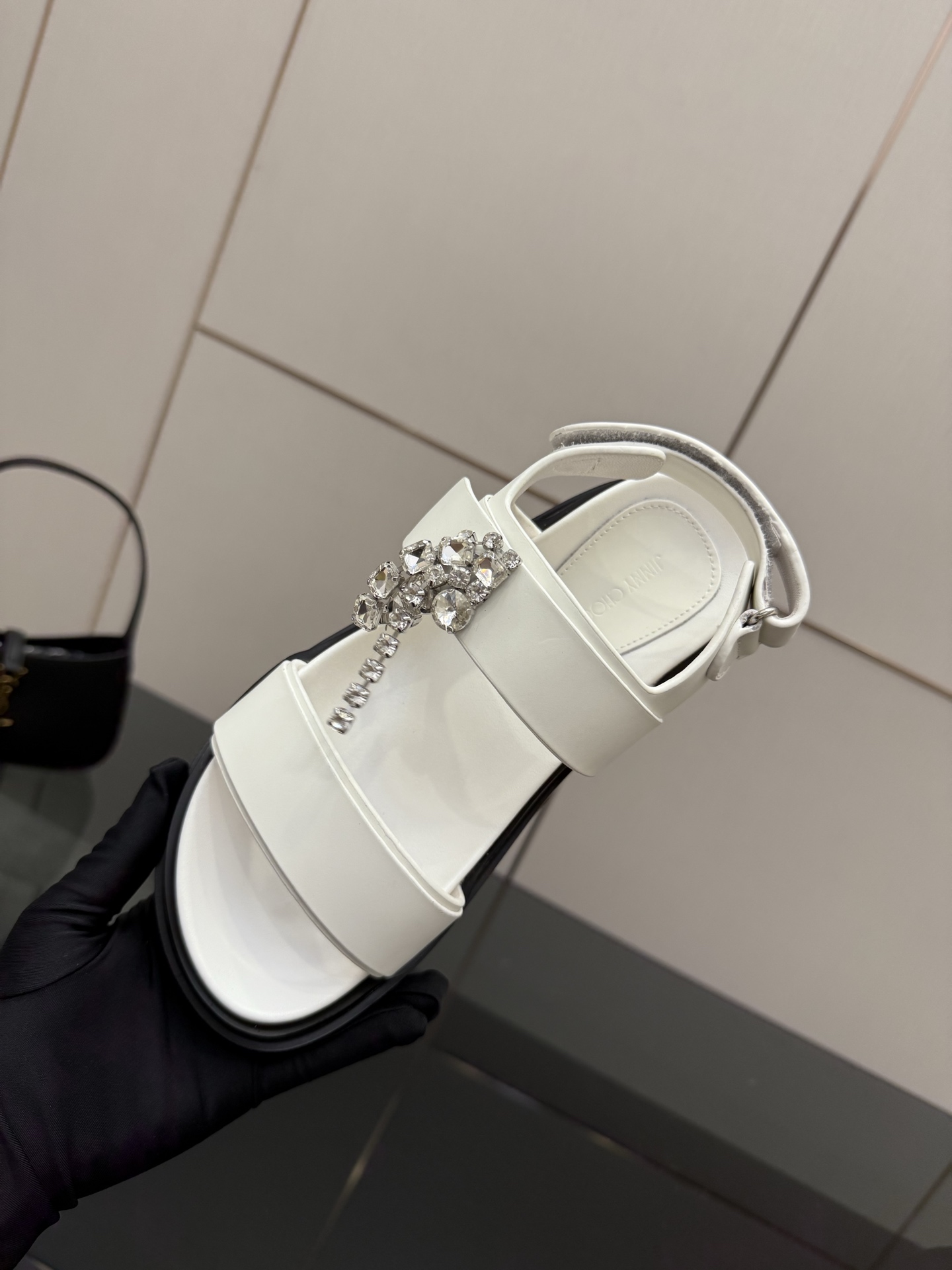 这款鞋子是AAAAA 1:1 质量 (非常棒). 使用了和原版一模一样的材料. 商标部分也保持了和吉米乔/JIMMY CHOO一样. 图片拍摄是实物鞋子拍摄, 您所收到的实物保证和我们图片一模一样.