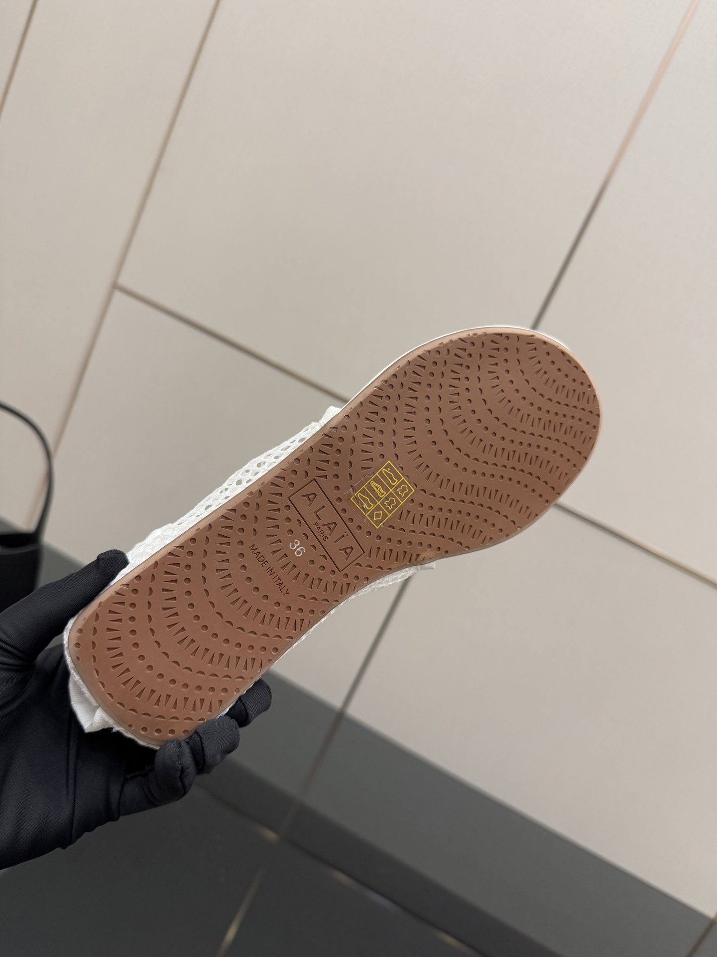 这款鞋子是AAAAA 1:1 质量 (非常棒). 使用了和原版一模一样的材料. 商标部分也保持了和Alaia一样. 图片拍摄是实物鞋子拍摄, 您所收到的实物保证和我们图片一模一样.