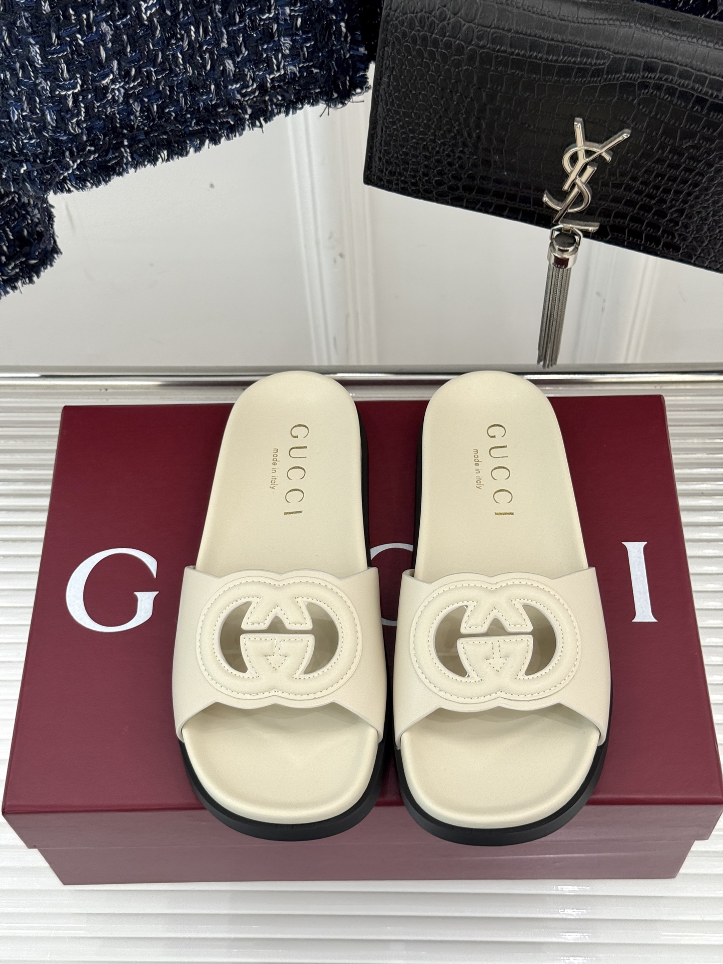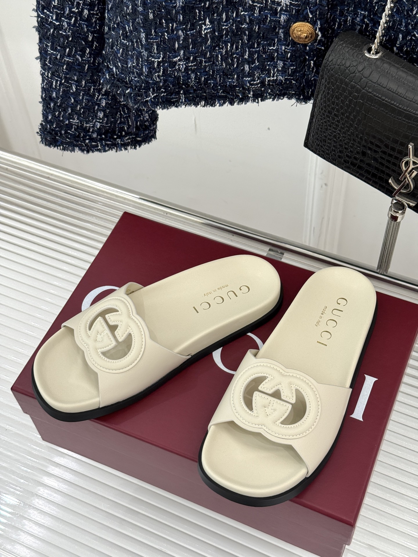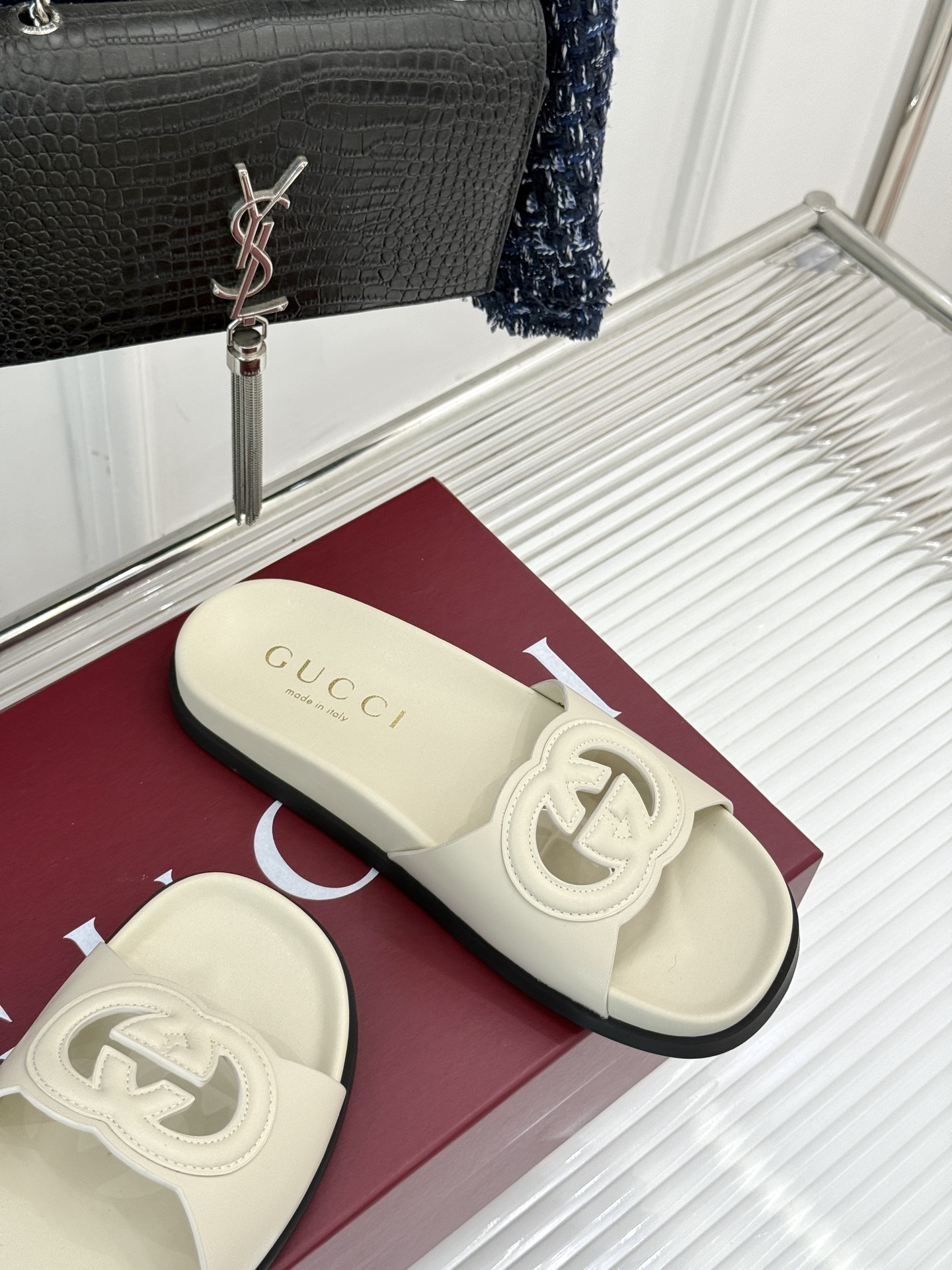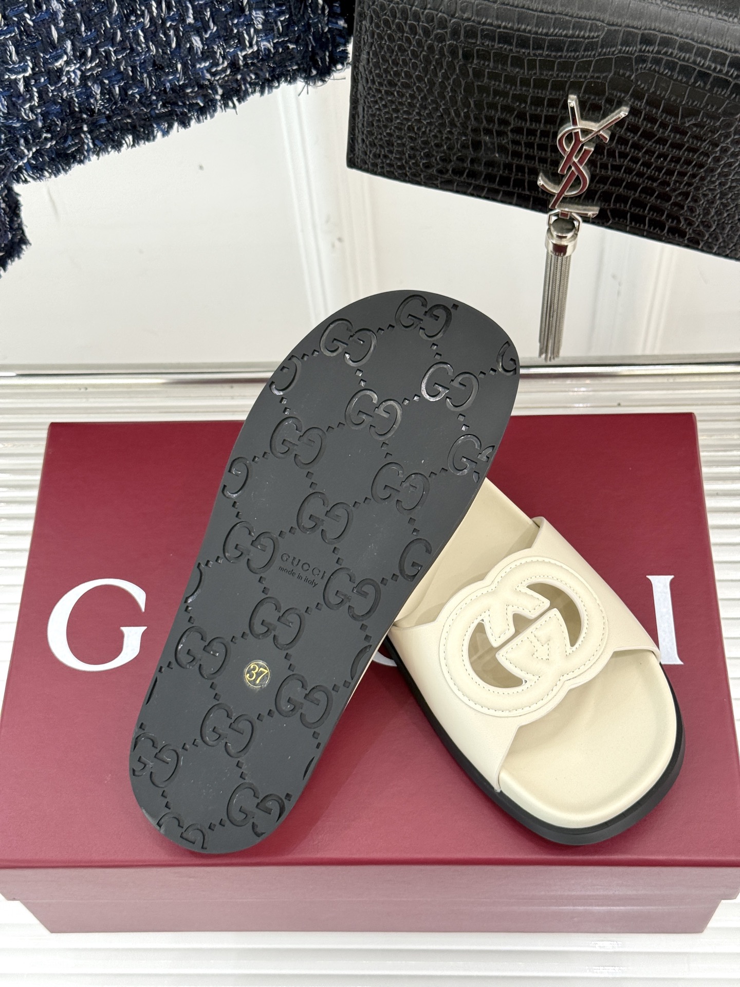 这款鞋子是AAAAA 1:1 质量 (非常棒). 使用了和原版一模一样的材料. 商标部分也保持了和古奇/Gucci一样. 图片拍摄是实物鞋子拍摄, 您所收到的实物保证和我们图片一模一样.