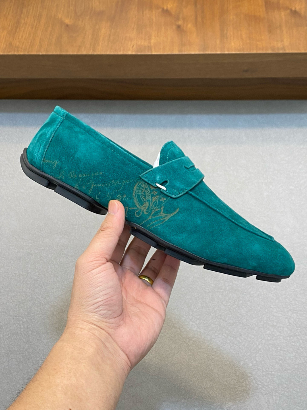 这款鞋子是AAAAA 1:1 质量 (非常棒). 使用了和原版一模一样的材料. 商标部分也保持了和Berluti一样. 图片拍摄是实物鞋子拍摄, 您所收到的实物保证和我们图片一模一样.