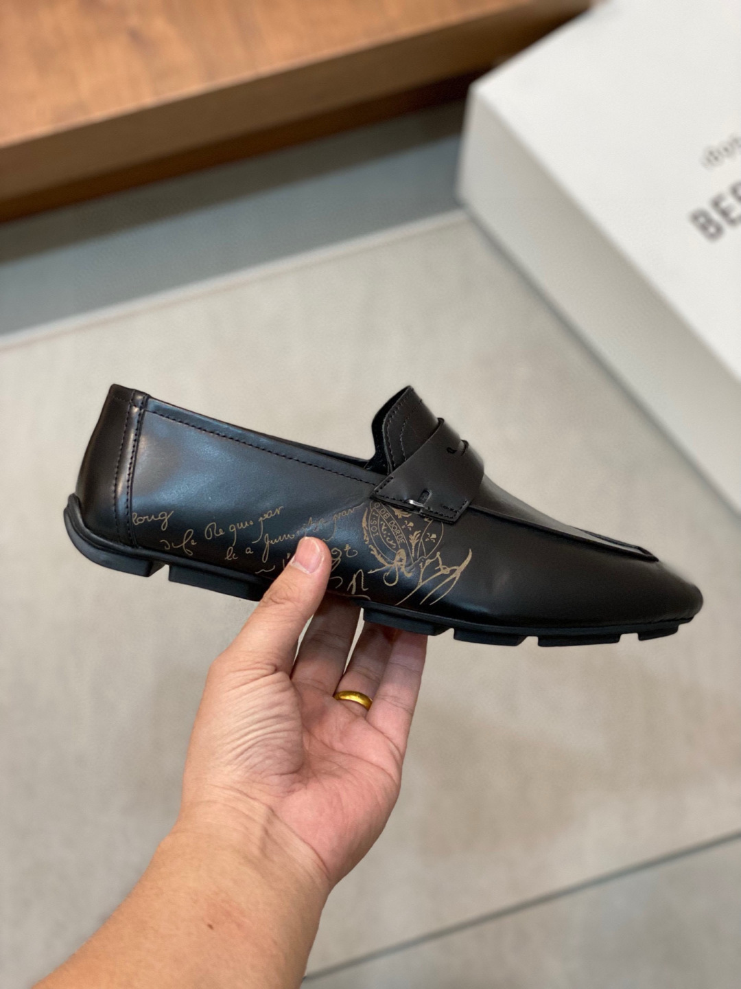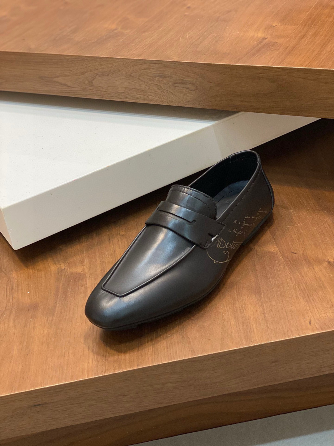 这款鞋子是AAAAA 1:1 质量 (非常棒). 使用了和原版一模一样的材料. 商标部分也保持了和Berluti一样. 图片拍摄是实物鞋子拍摄, 您所收到的实物保证和我们图片一模一样.