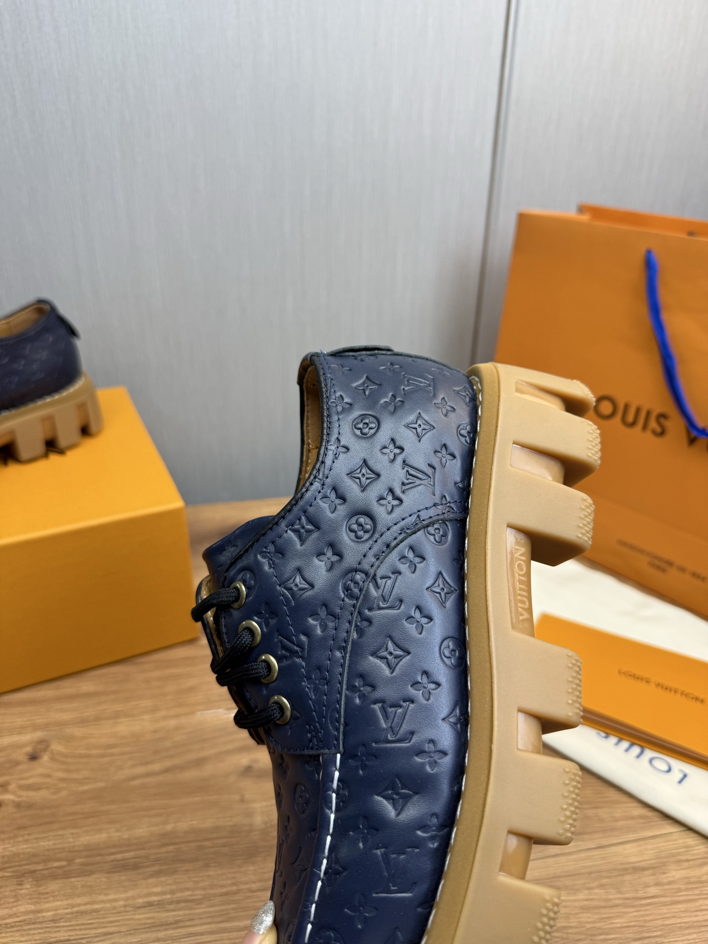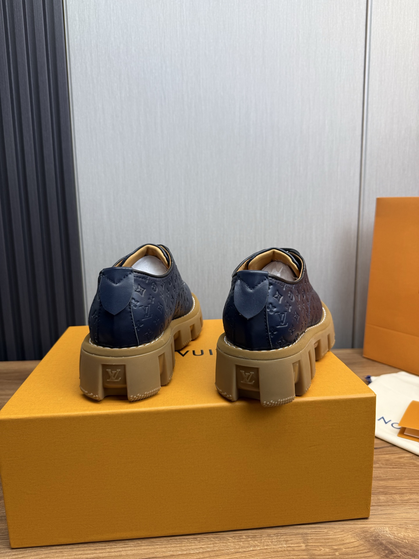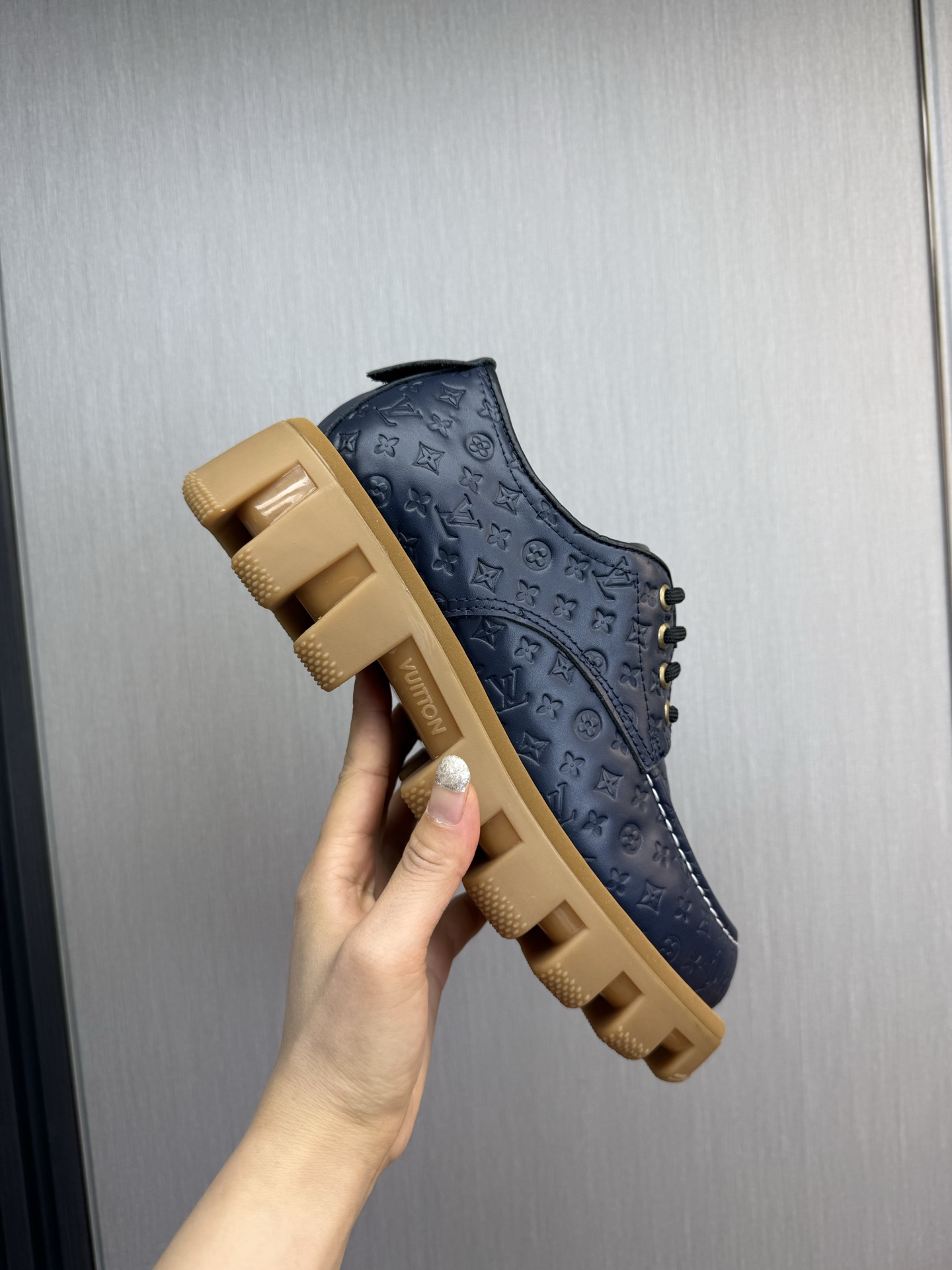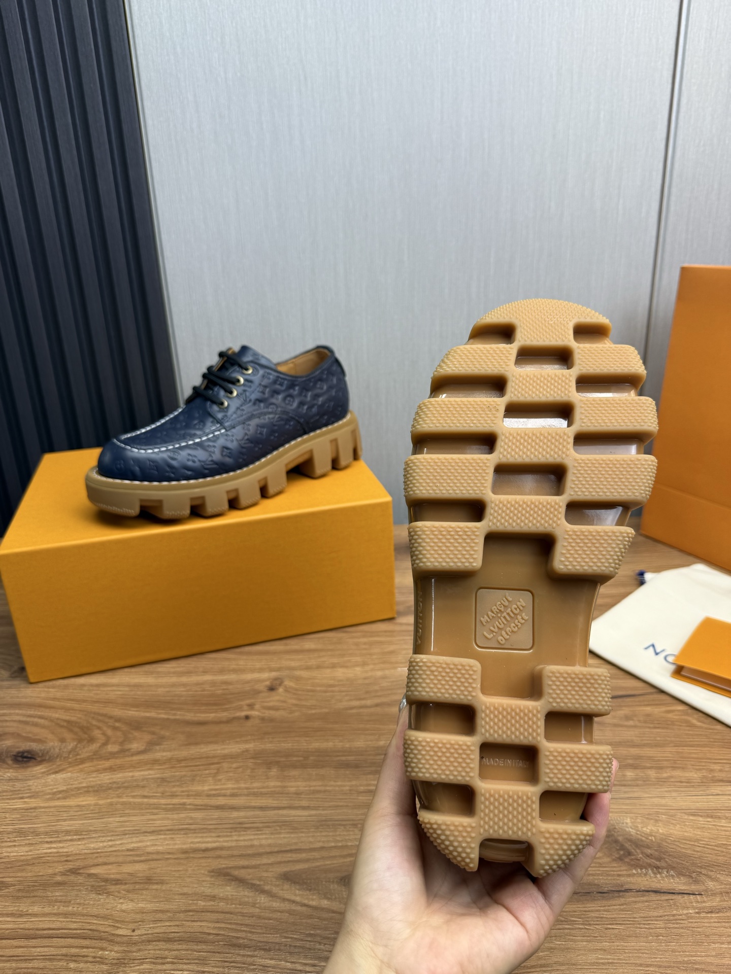 这款鞋子是AAAAA 1:1 质量 (非常棒). 使用了和原版一模一样的材料. 商标部分也保持了和路易威登/Louis Vuitton一样. 图片拍摄是实物鞋子拍摄, 您所收到的实物保证和我们图片一模一样.