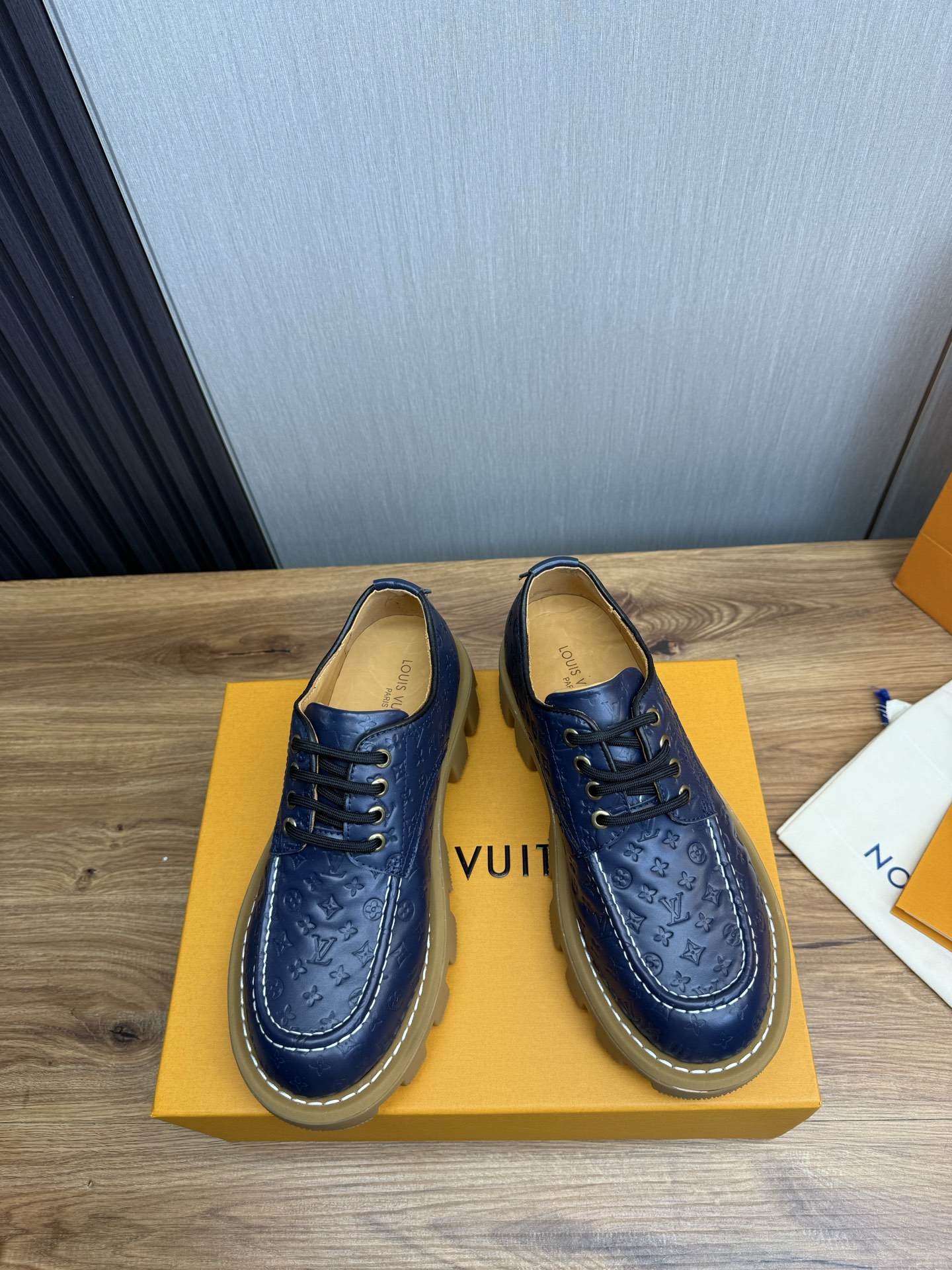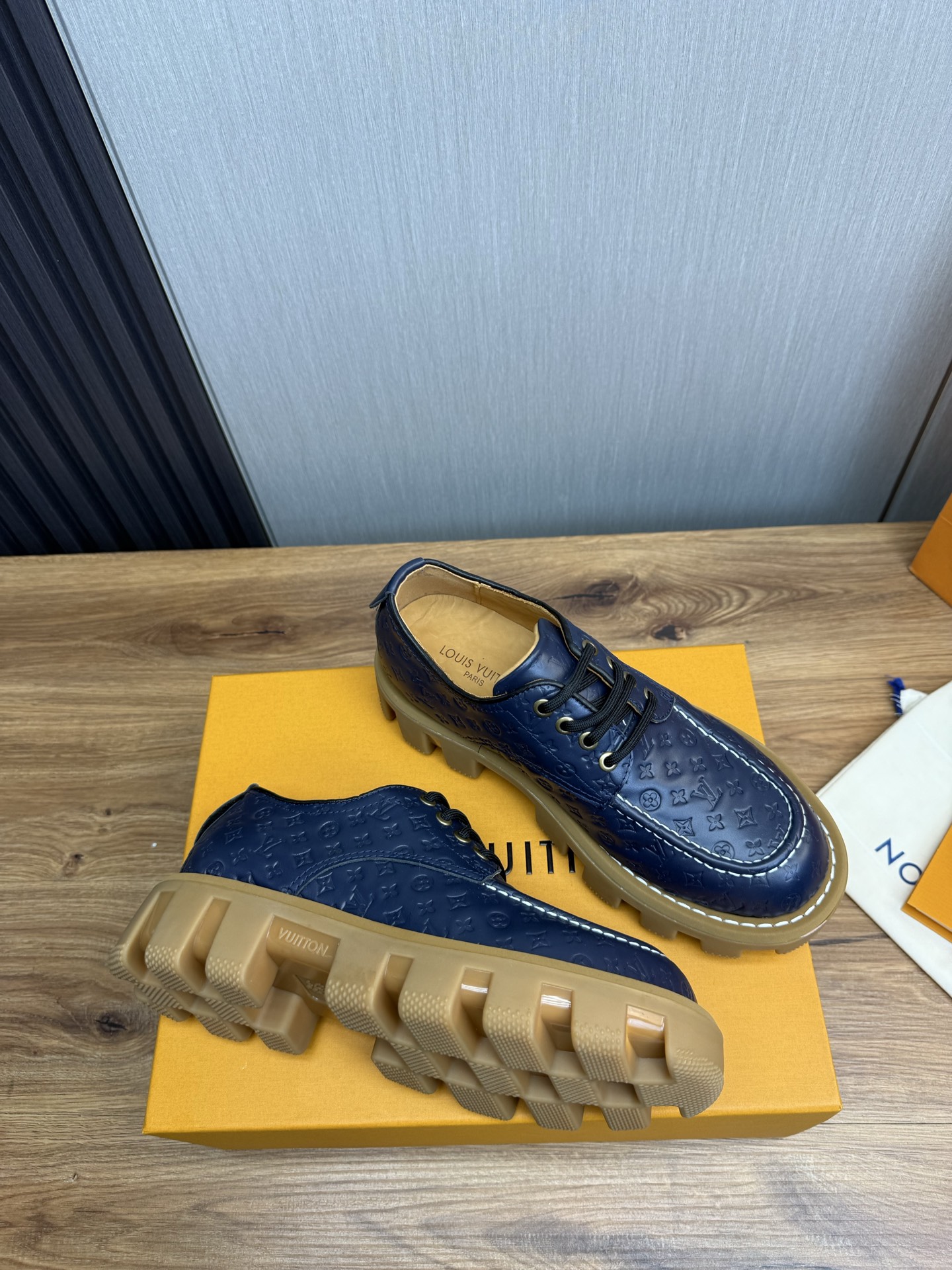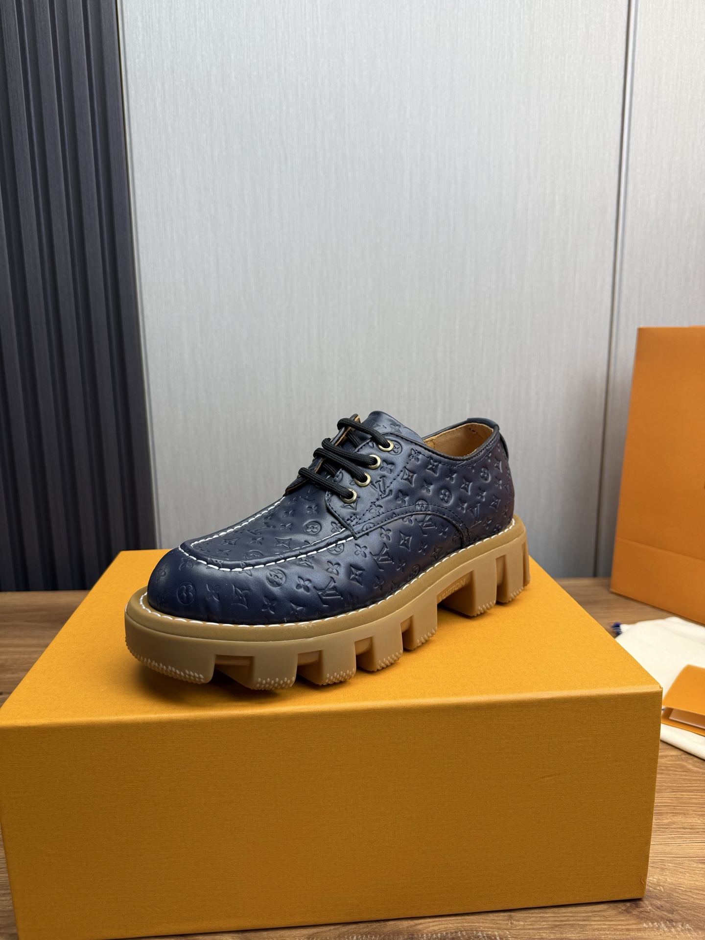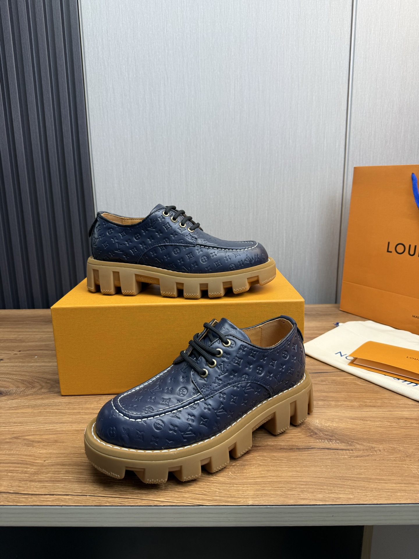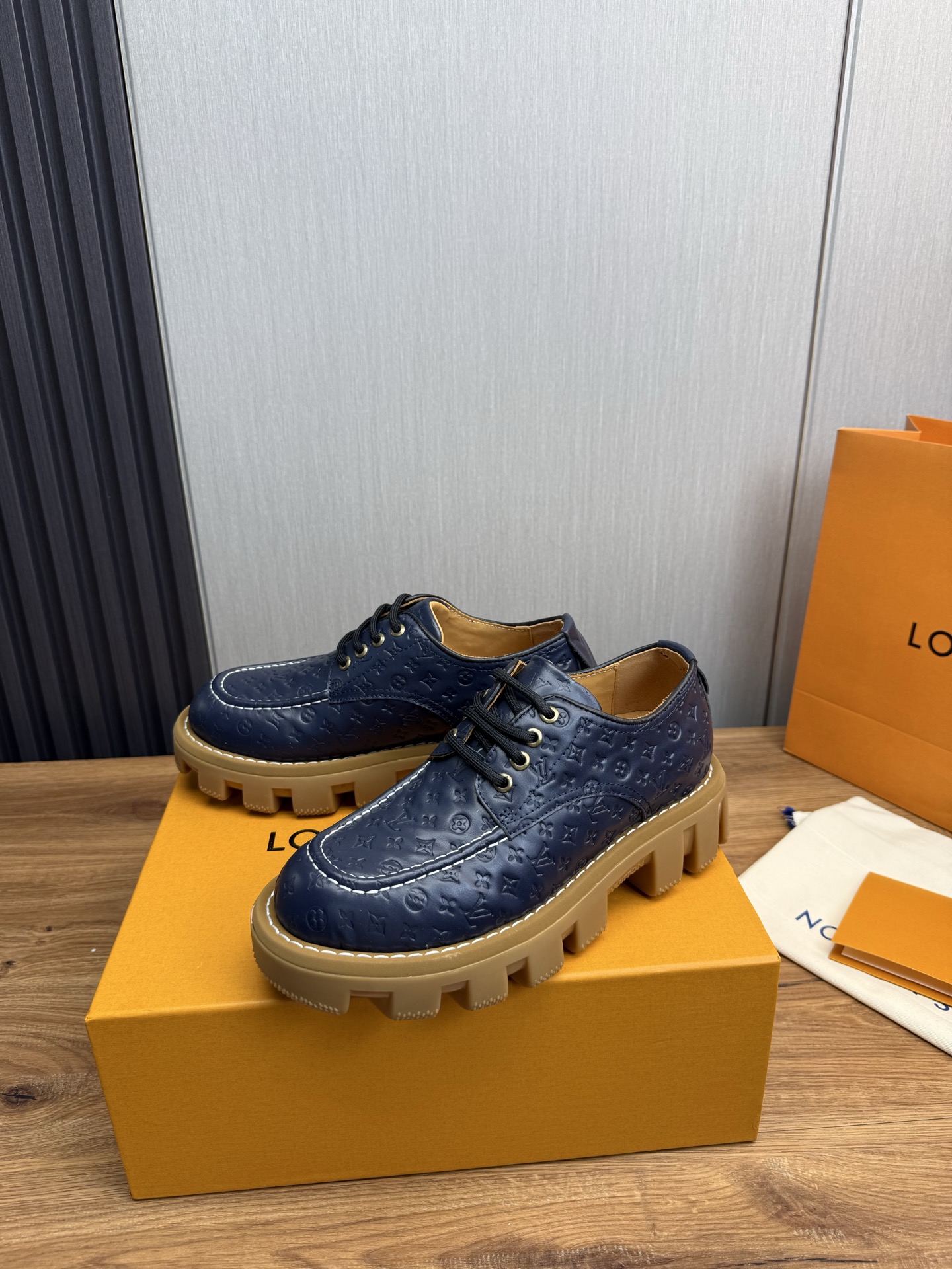 这款鞋子是AAAAA 1:1 质量 (非常棒). 使用了和原版一模一样的材料. 商标部分也保持了和路易威登/Louis Vuitton一样. 图片拍摄是实物鞋子拍摄, 您所收到的实物保证和我们图片一模一样.